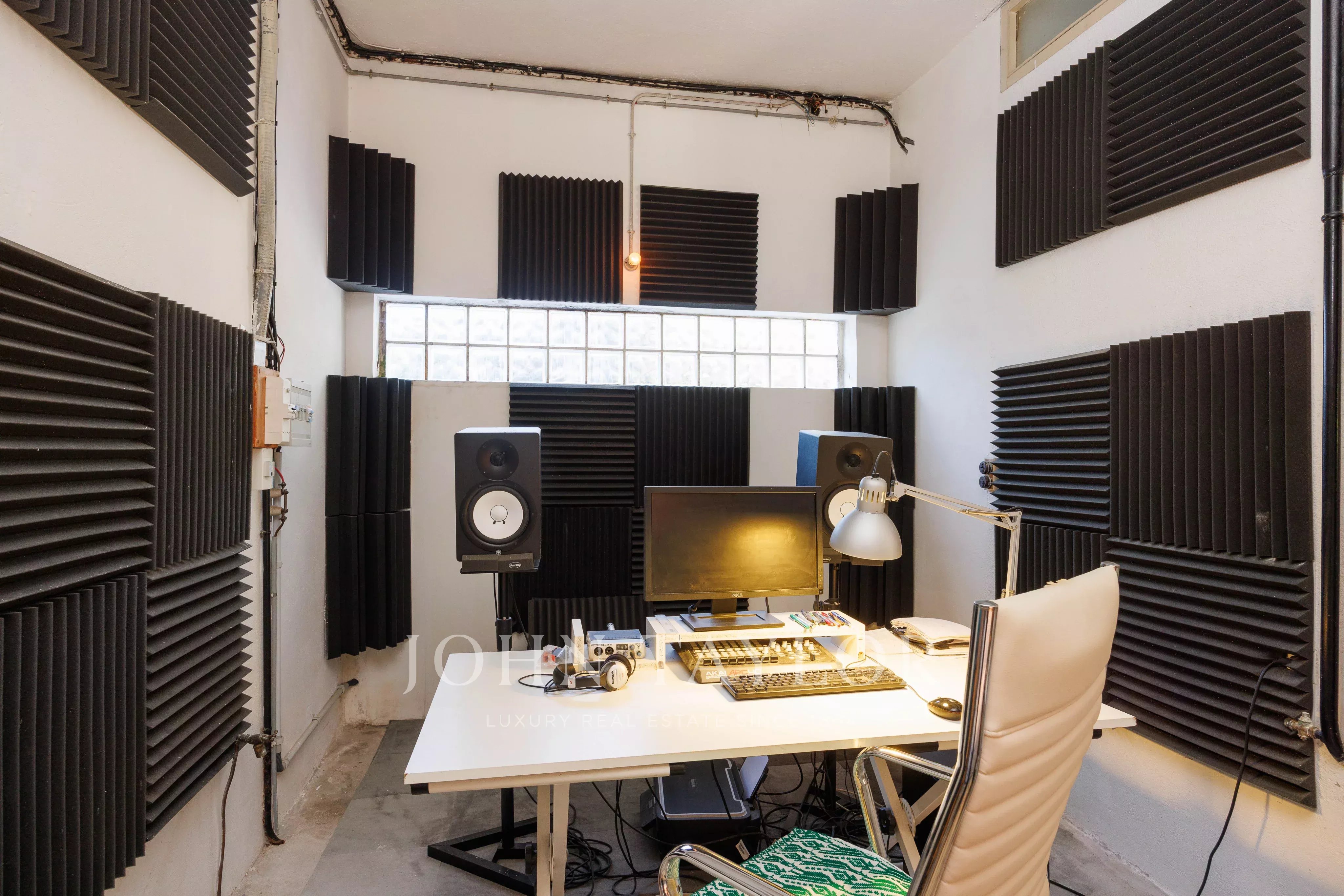 V horní úrovni zahrady se nachází obytné prostory: světlý obývací pokoj s krbem, který se otevírá na terasu a do zahrady, kuchyň, kterou lze snadno otevřít do obývacího pokoje, a také hlavní ložnice, šatna a sprchový kout. V přízemí se nachází ložnice a rozsáhlý modulární prostor, z něhož lze vytvořit další dvě ložnice, nyní s kuchyňským koutem, vše se otevírá na krytou terasu, doplňuje je hudební místnost, sklep, prádelna a kotelna.