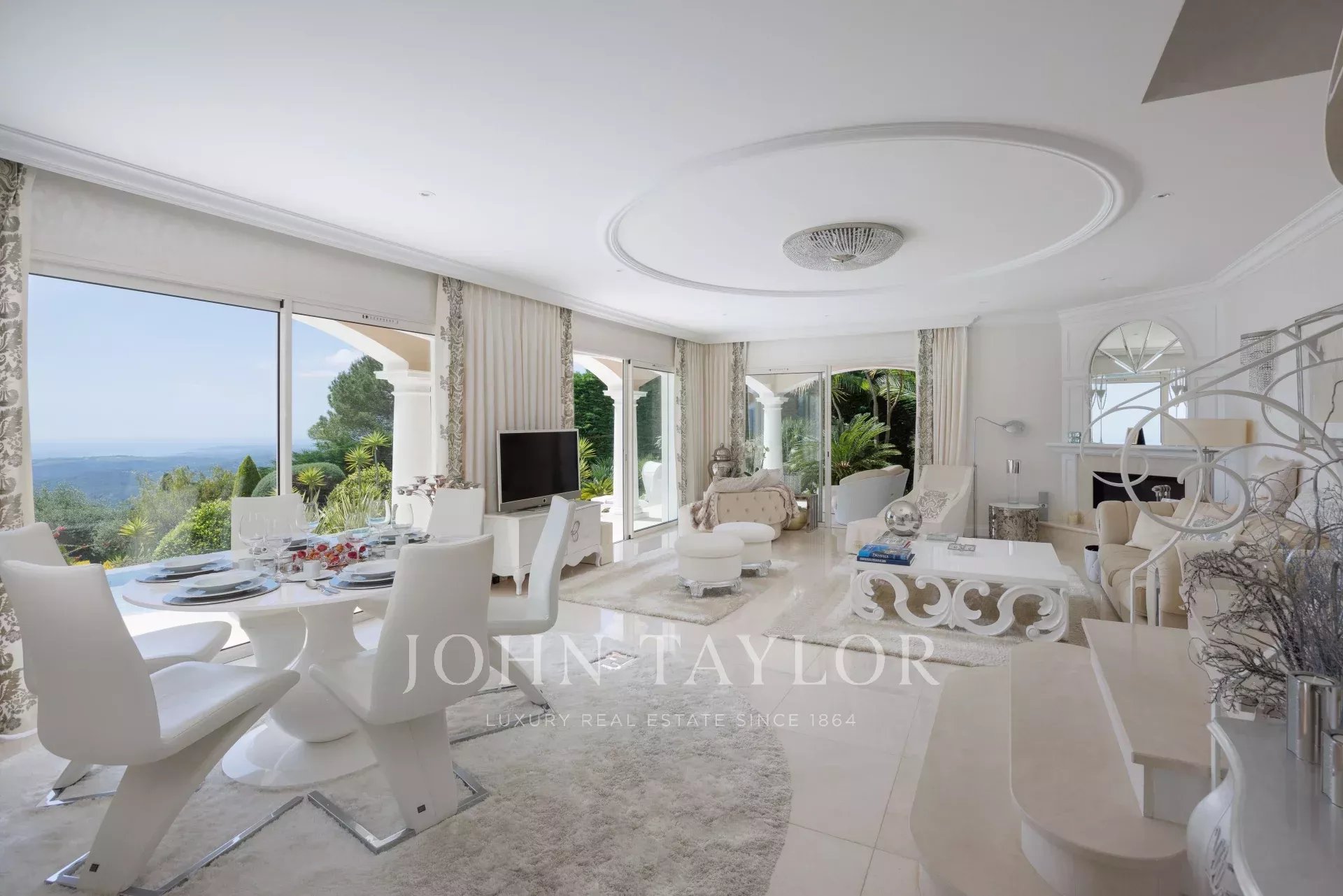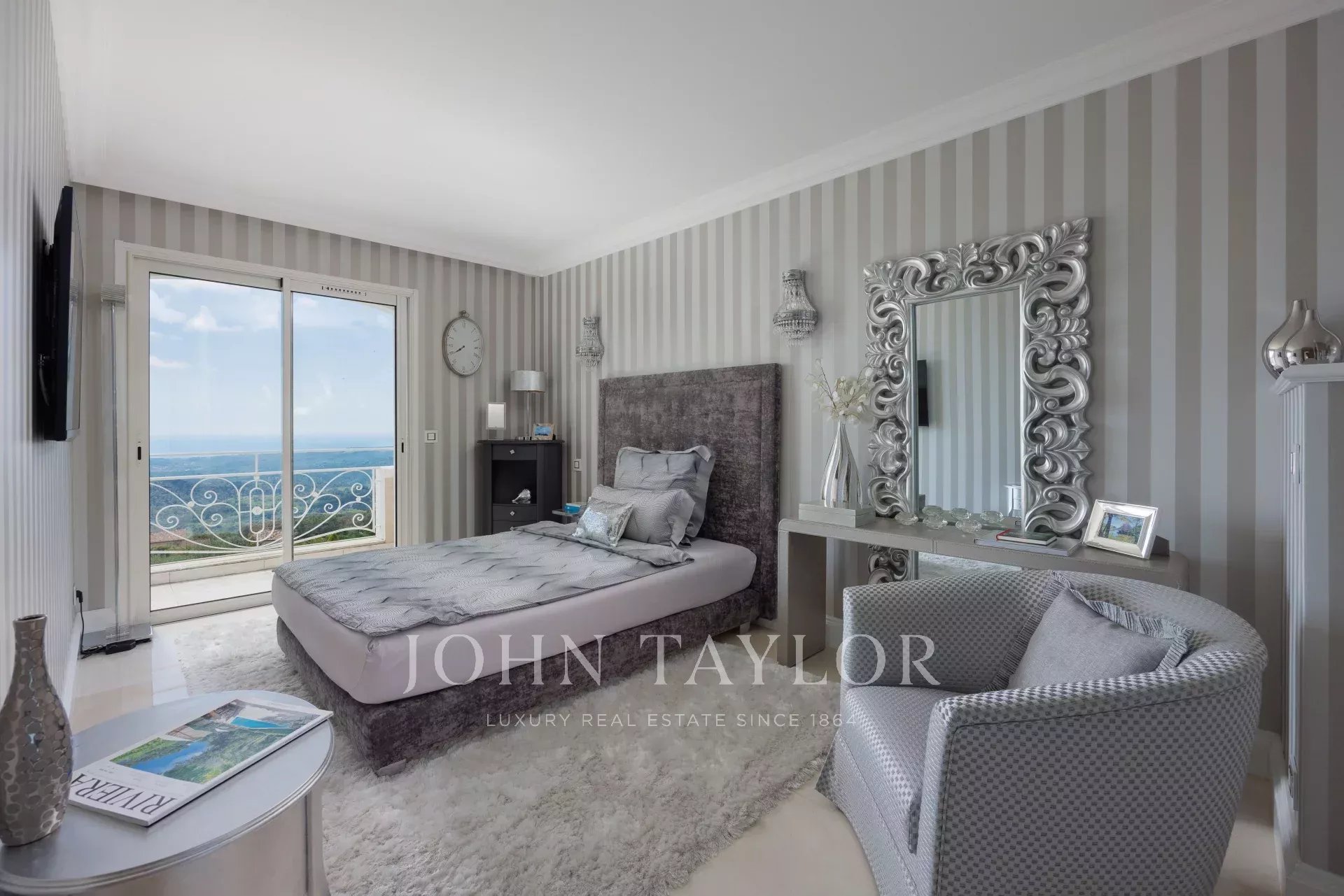 Rozkládá se na třech podlažích, v přízemí se nachází prosvětlený obývací pokoj s krbem na dřevo, nádherná plně vybavená kuchyně, sportovní místnost a elegantní terasy s výhledem na přepychový bazén. V prvním patře se hlavní apartmá a druhá ložnice s koupelnou dělí o prostor s knihovnou, kterou lze snadno přestavět na čtvrtou ložnici, a všechny mají přístup na terasy s nádherným výhledem.
