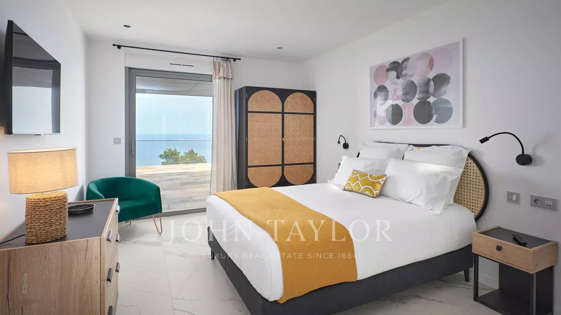 Tato nová vila na pozemku o rozloze 2004 m² se nachází na dominantním místě v naprostém klidu v Théoule-sur-Mer, pouhých 5 minut od vesnice, a nabízí nádherný výhled na moře.