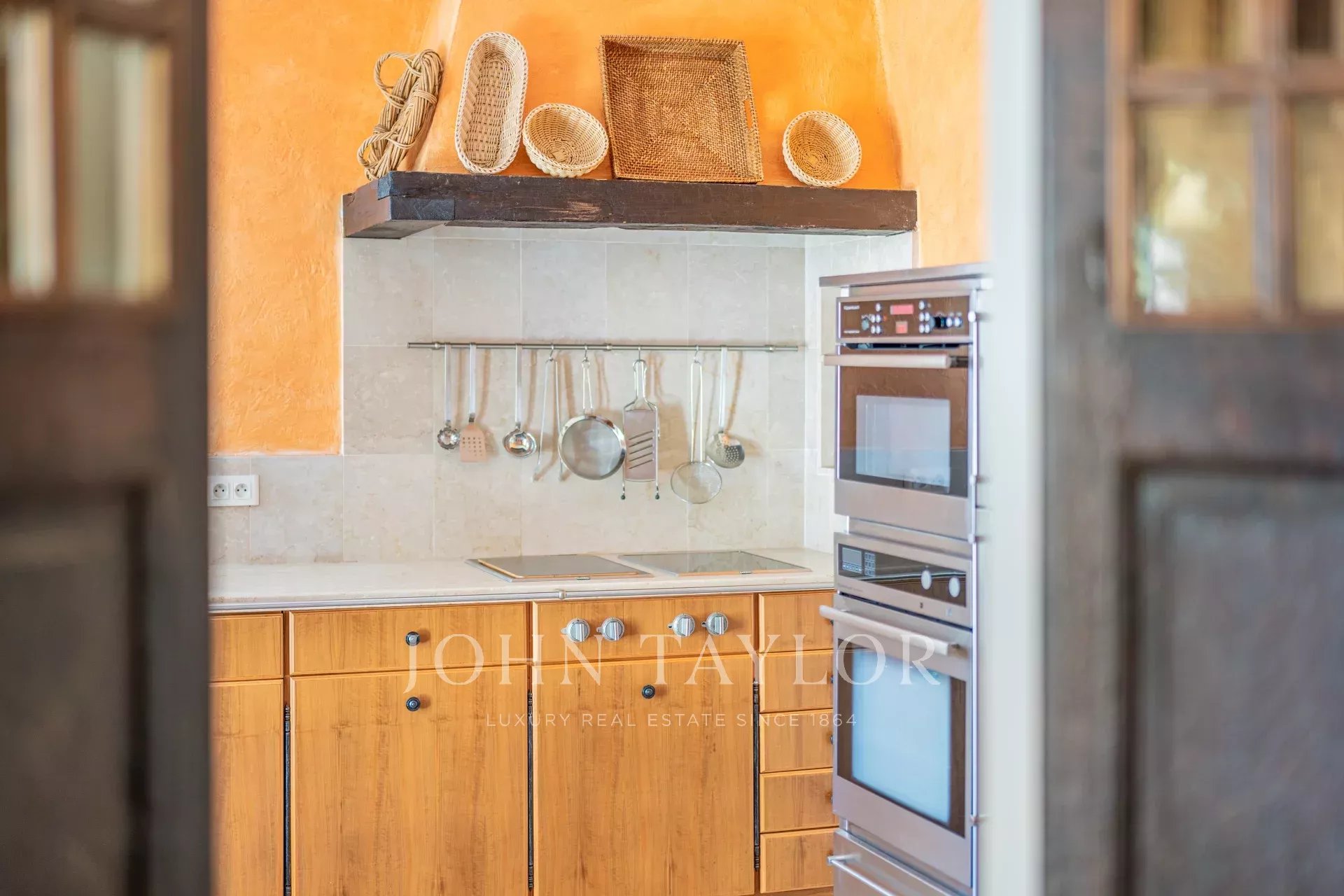 Vychutnejte si úchvatný výhled na moře a naprostý klid z tohoto domu v provensálském stylu s okouzlující kamennou fasádou a stoupajícími trámovými stropy.