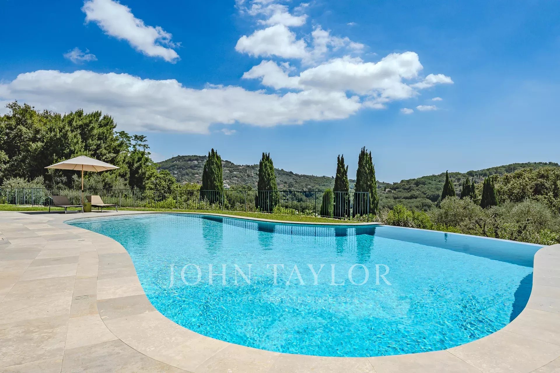 Tato nedávno zrekonstruovaná provensálská vila se nachází na malebných kopcích v zázemí Cannes a je ztělesněním pohodlí, luxusu, modernosti a bezkonkurenční kvality v kombinaci s úchvatným panoramatickým výhledem na záliv Mandelieu.