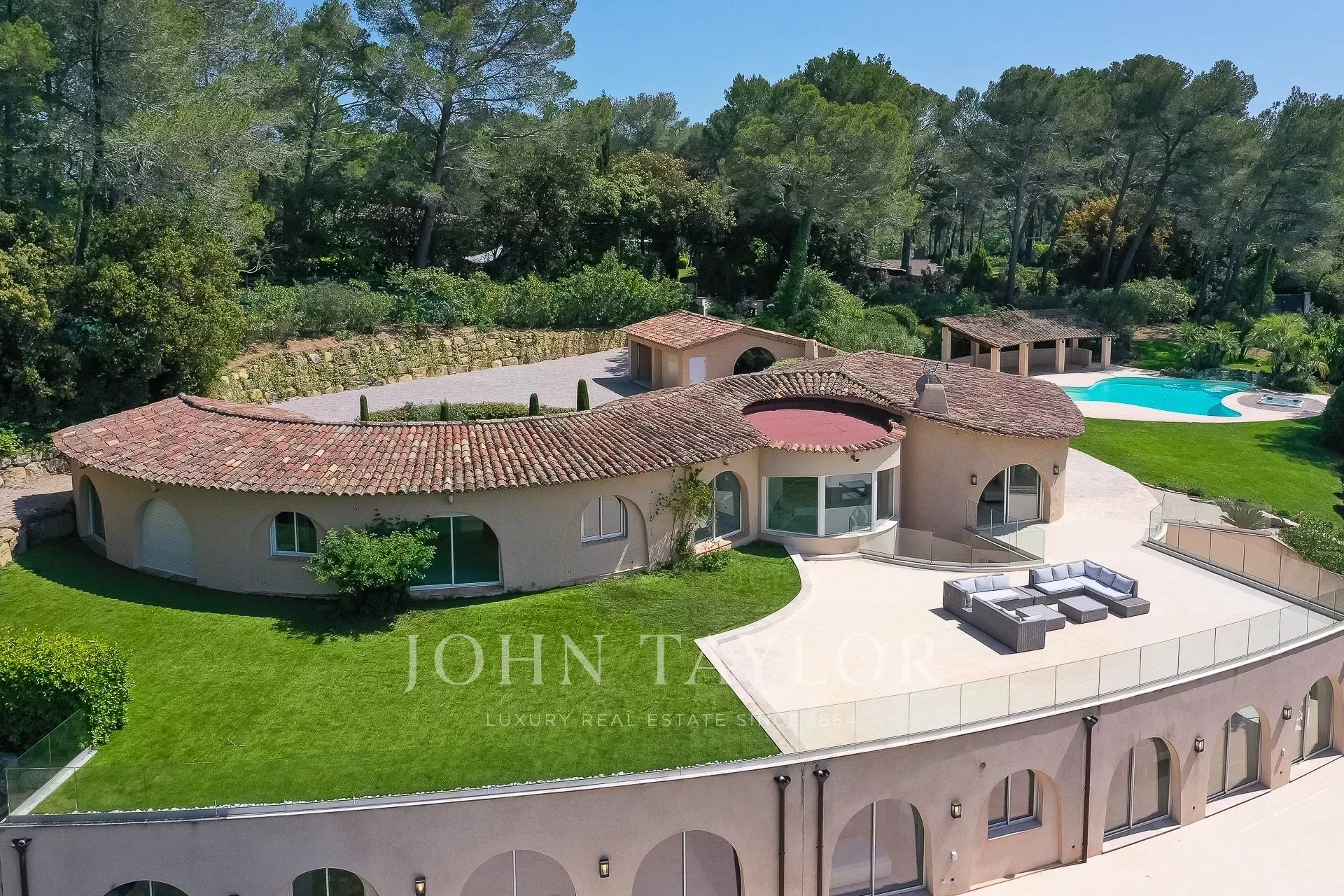 Na půli cesty mezi Mougins a Valbonne, v rezidenční čtvrti Le Redon, vynikající nemovitost inspirovaná Couëlle, zasazená do upraveného pozemku o rozloze přibližně 10 300 m² s bazénem, vířivkou a domkem u bazénu.