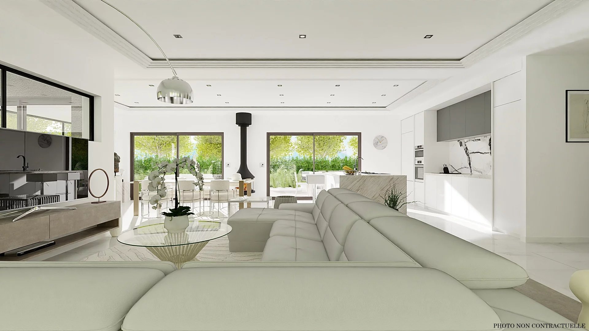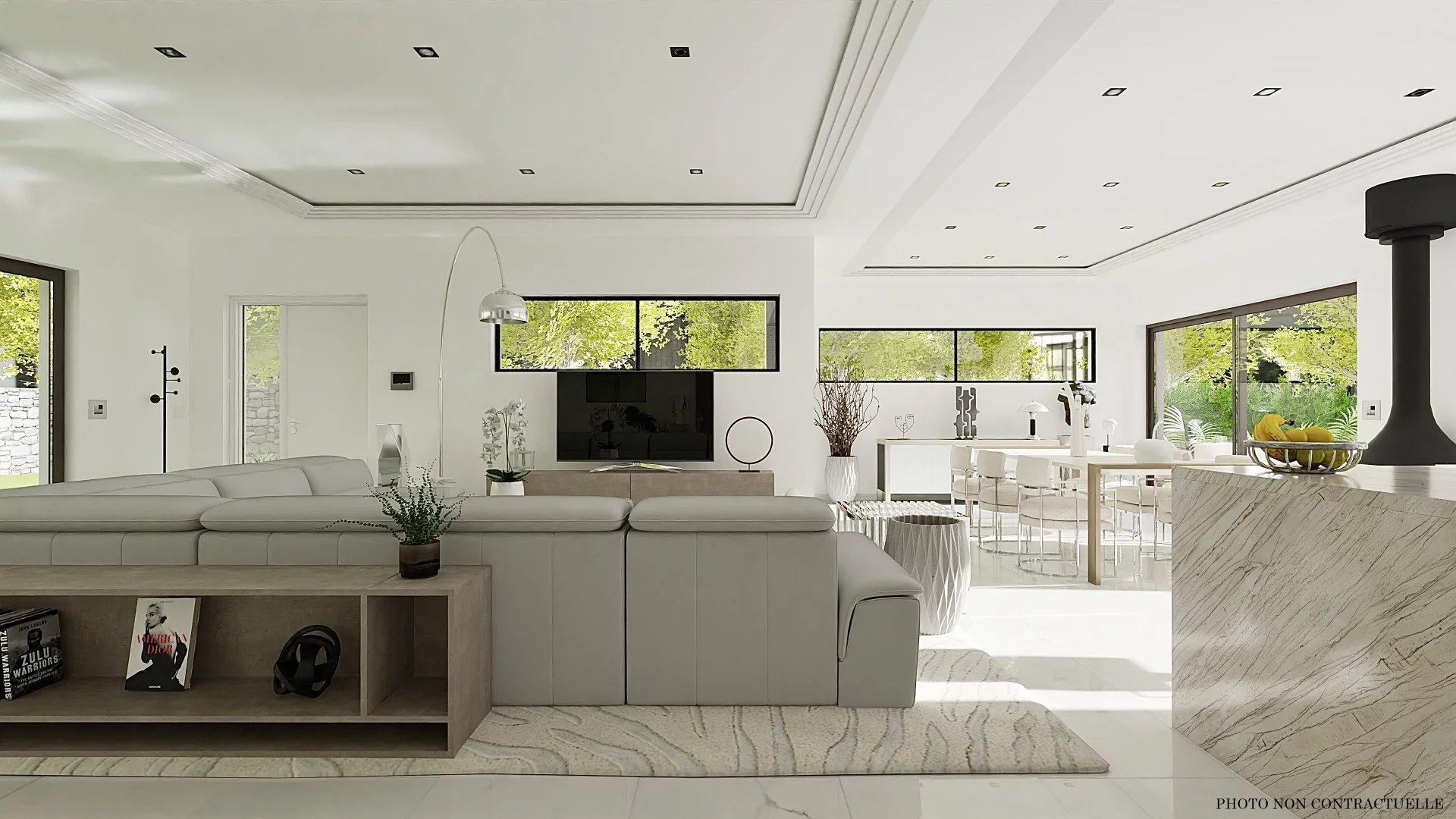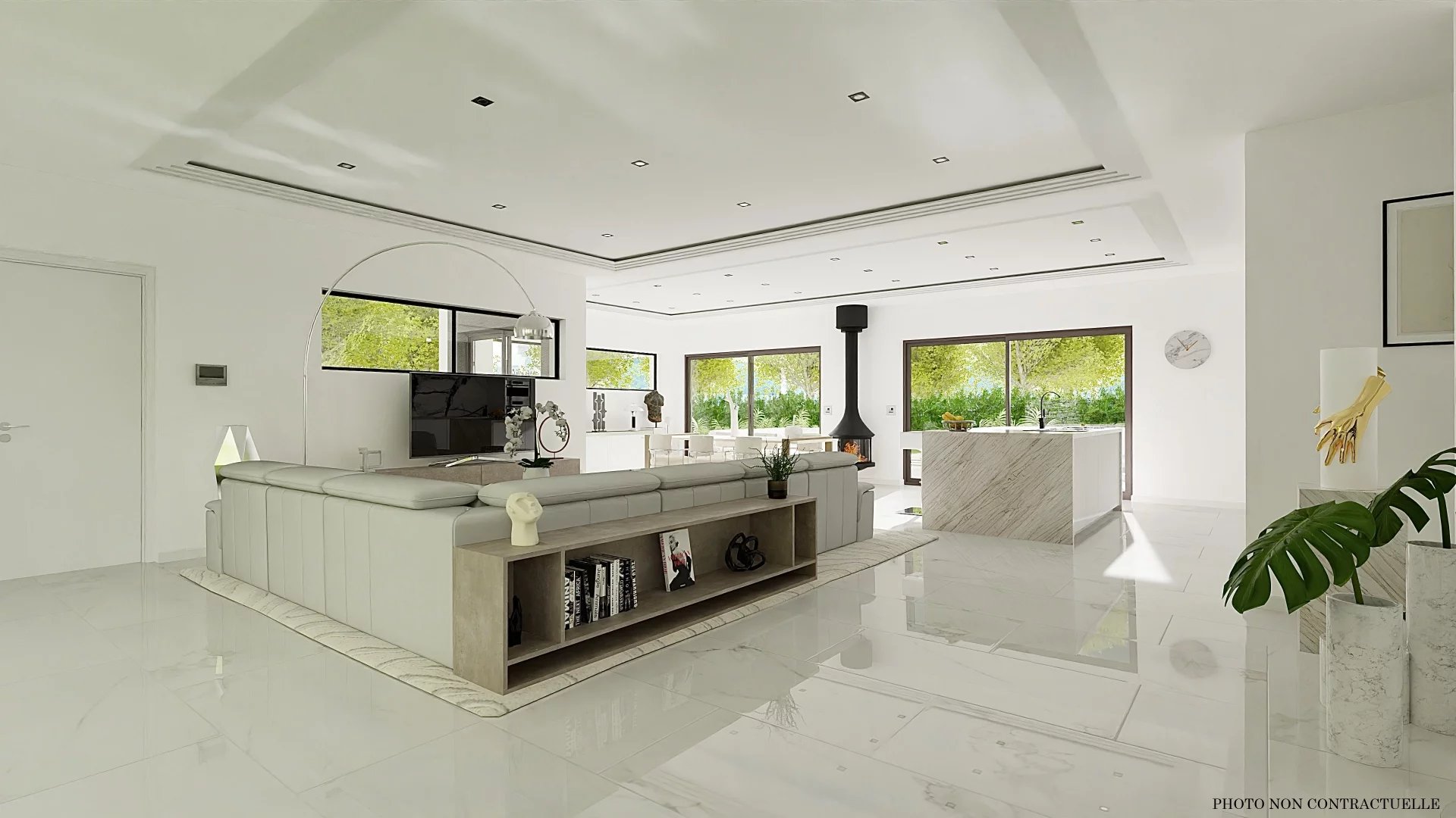 Velký přijímací prostor o rozloze 70 m² s obývacím pokojem/jídelnou, otevřenou kuchyní.