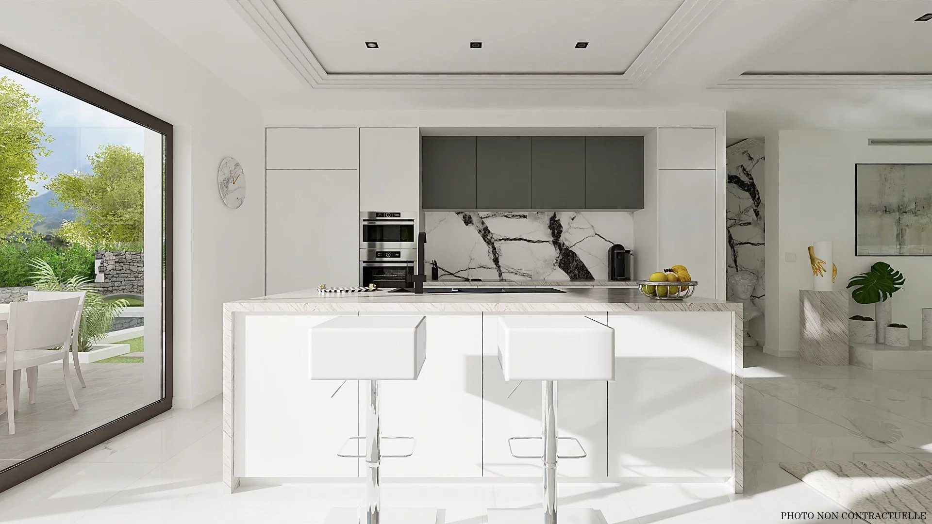 Malá, uzavřená a bezpečná usedlost 4 vil, v blízkosti Valbonne. Každá vila se skládá ze 2 podlaží: