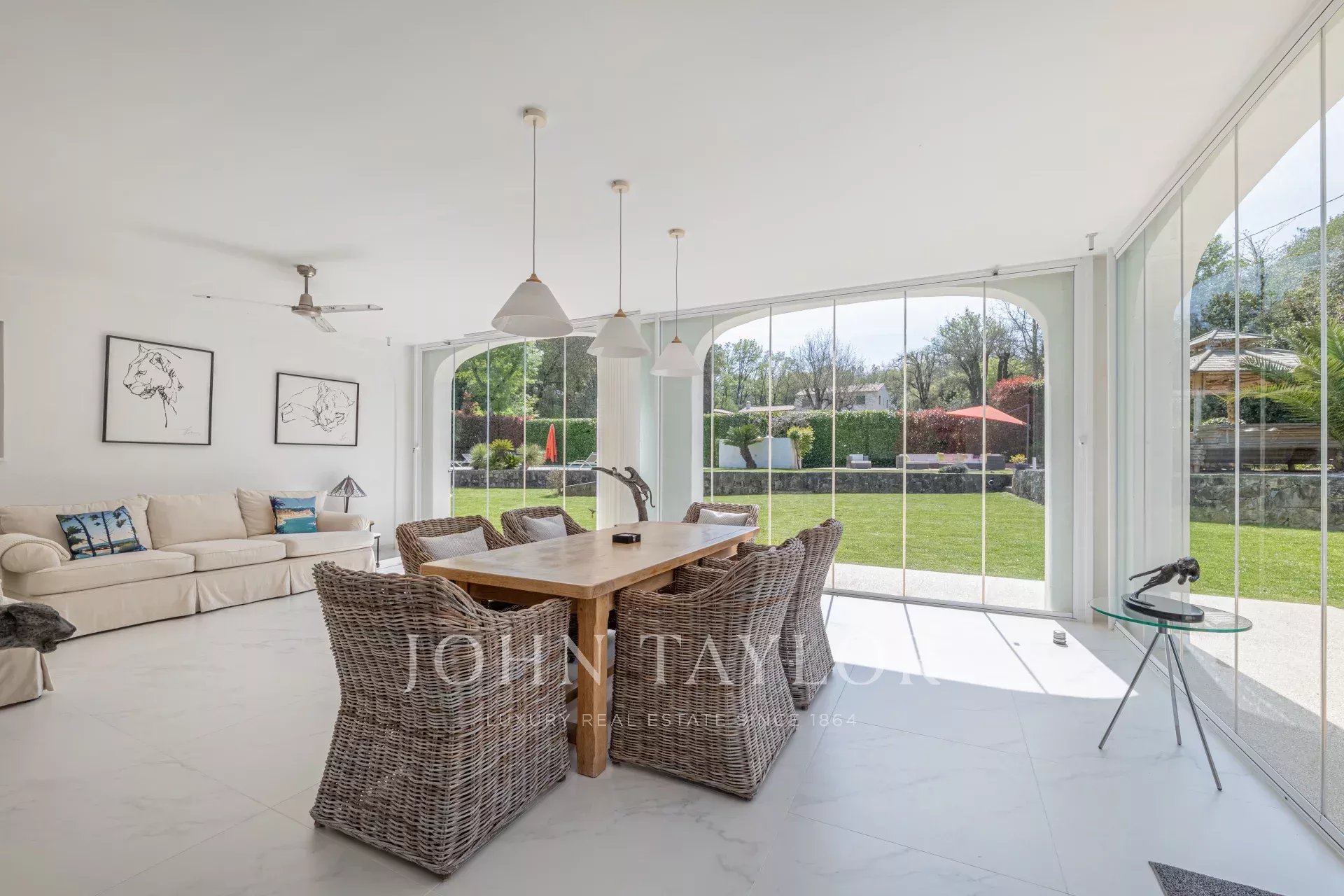 Tato prostorná vila se nachází v krásně upravené zahradě orientované na západ, v klidném prostředí, na privilegovaném místě v blízkosti vesnice Valbonne, se snadnou dostupností do Sophia Antipolis.