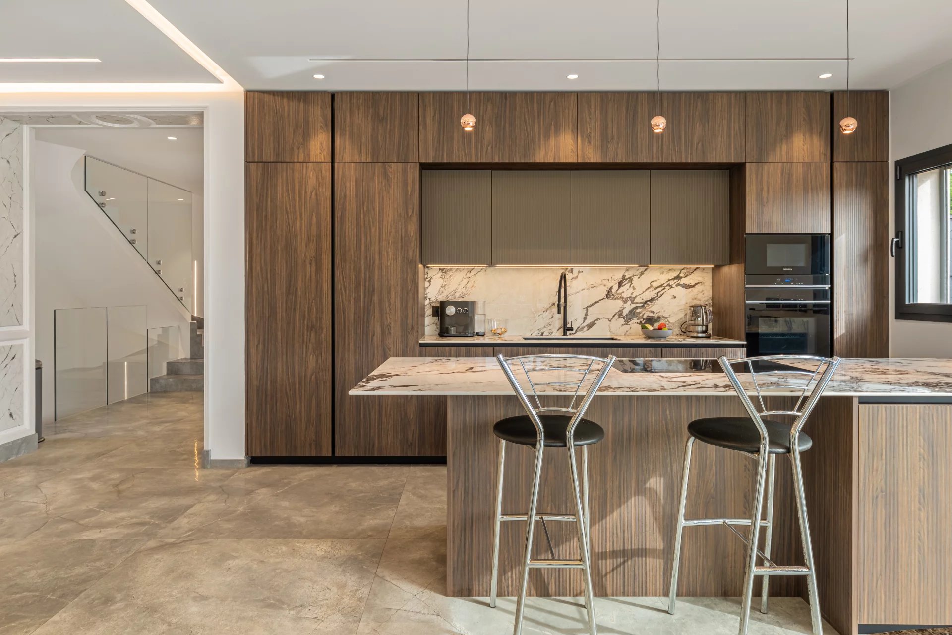 Hned po vstupu vás okouzlí rozlehlý obytný prostor zalitý světlem, který tvoří obývací pokoj s jídelnou rozšířený o špičkovou otevřenou kuchyň s pečlivě provedenými úpravami.