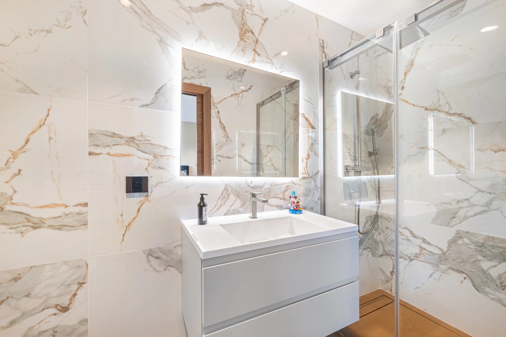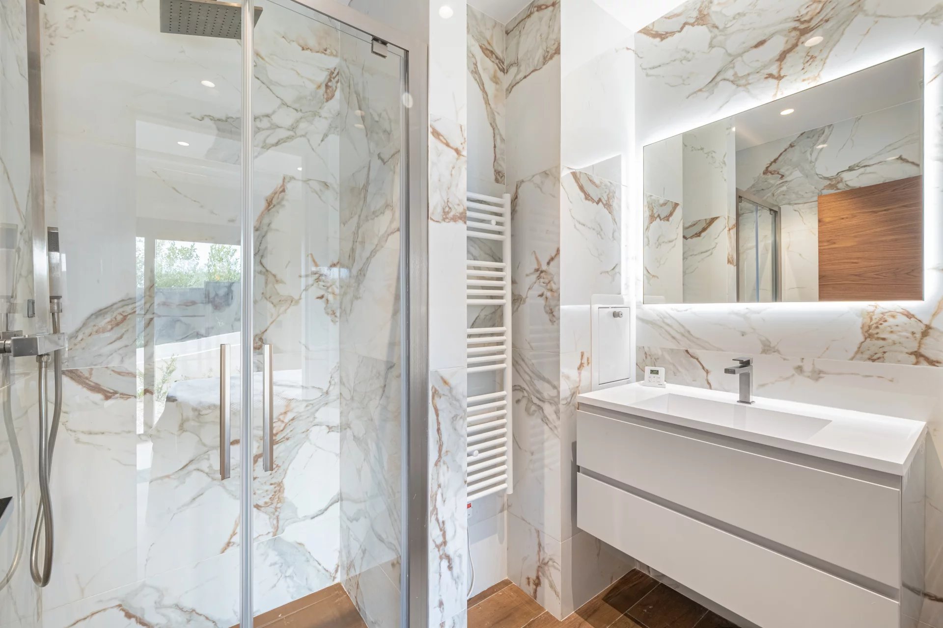 Hlavní apartmá, které je skutečně výsadním prostorem, se může pochlubit šatnou a rozlehlou koupelnou se sprchovým koutem a vanou. Velká soukromá terasa je kokonem klidu a soukromí.