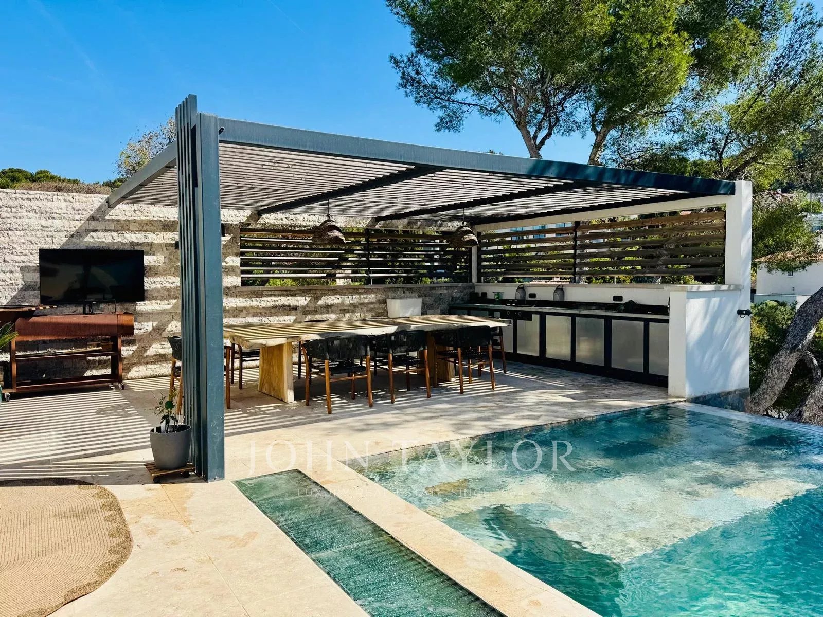 Plocha 370 m²370 m²Pozemek 890 m²890 m²9 Pokoje9 PokojeExpozice South South Výhled  Panoramatický Vesnice Moře Panoramatický Vesnice Moře Plavecký bazénPlavecký bazénKlimatizaceKlimatizaceKrbKrb