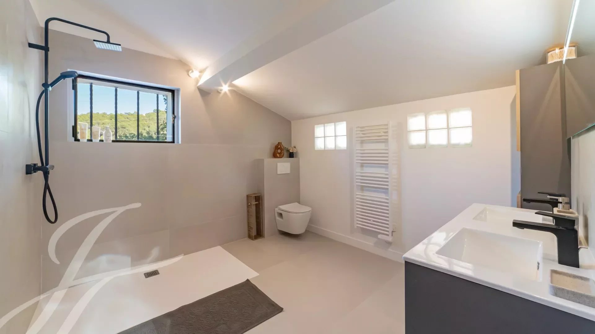 Tato vila o rozloze 250 m2 se nachází ve velmi vyhledávané oblasti Mougins v blízkosti obchodů a vesnice, je plně klimatizovaná a má krásný bazén.