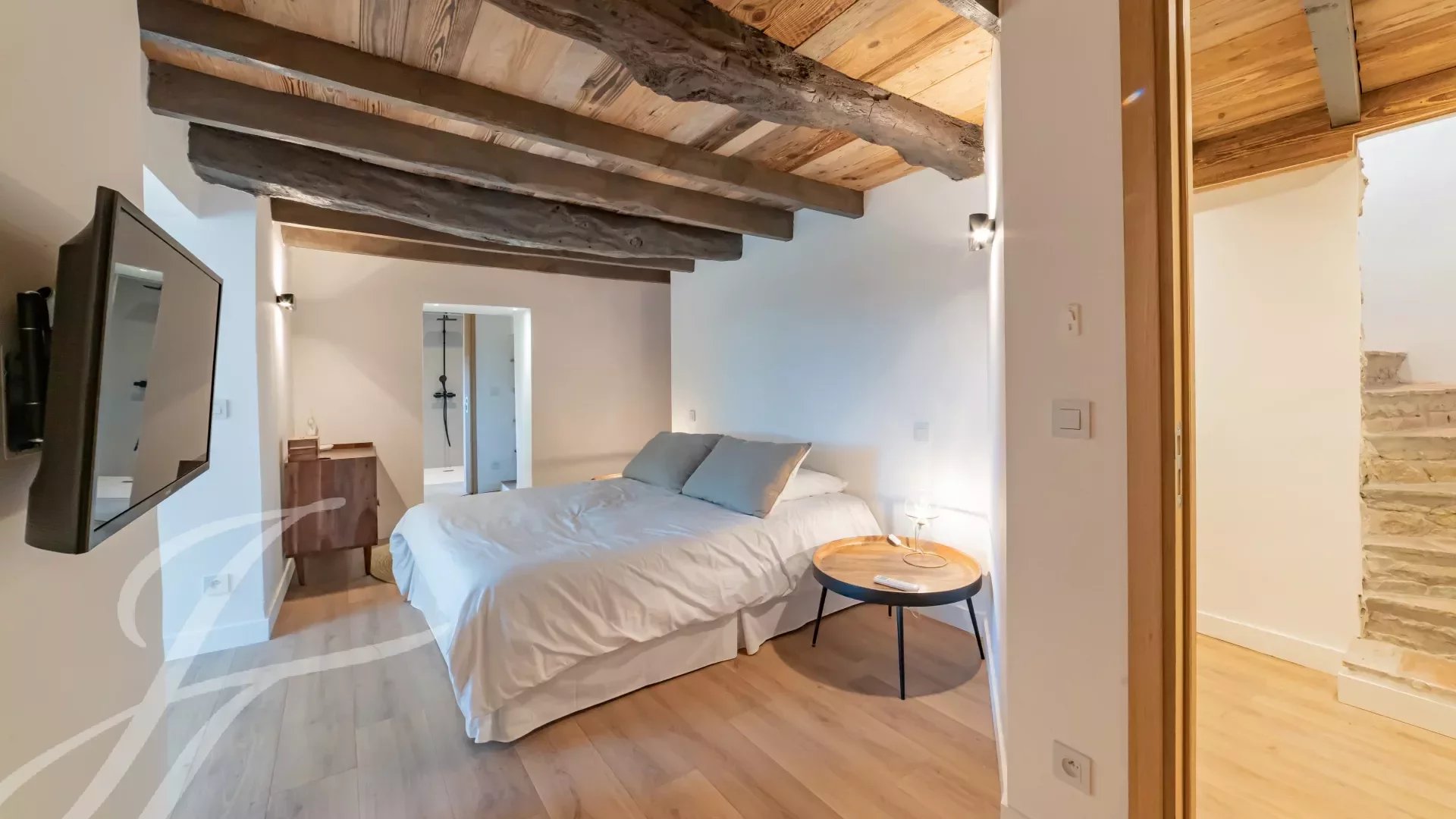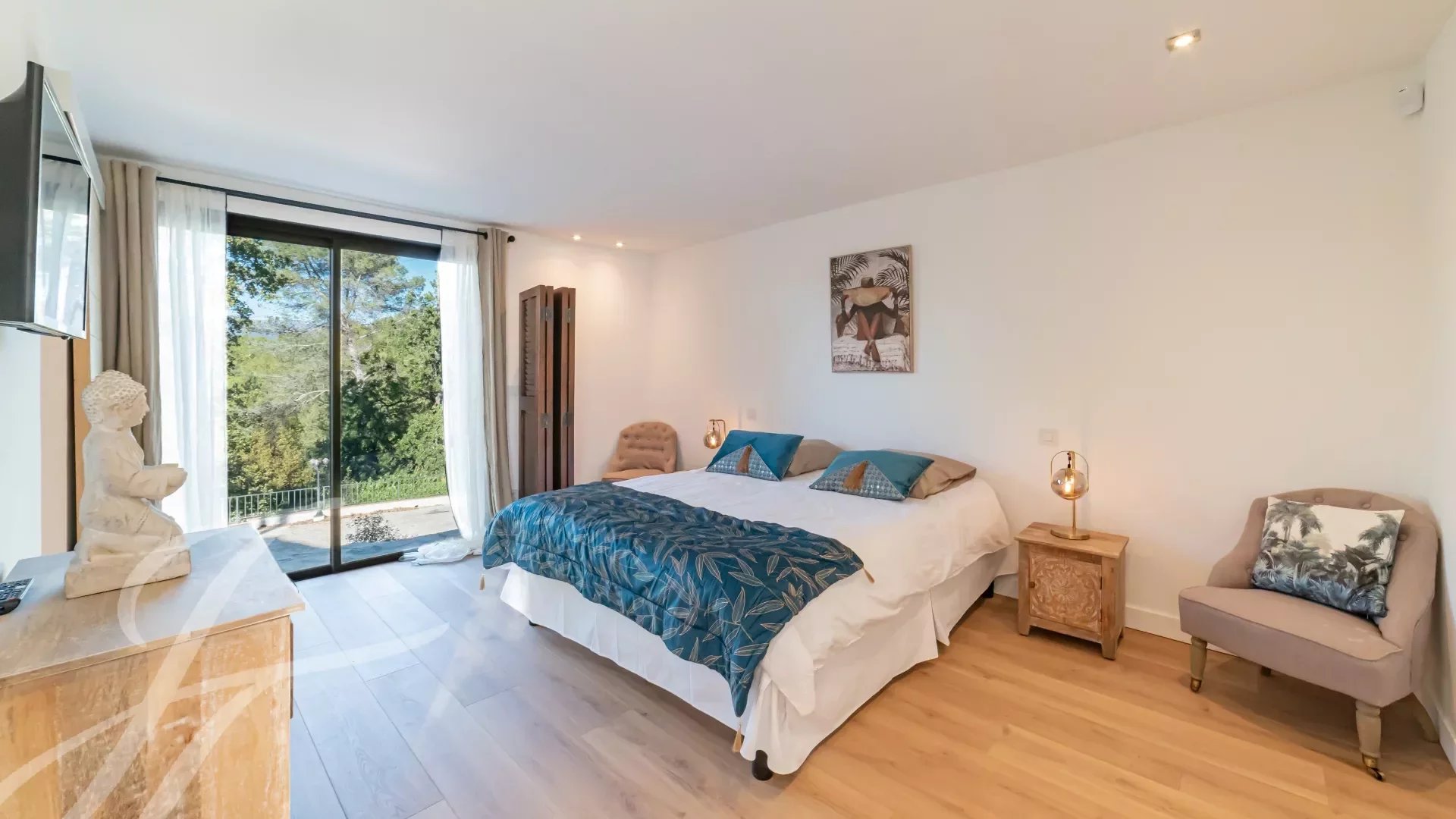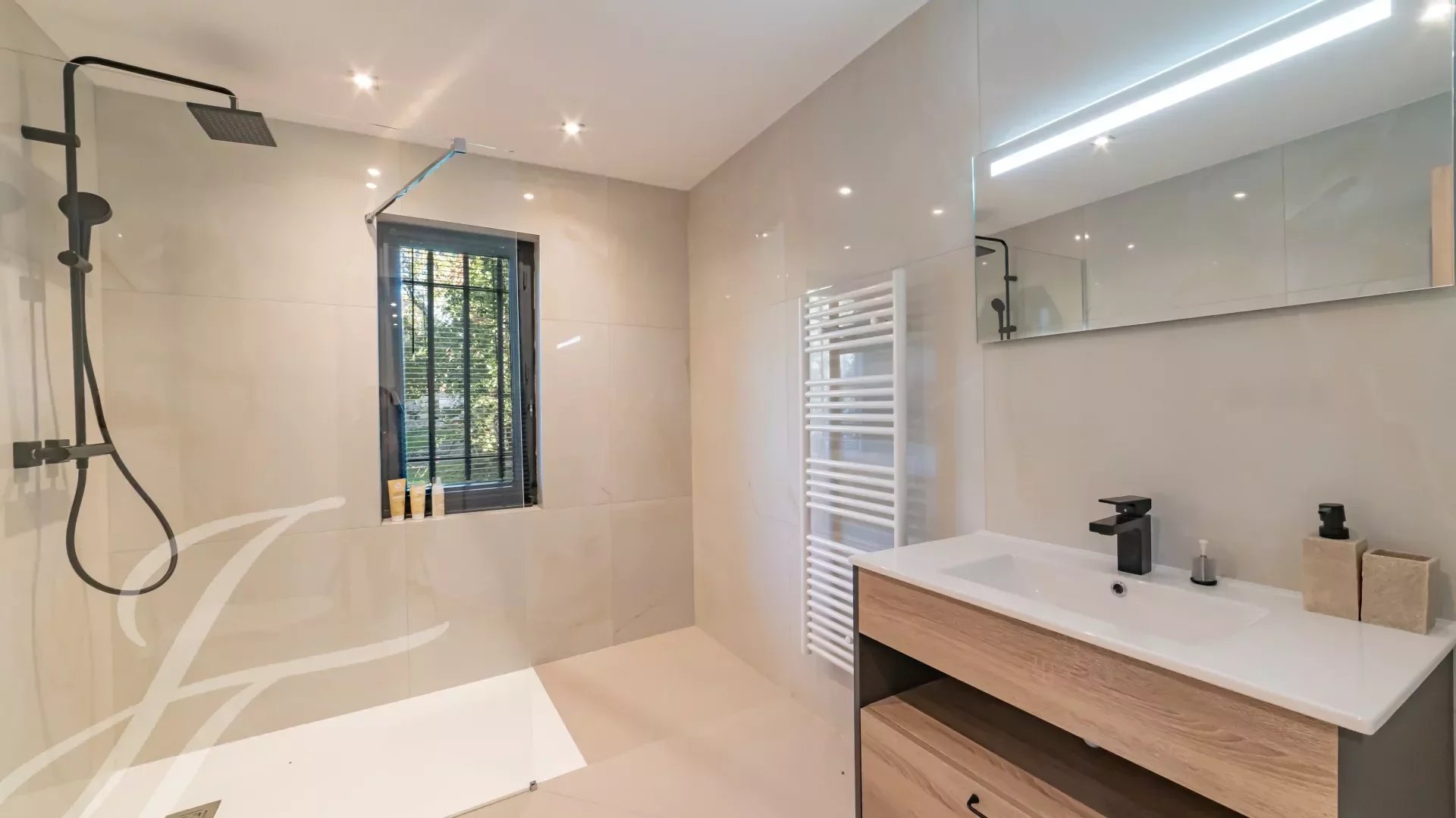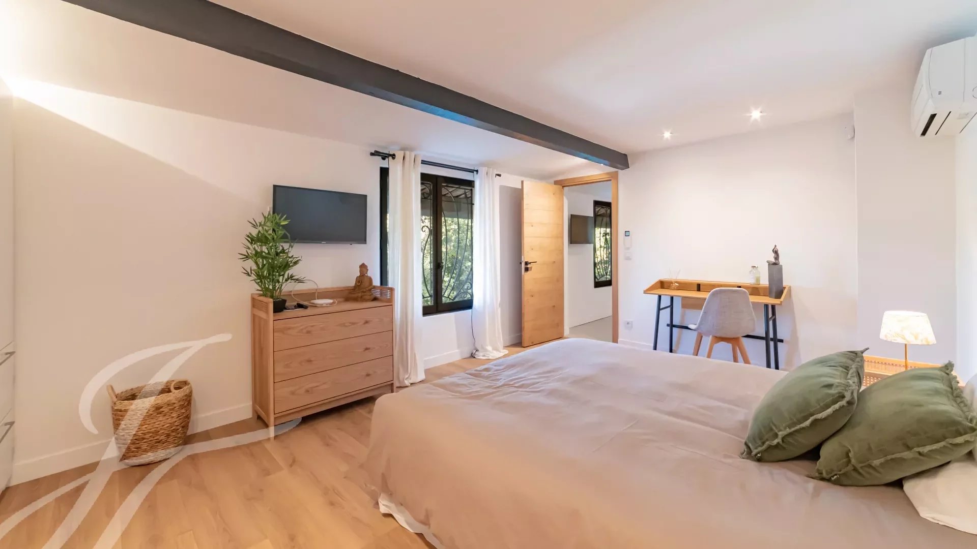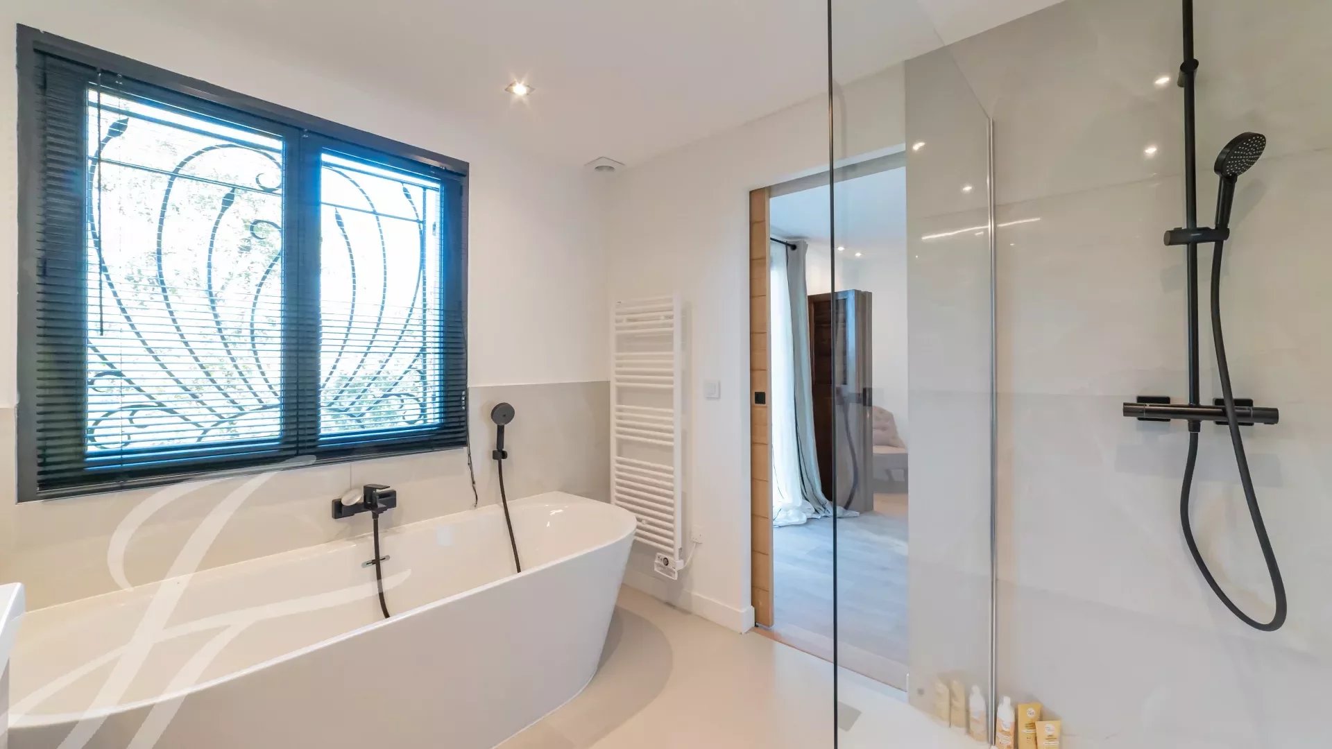 Dvě ložnice (N°3 a N°4) se sprchou, šatnou a WC. Přístup do zahrady.