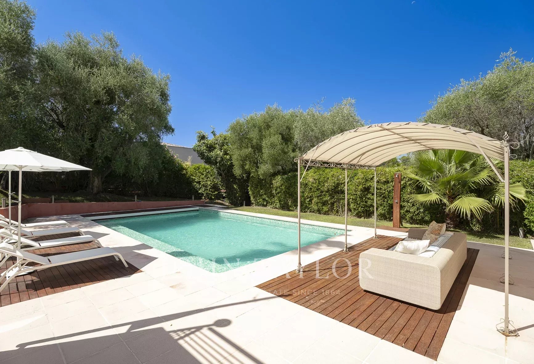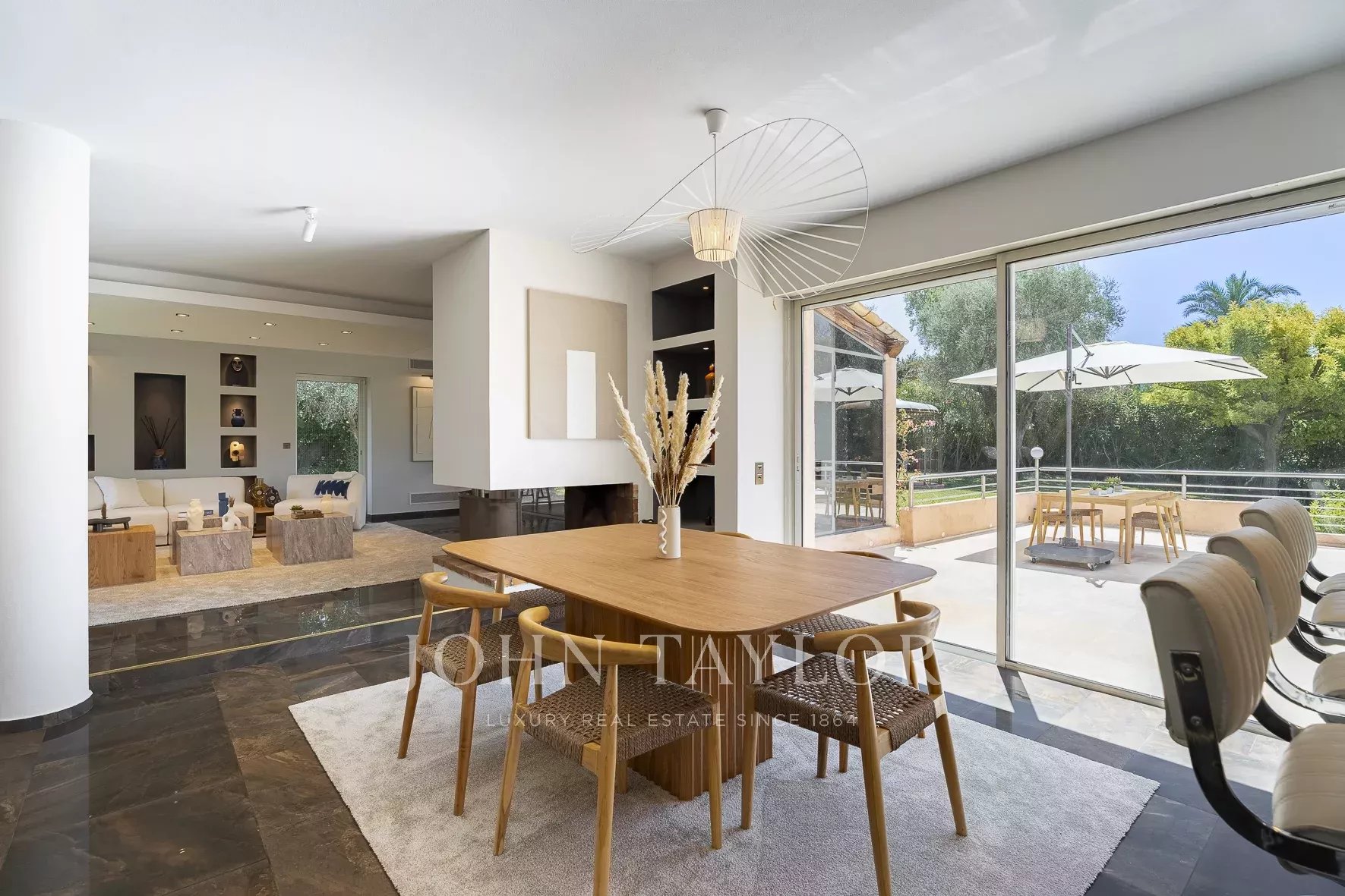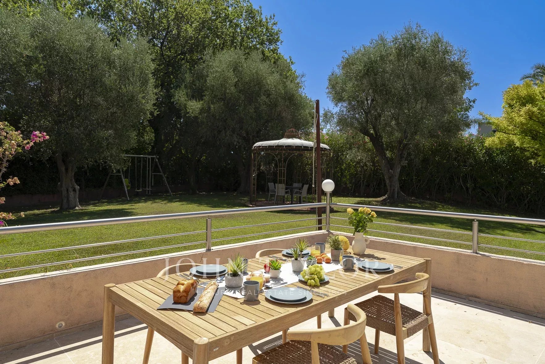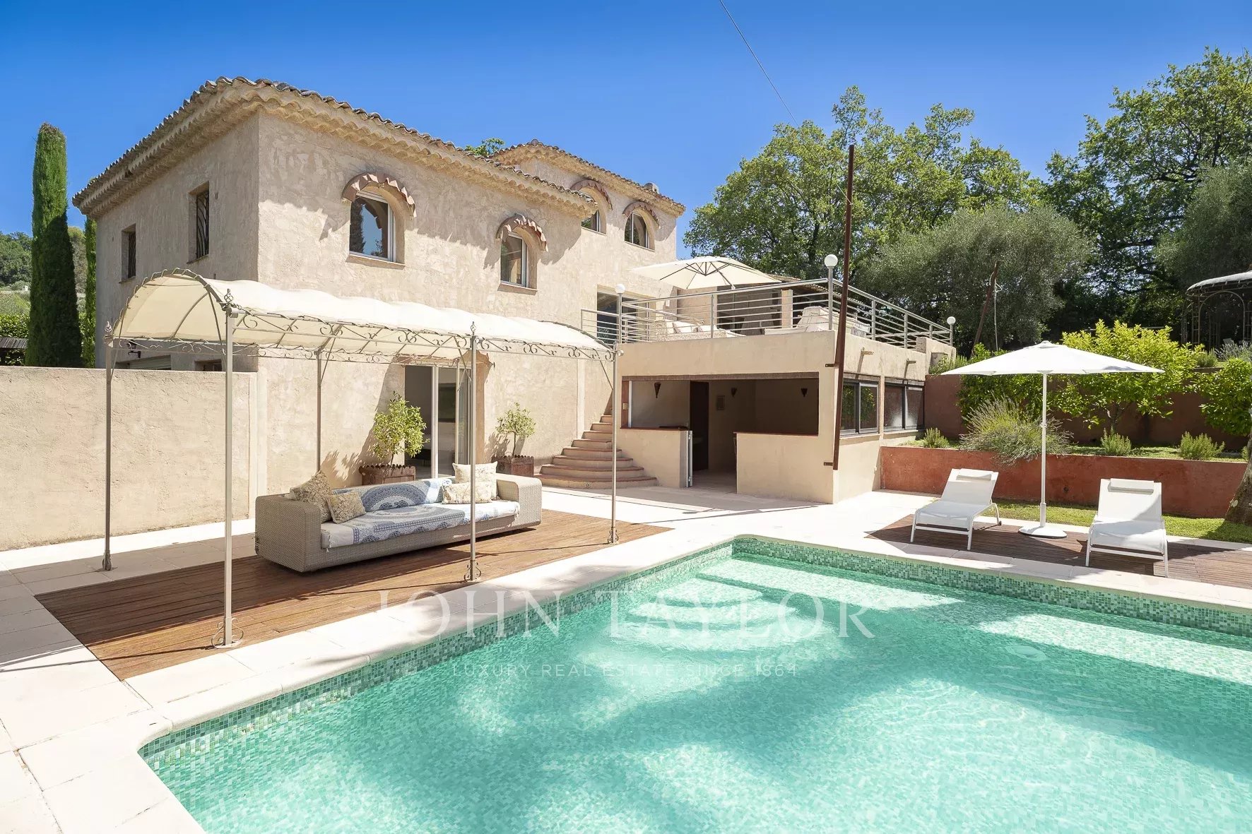 Tato vila se nachází v rezidenční čtvrti Mougins, v blízkosti staré vesnice, a nabízí klidné a kultivované životní prostředí.