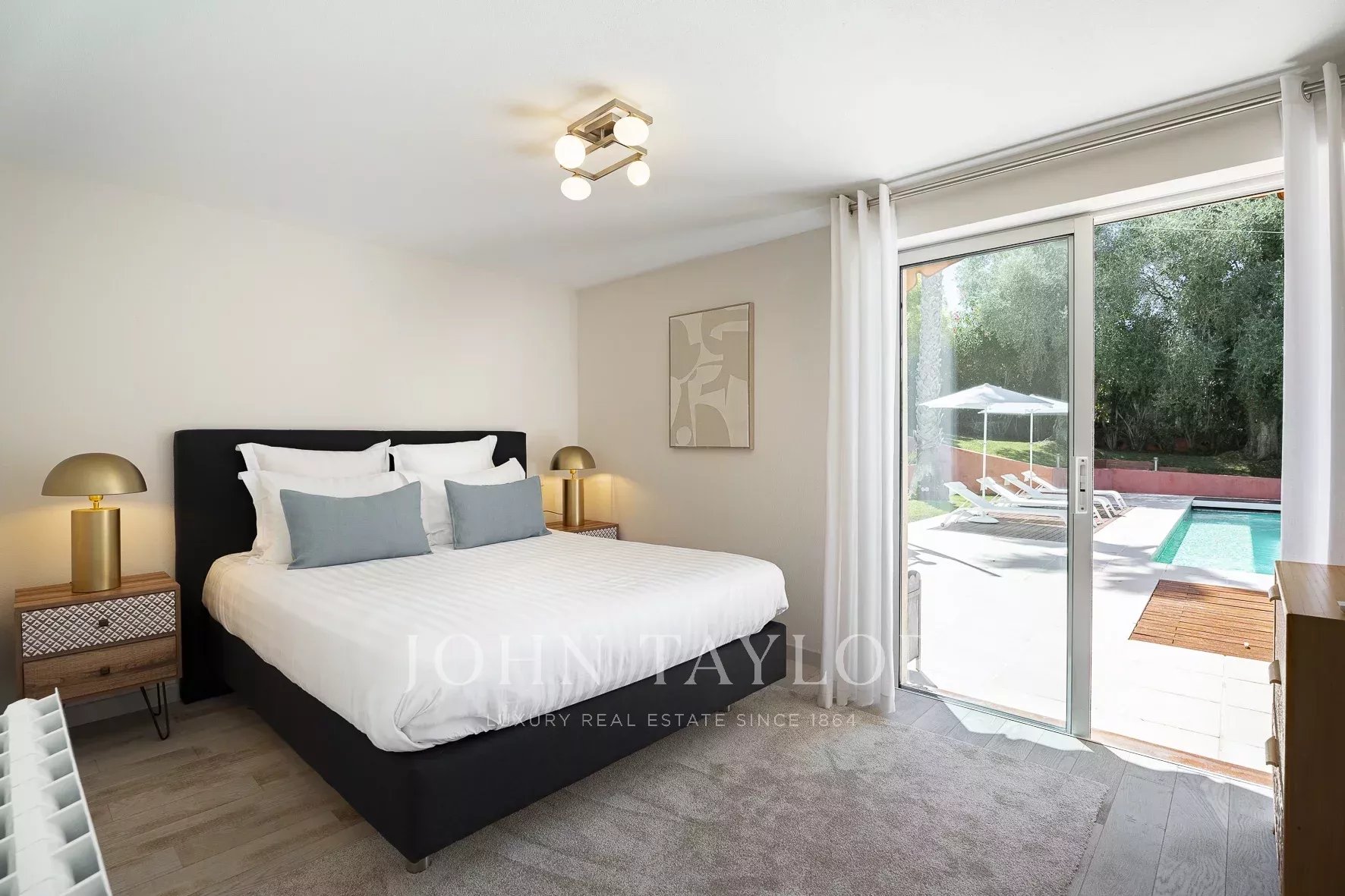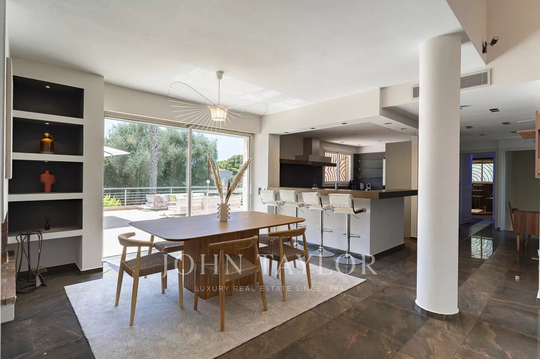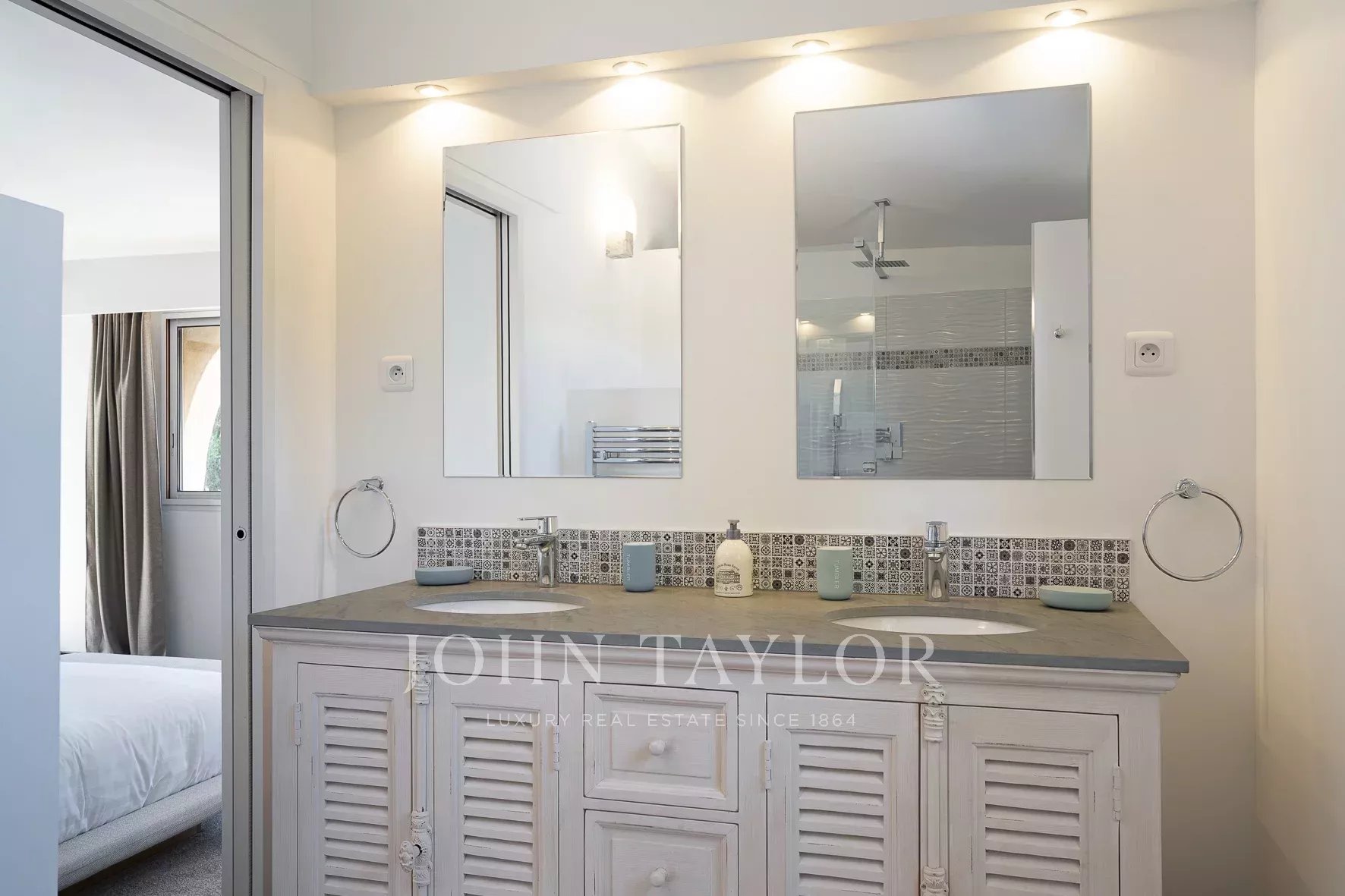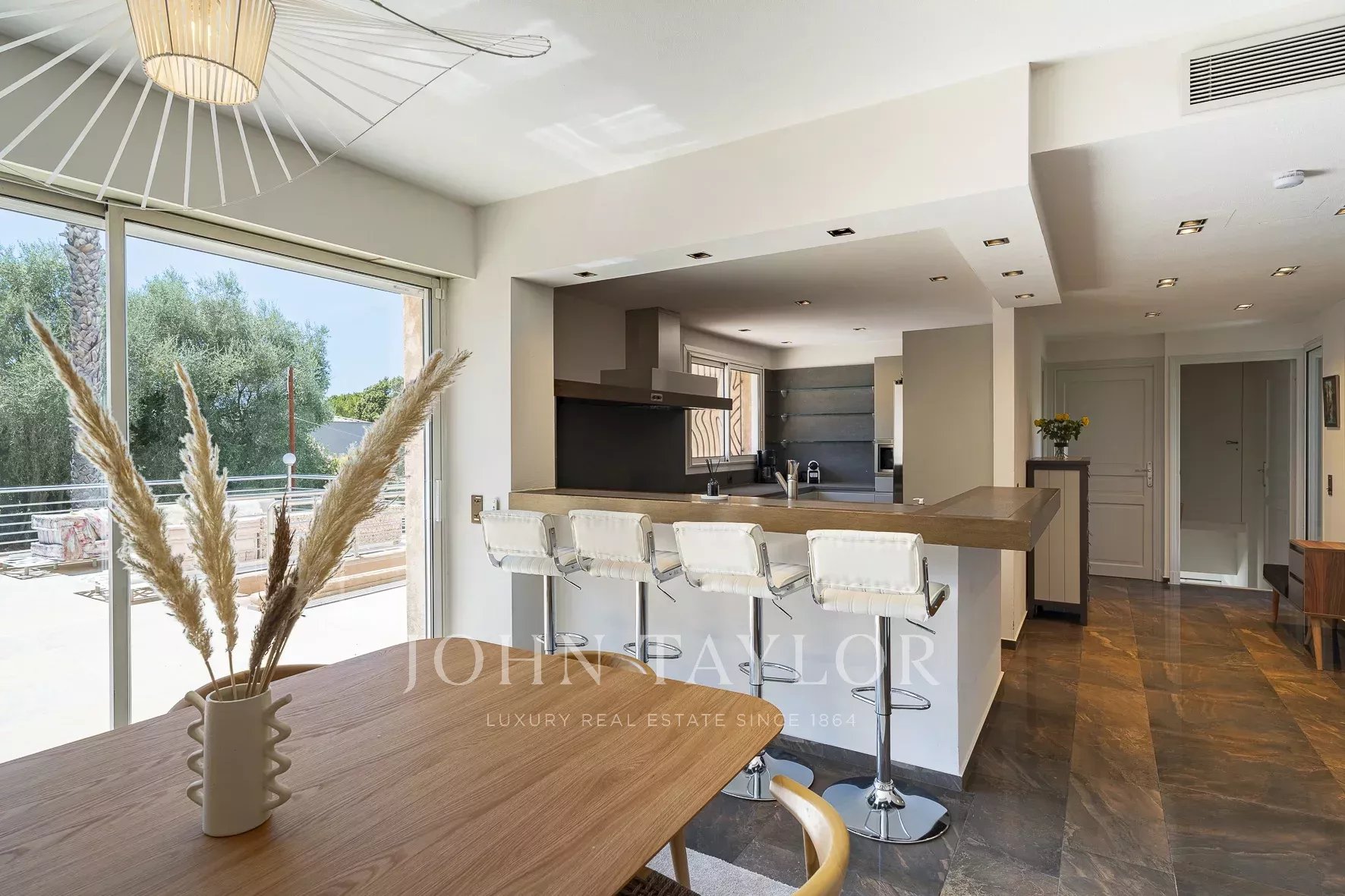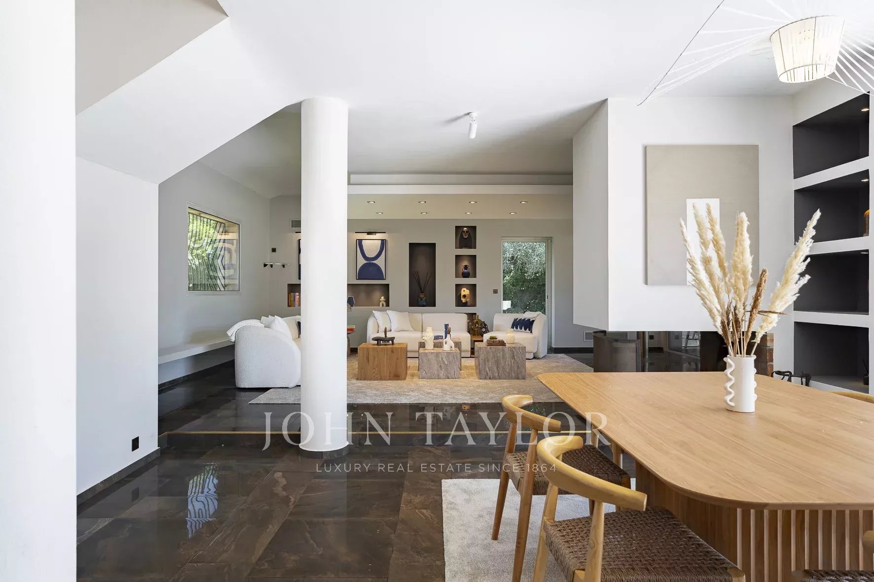 Tato vila se nachází v rezidenční čtvrti Mougins, v blízkosti staré vesnice, a nabízí klidné a kultivované životní prostředí.