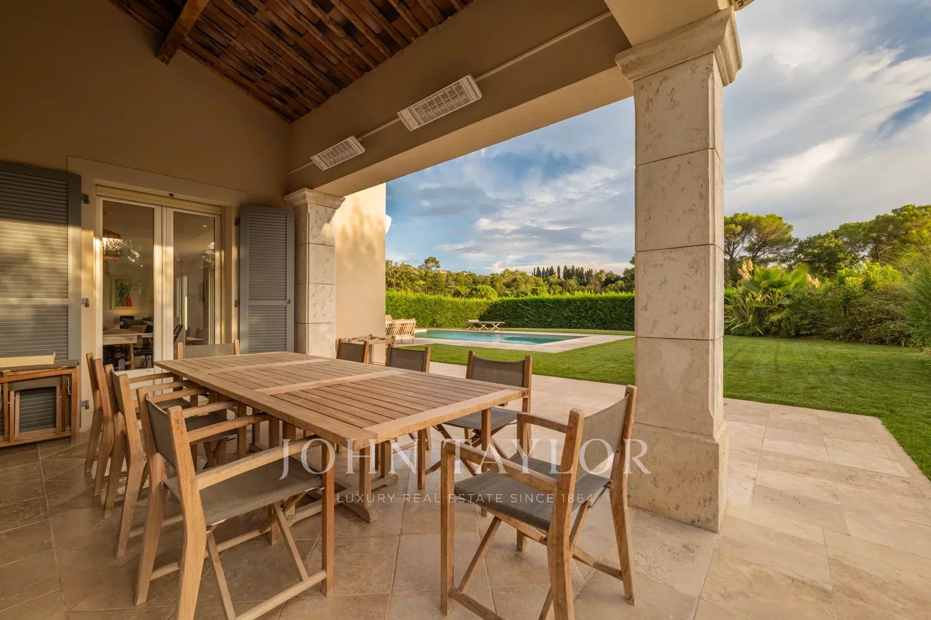 V soukromém a bezpečném areálu jen pár minut od staré vesnice Mougins objevte tuto nádhernou vilu s obytnou plochou přibližně 415 m², která se nachází uprostřed rovinaté upravené zahrady s vyhřívaným bazénem a hřištěm na petanque.