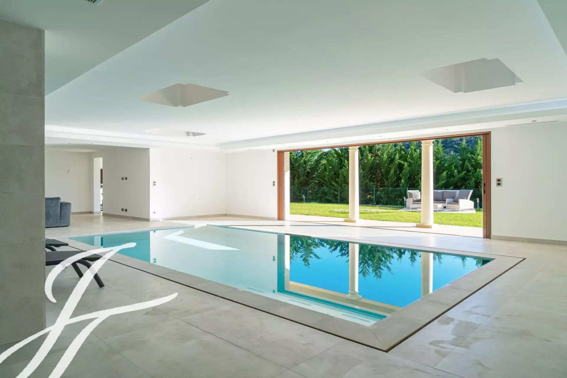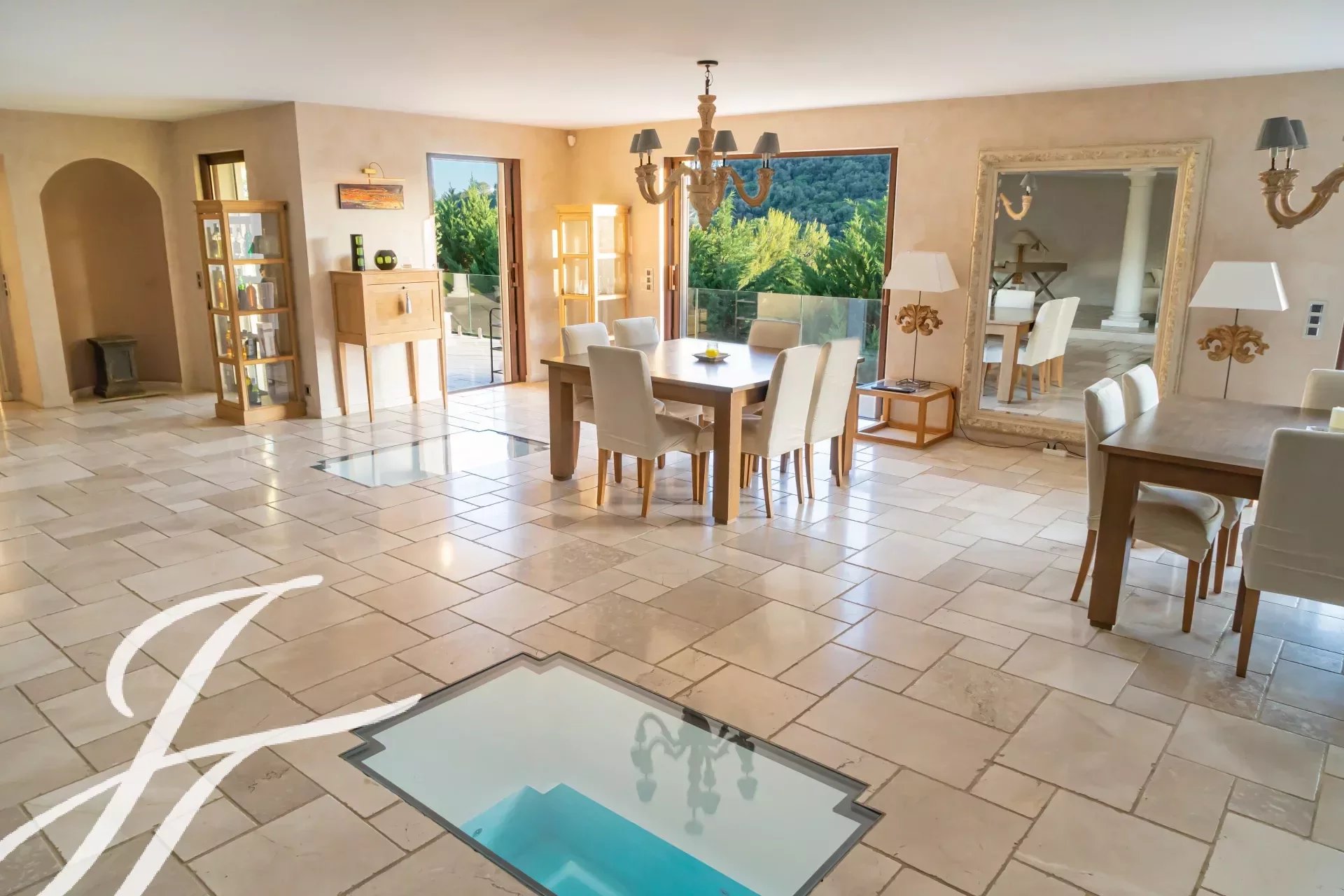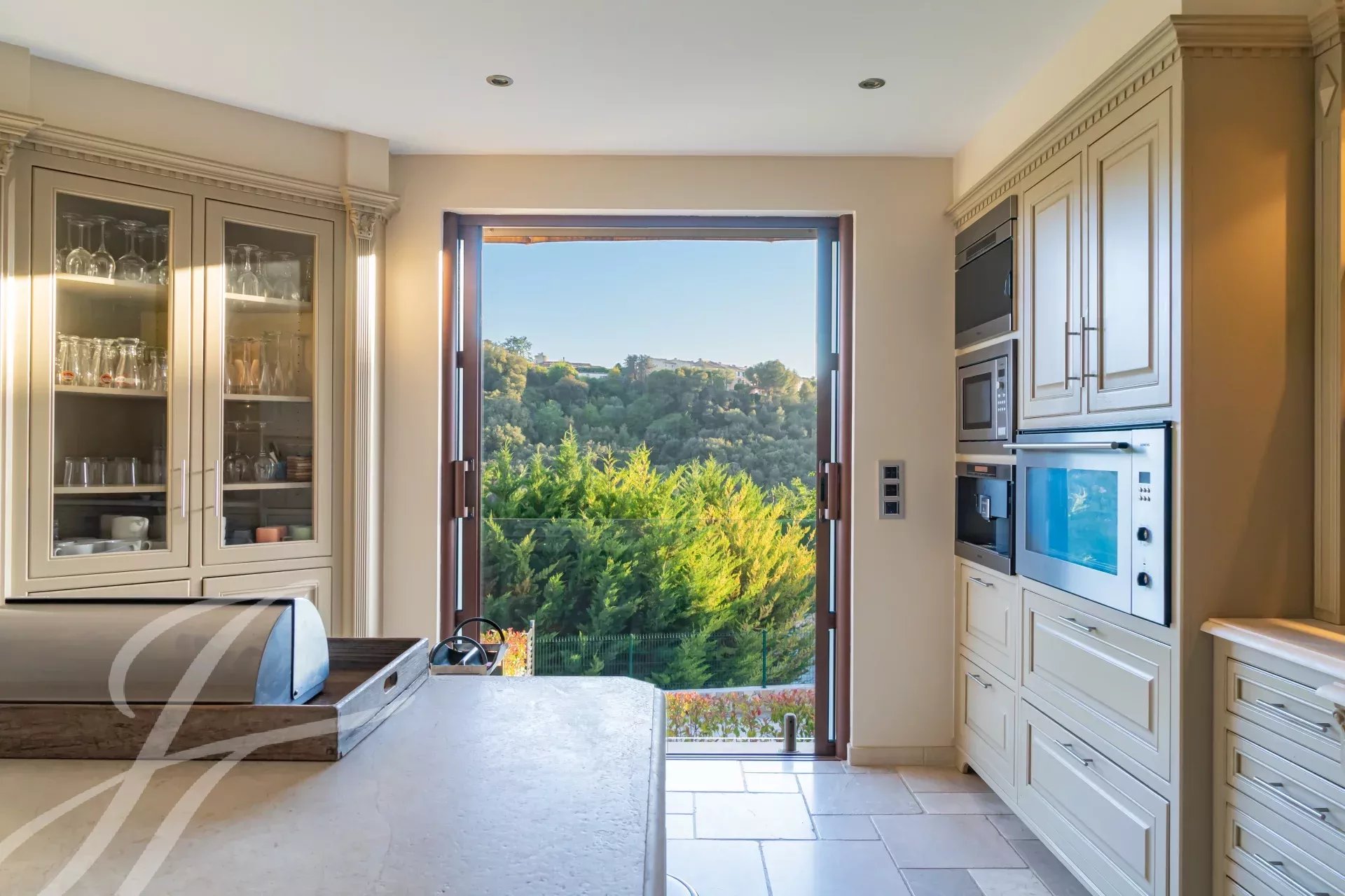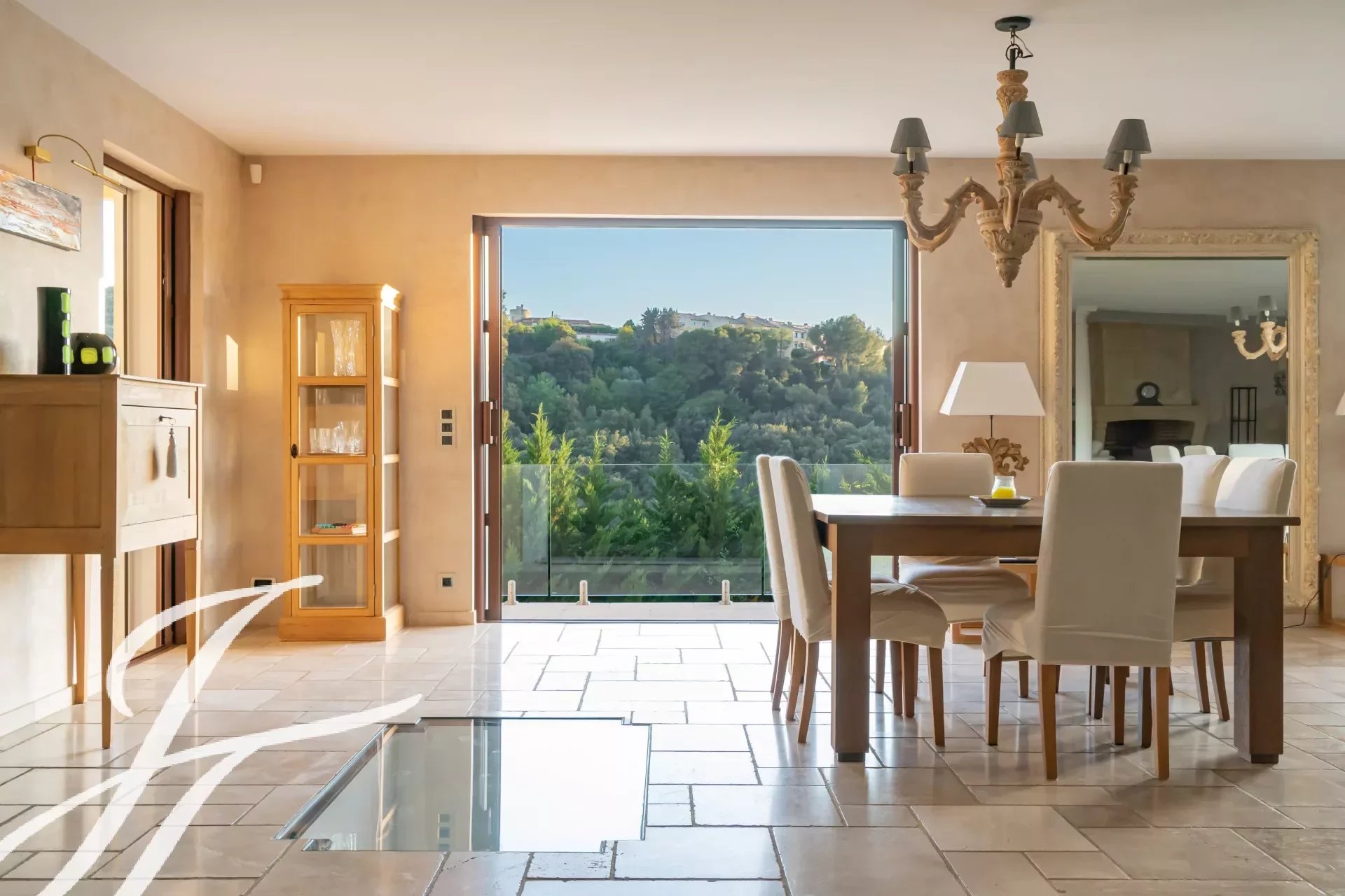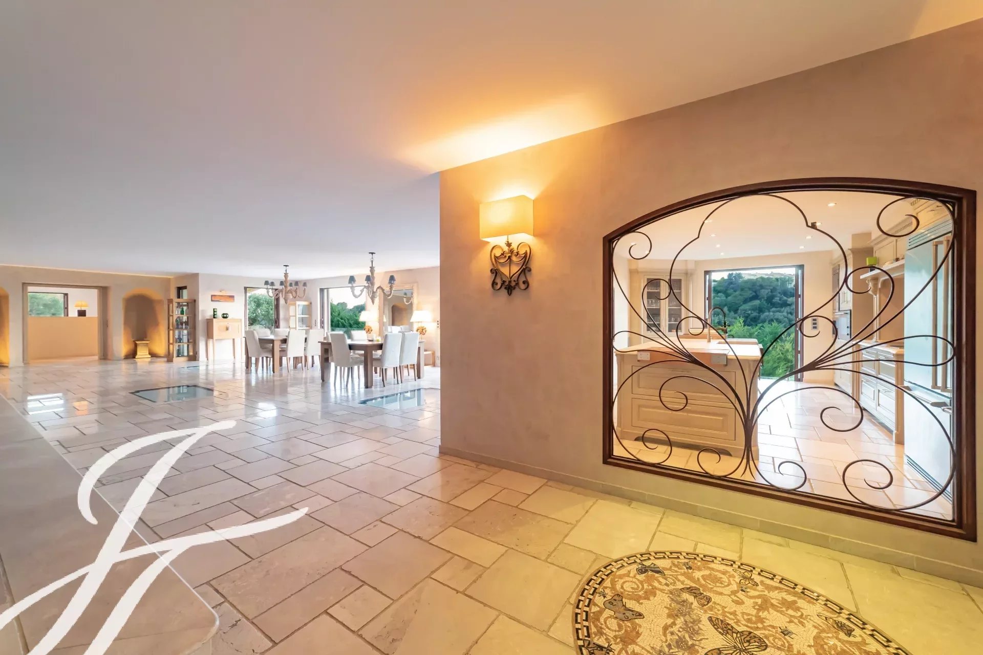 Tato výjimečná vila o rozloze téměř 550 m² se nachází na ideálním místě, pouhých 10 minut od Saint-Paul-de-Vence a pláží Cagnes-sur-Mer a 15 minut od letiště v Nice, na upraveném pozemku o rozloze přibližně 2488 m², a nabízí luxusní a klidné bydlení.