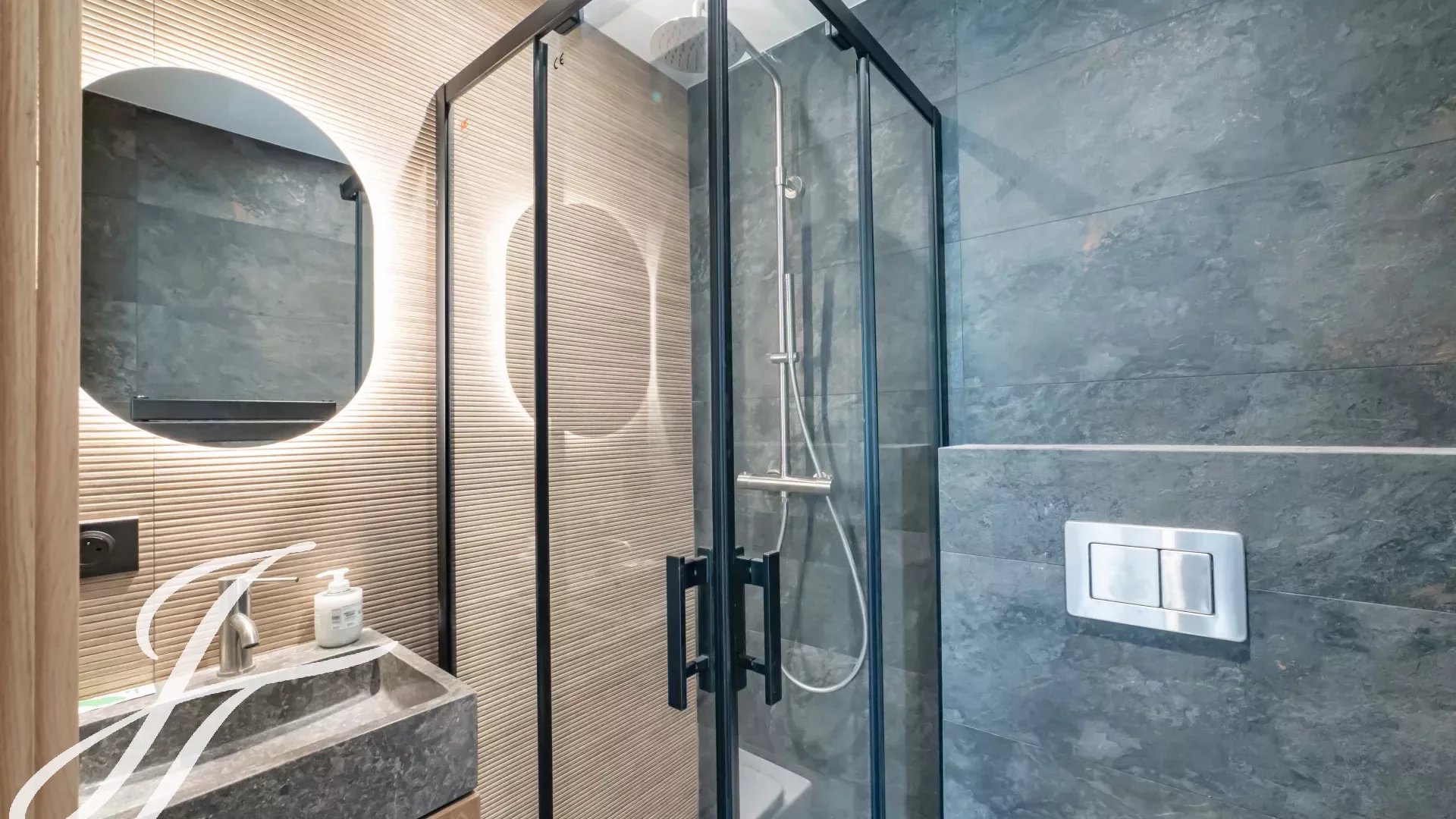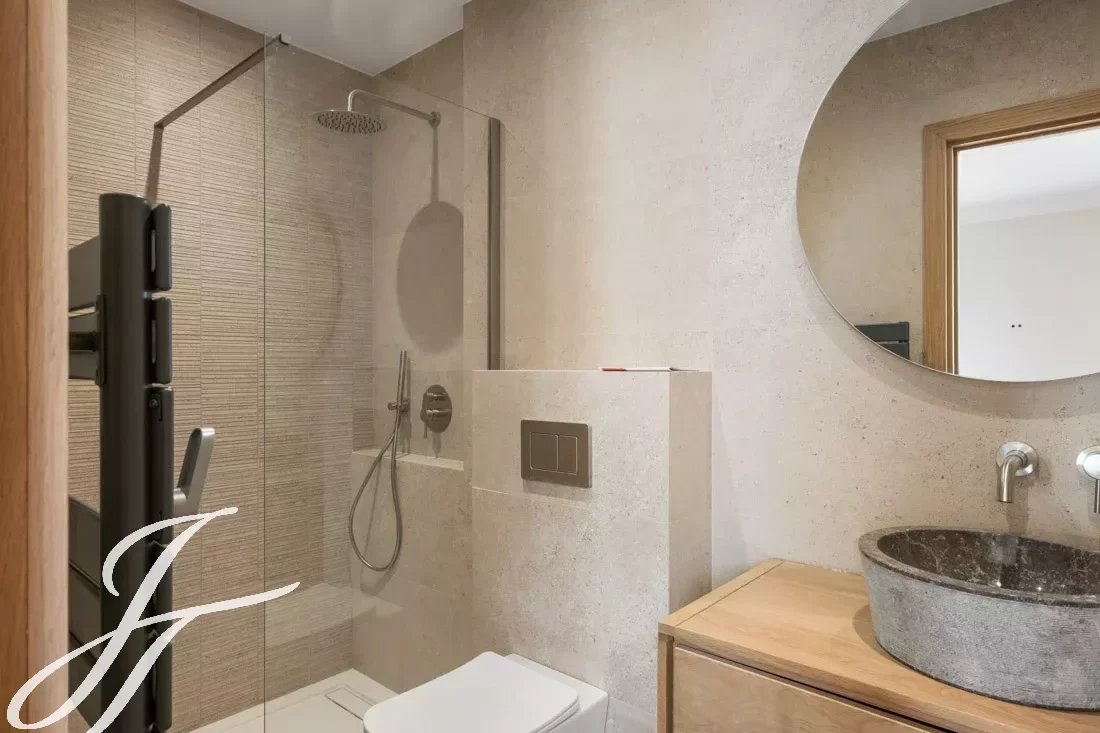Duše této nemovitosti spočívá ve výběru ušlechtilých a nadčasových materiálů: burgundský kámen, masivní parkety a stěny zdobené vápennými malbami. Každý detail byl promyšlen tak, aby nabídl harmonické prostředí, kde se pohodlí a estetika setkávají s elegancí.