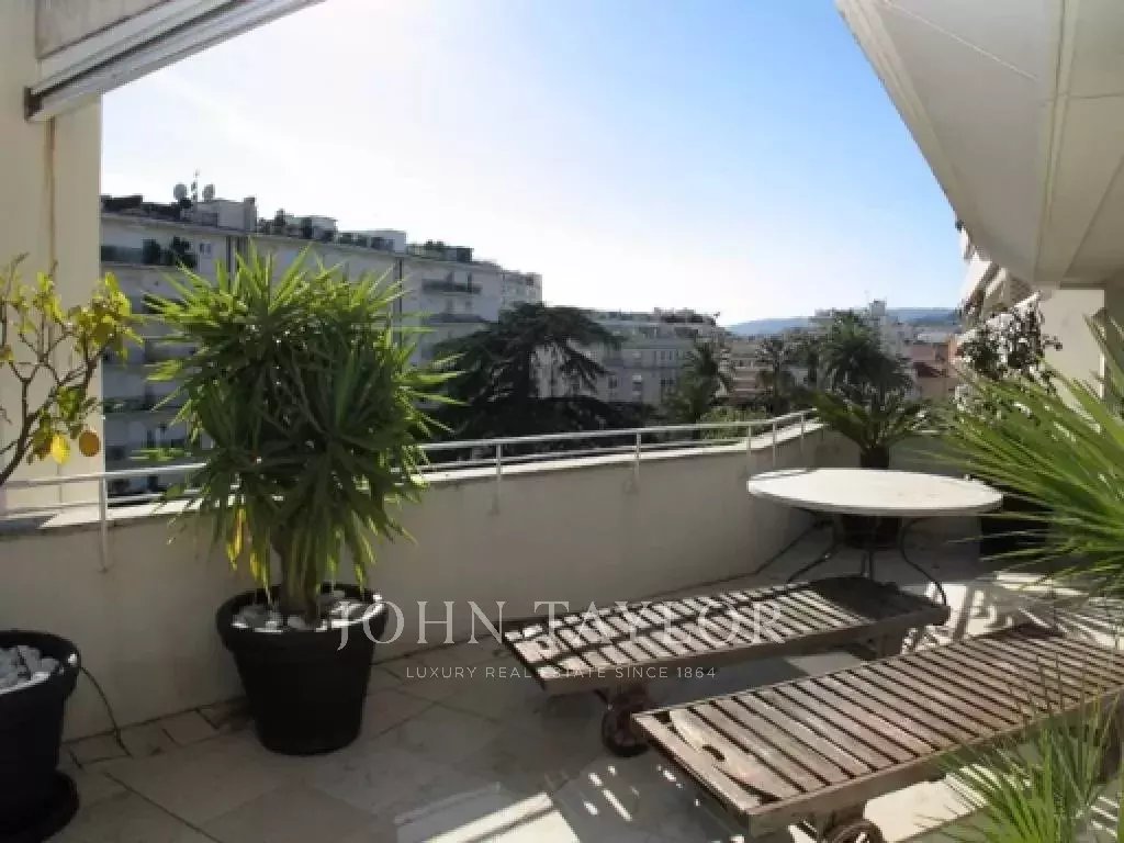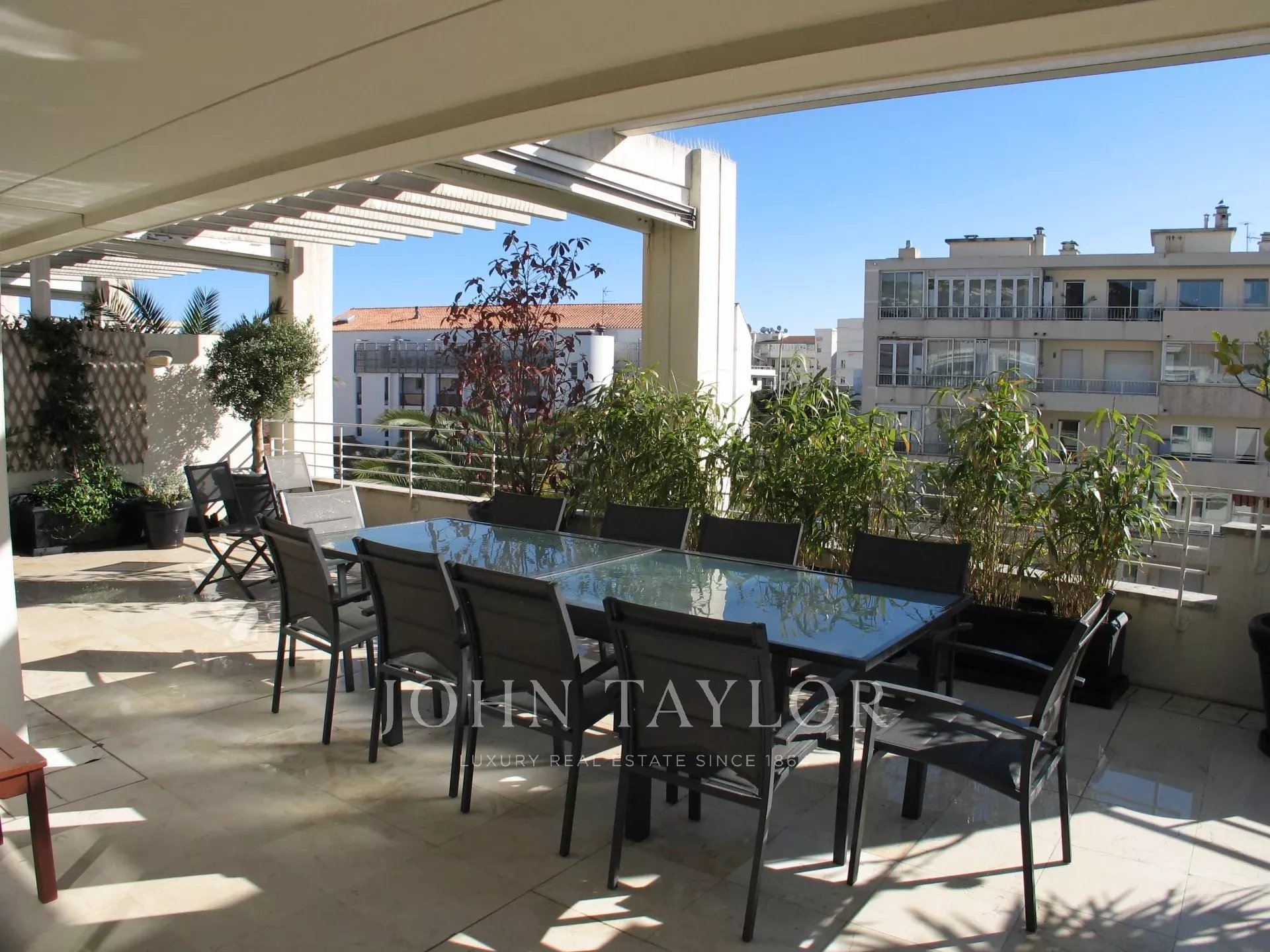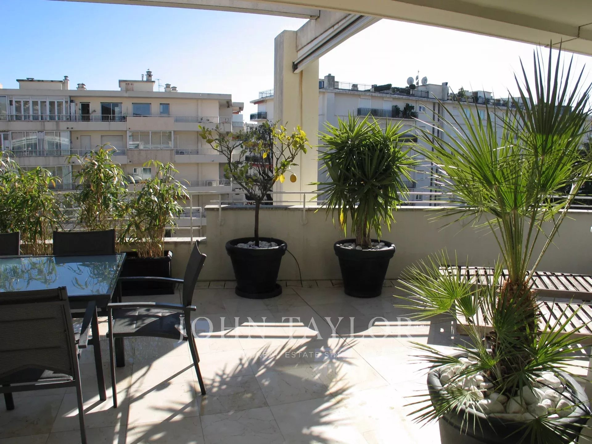 Krásný, plně klimatizovaný mezonetový byt v 6. a posledním patře rezidence v centru Cannes, v těsné blízkosti Croisette a pláží, nedaleko Palais des Festivals.