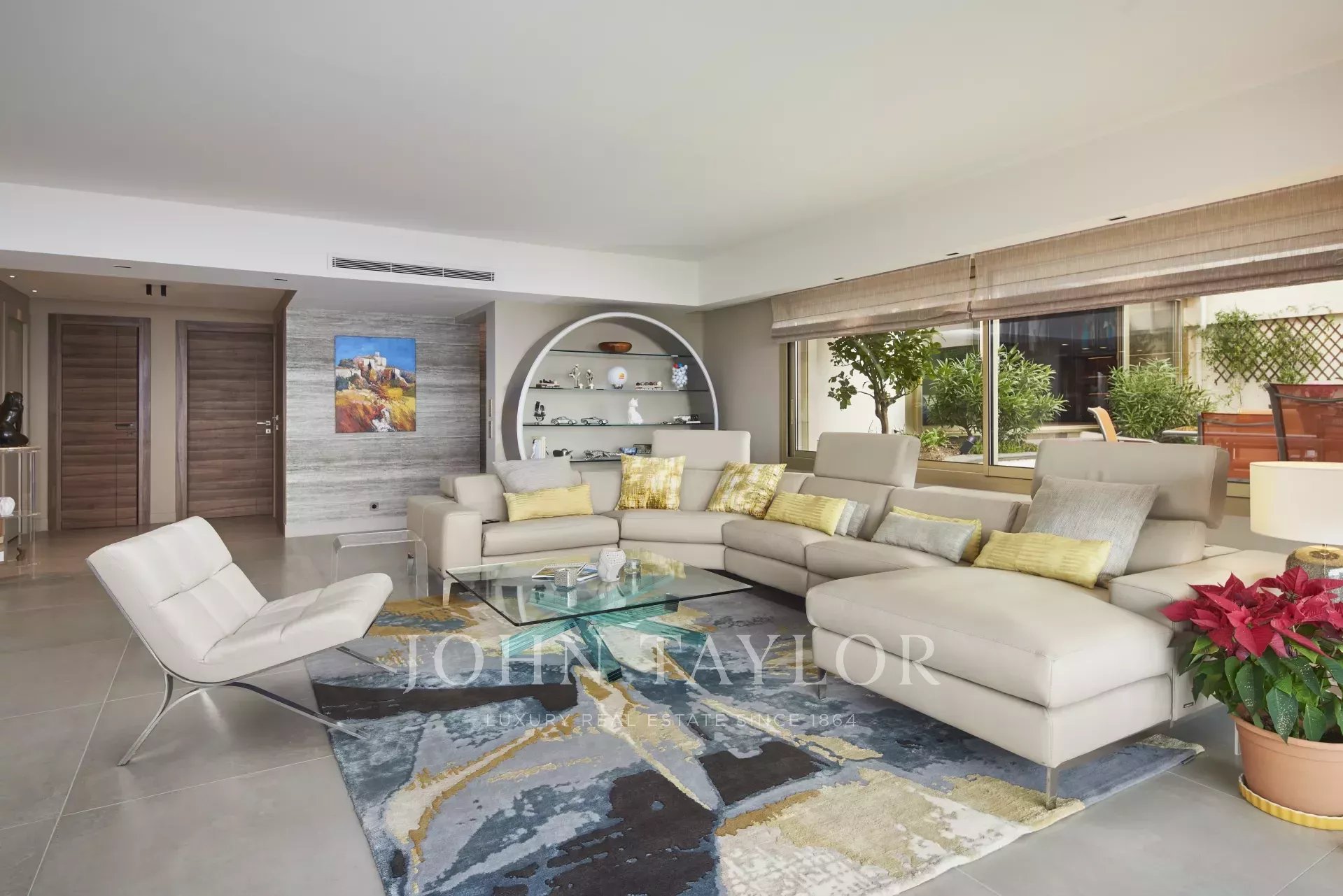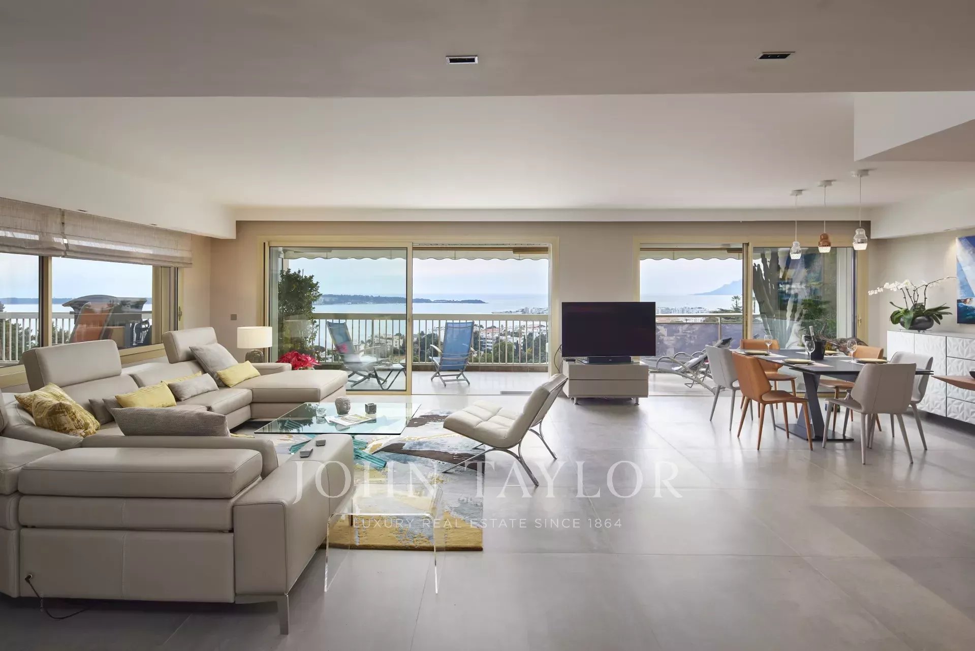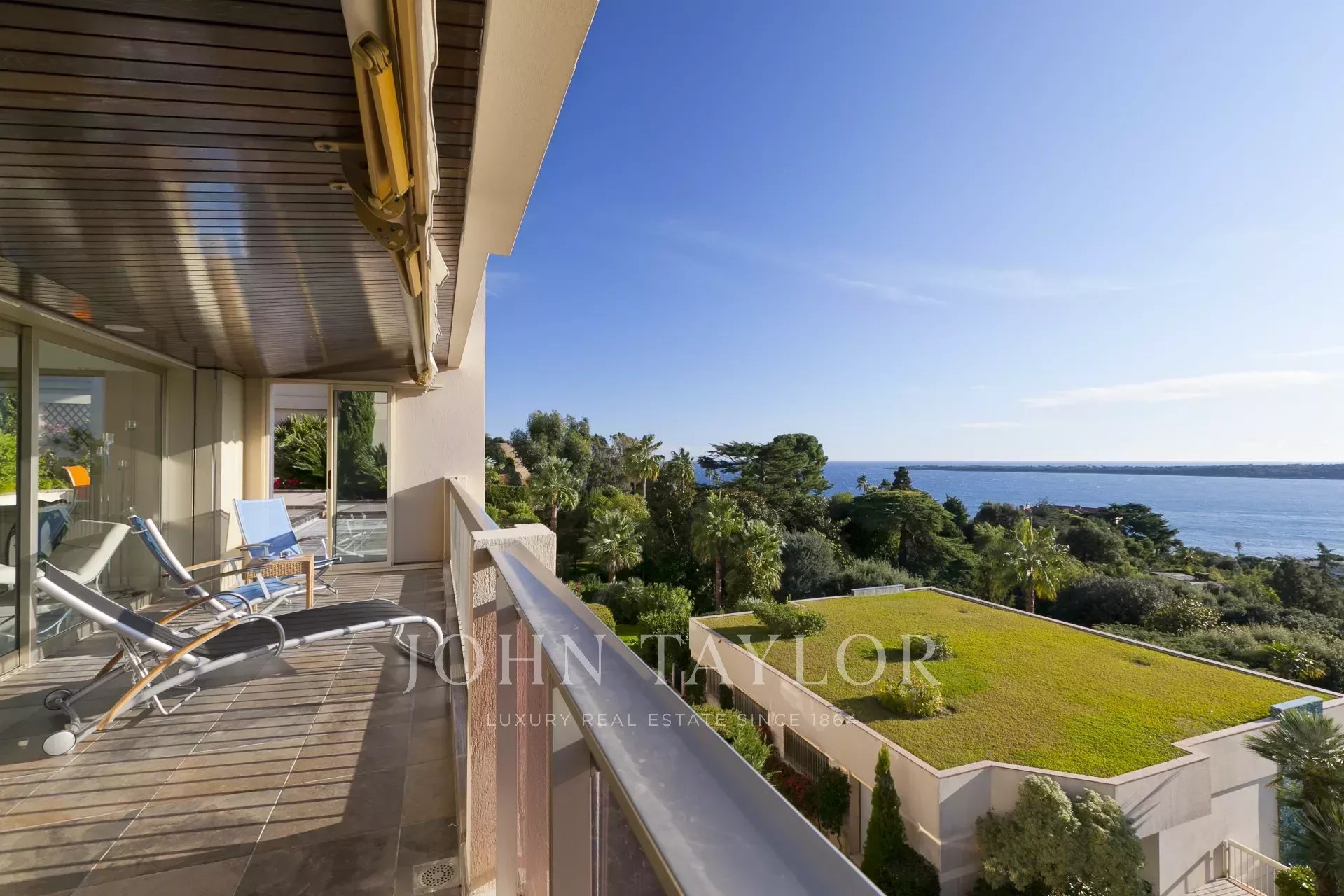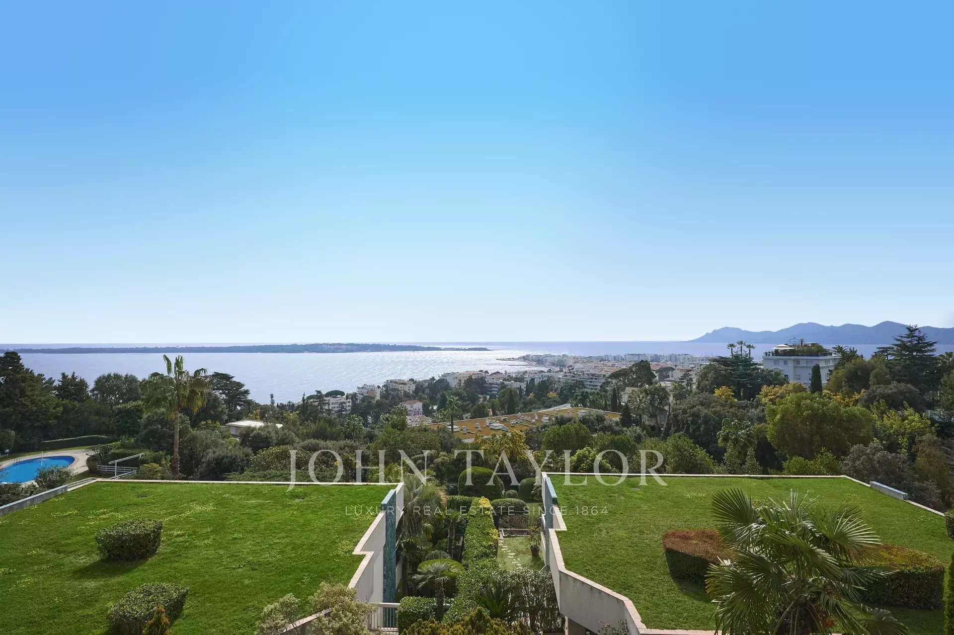 Tento krásný, plně klimatizovaný byt v luxusní rezidenci na výšinách Cannes ve čtvrti Basse Californie nabízí obytnou plochu 180 m2, výjimečnou terasu o rozloze 80 m² a nádherný výhled na moře, Lérinsovy ostrovy a Canneský záliv.