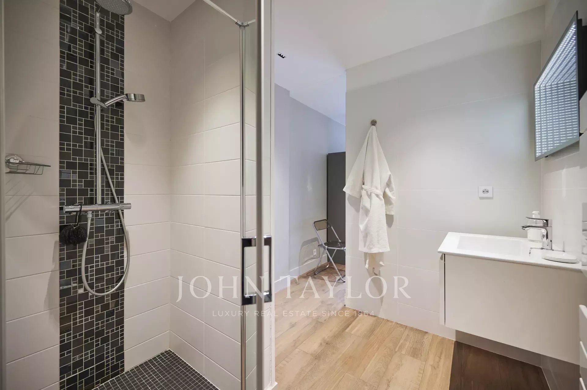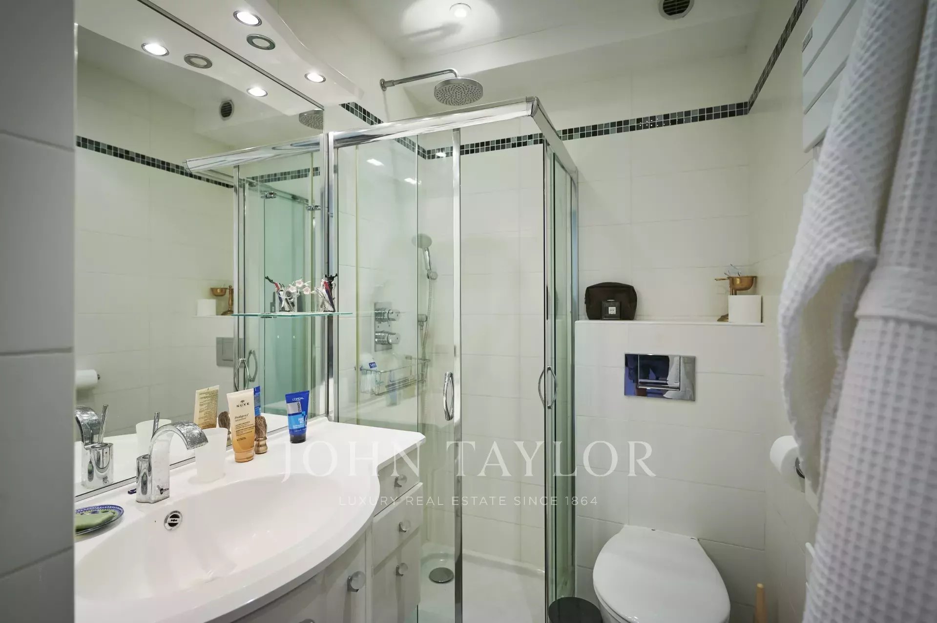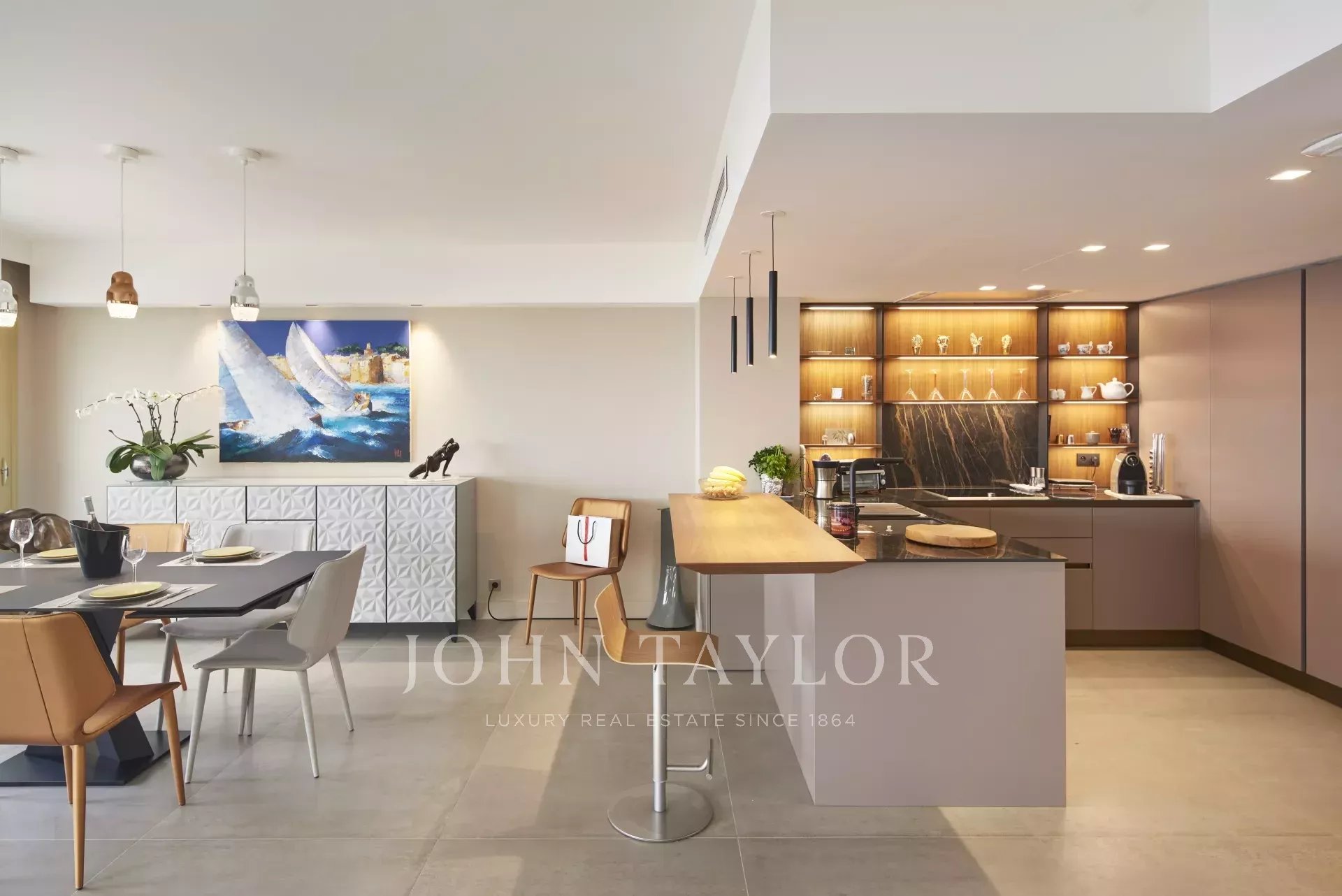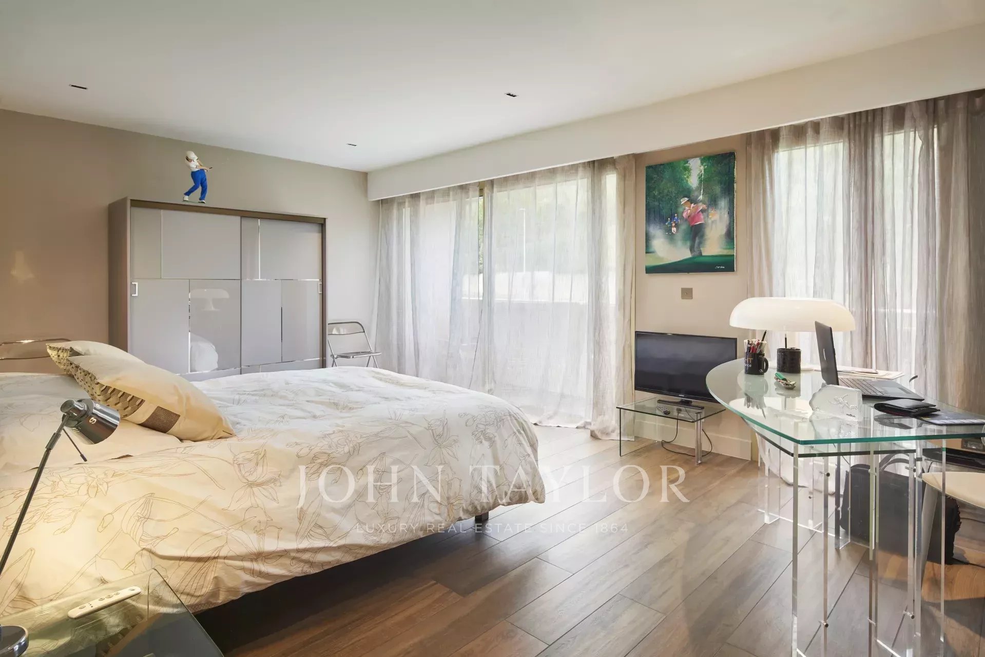 Tento krásný, plně klimatizovaný byt v luxusní rezidenci na výšinách Cannes ve čtvrti Basse Californie nabízí obytnou plochu 180 m2, výjimečnou terasu o rozloze 80 m² a nádherný výhled na moře, Lérinsovy ostrovy a Canneský záliv.