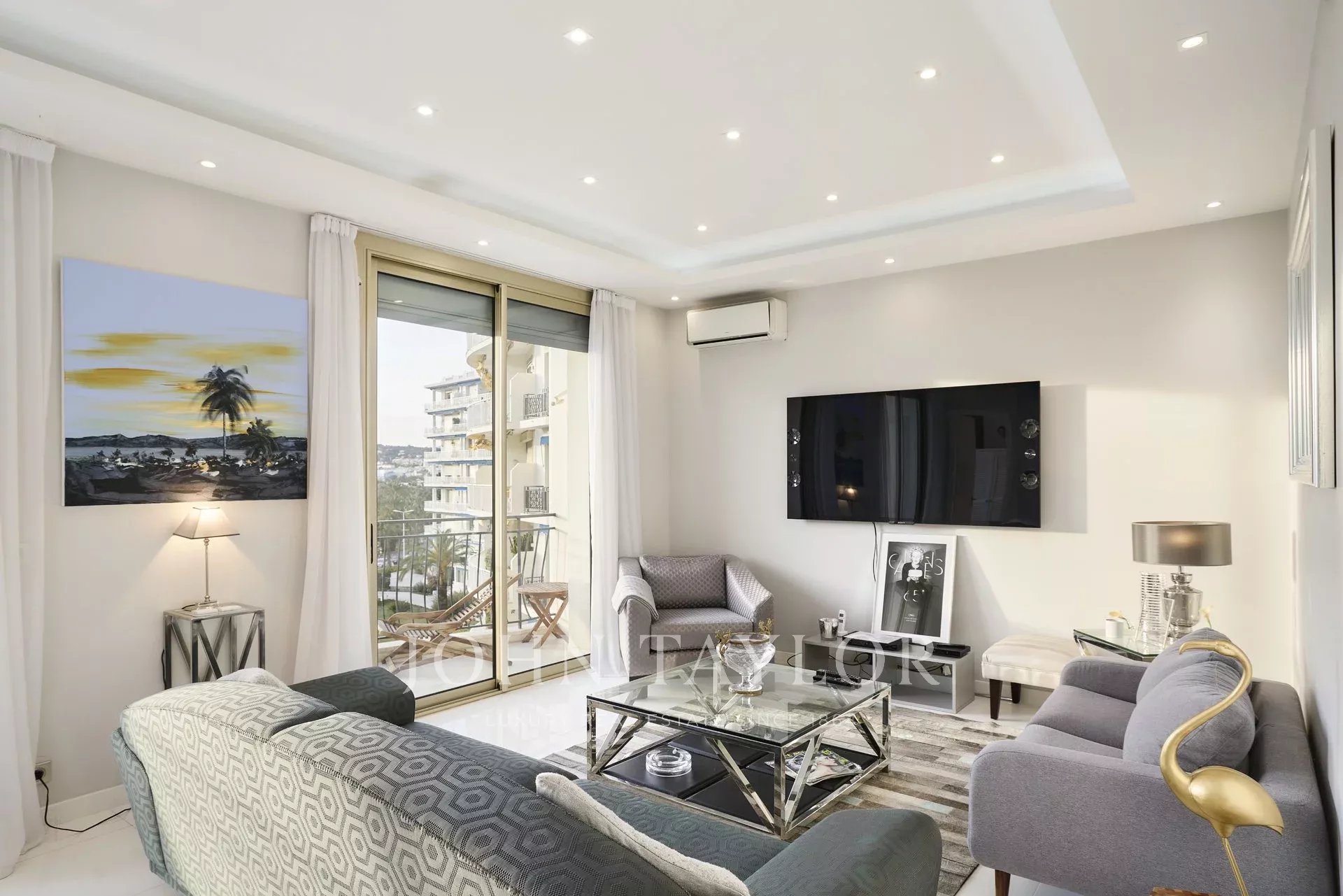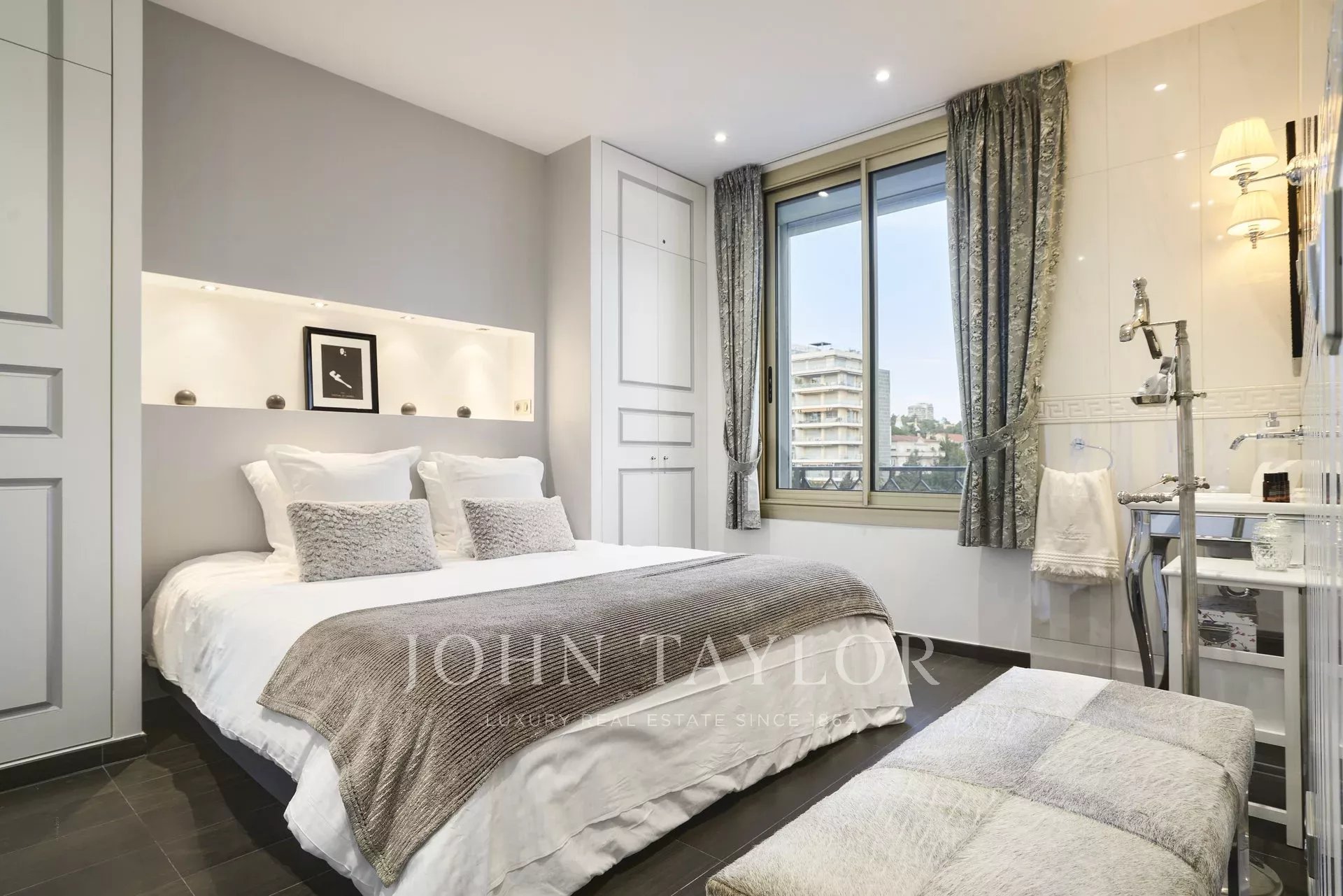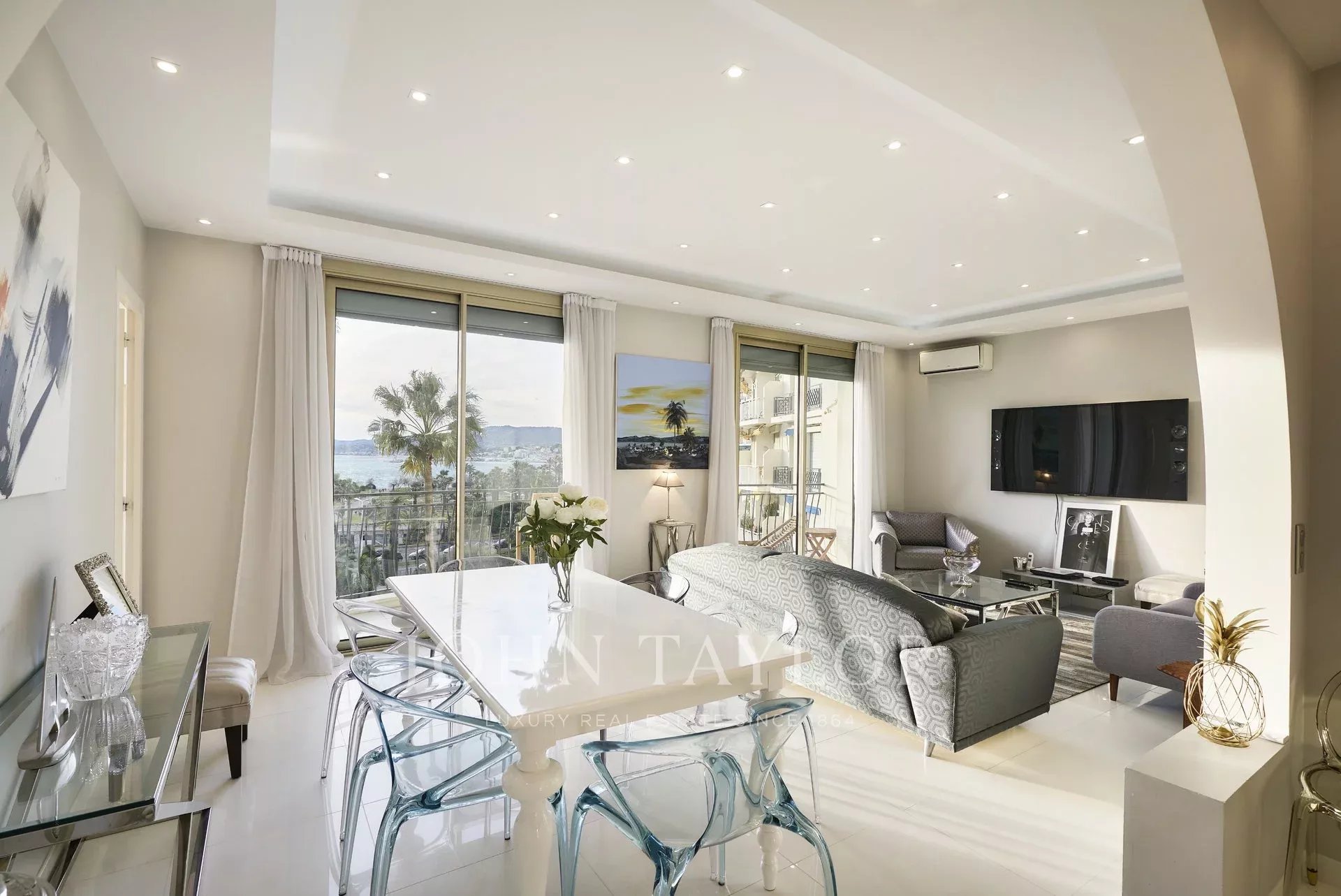 Kompletně zrekonstruovaný klimatizovaný byt o rozloze 113 m2 s výhledem na moře a park, ve 4. patře luxusní rezidence s výhledem na Port Canto.