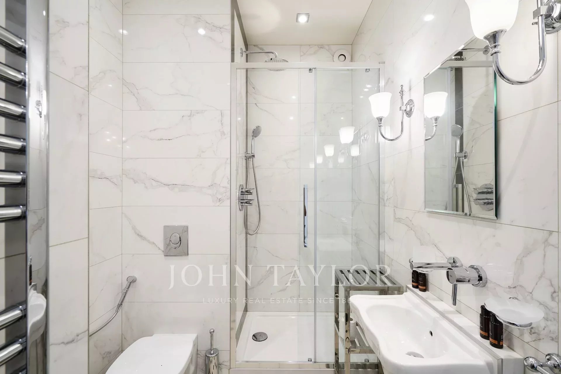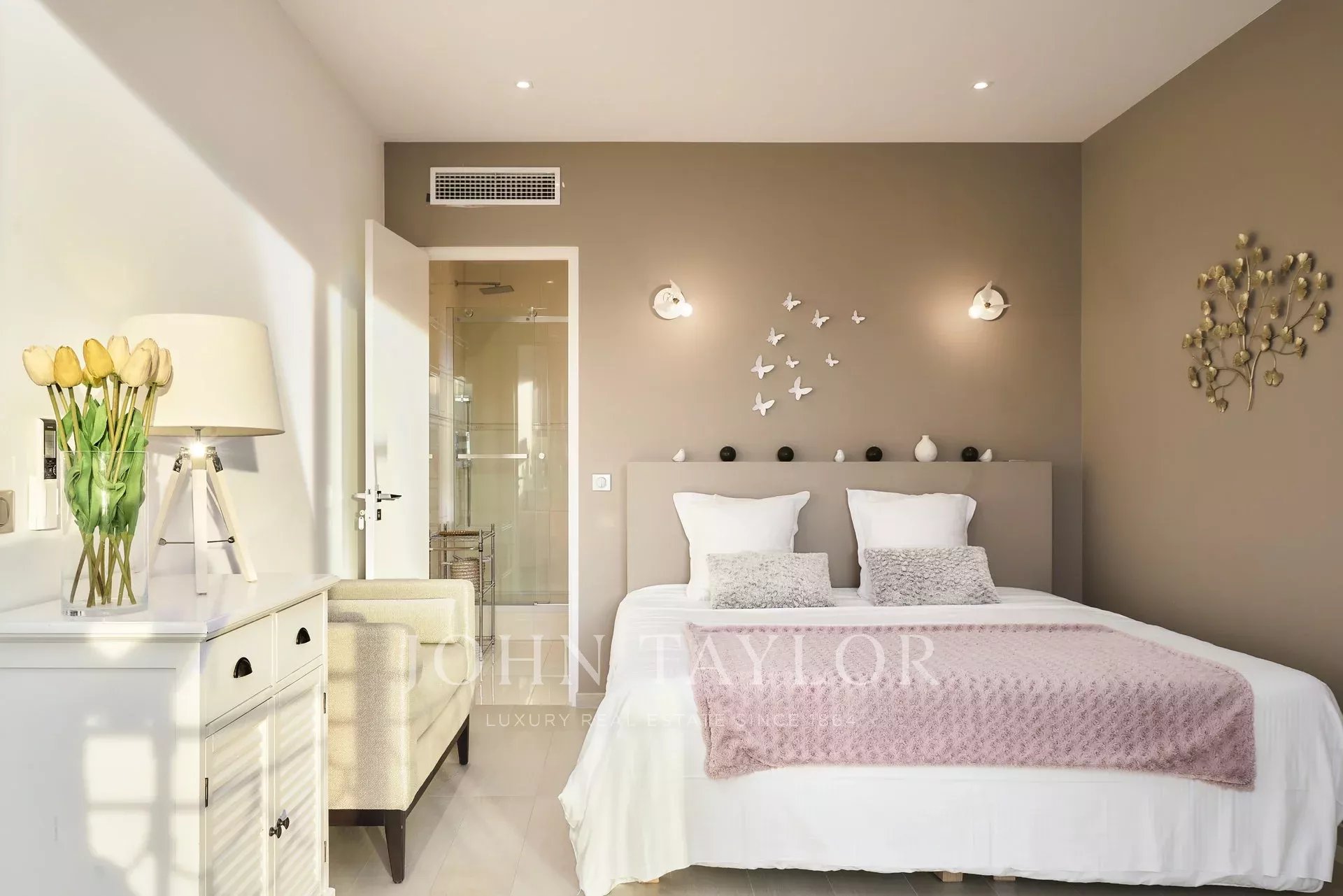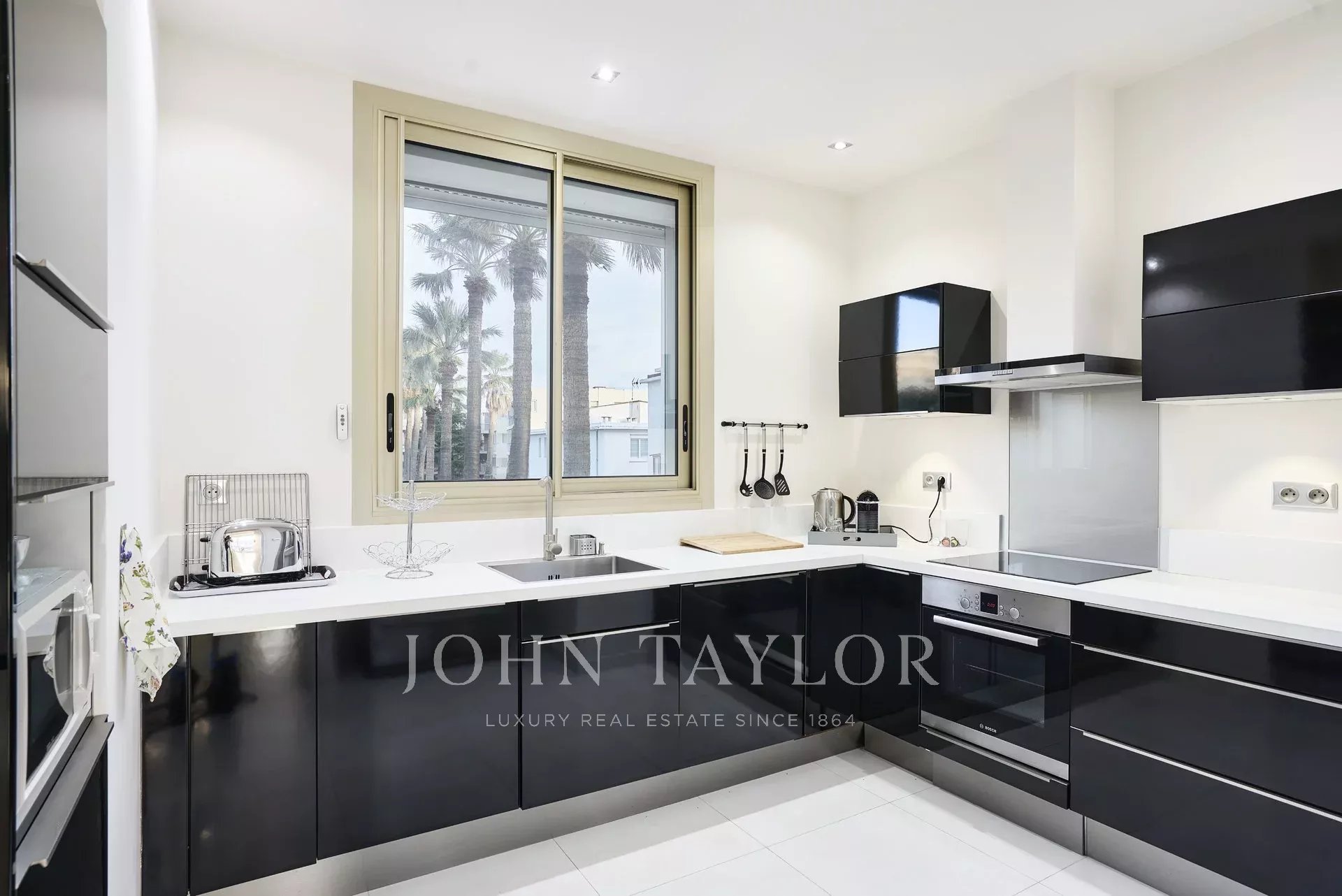 Kompletně zrekonstruovaný klimatizovaný byt o rozloze 113 m2 s výhledem na moře a park, ve 4. patře luxusní rezidence s výhledem na Port Canto.