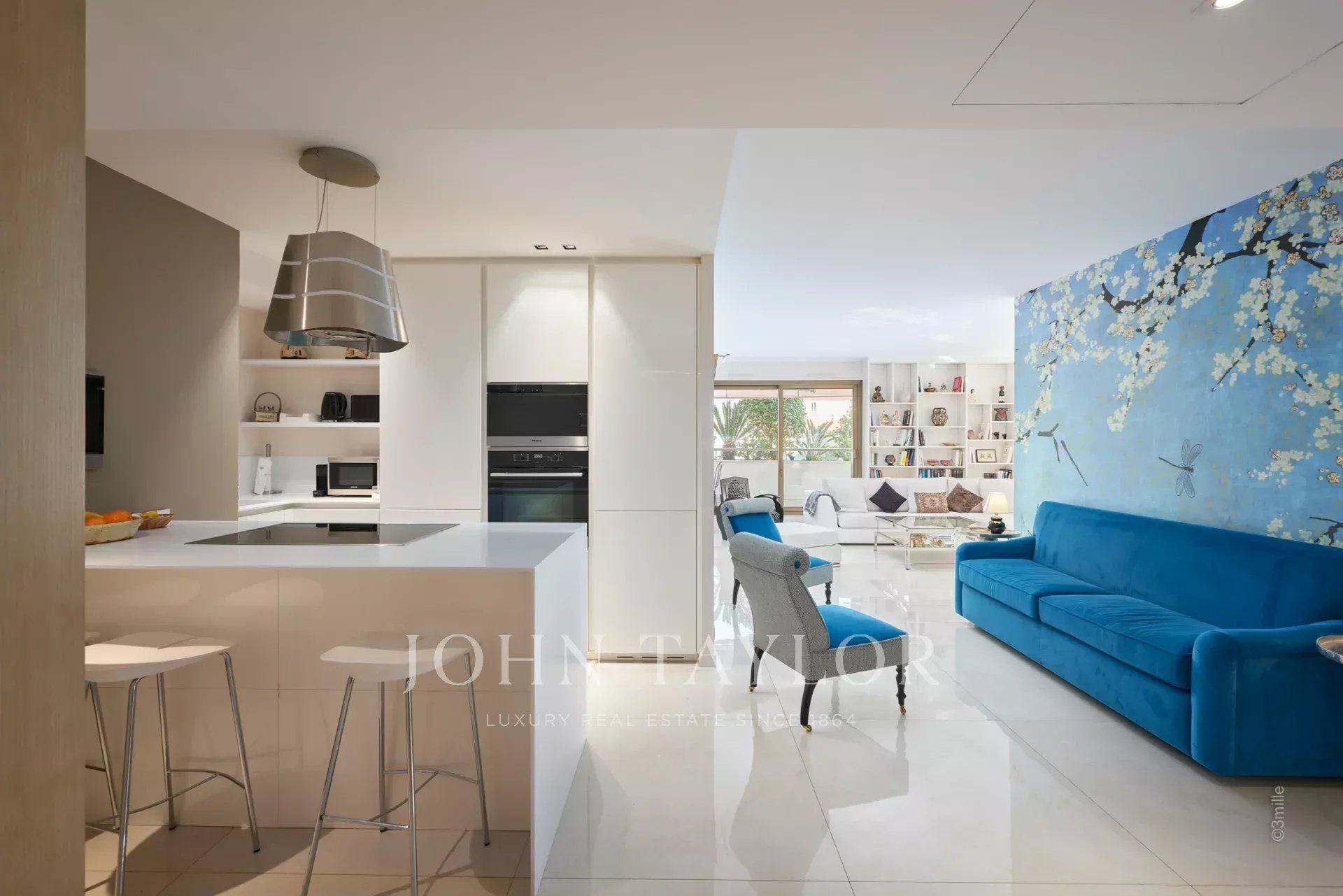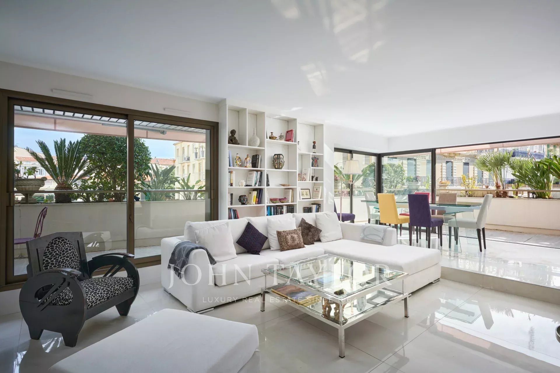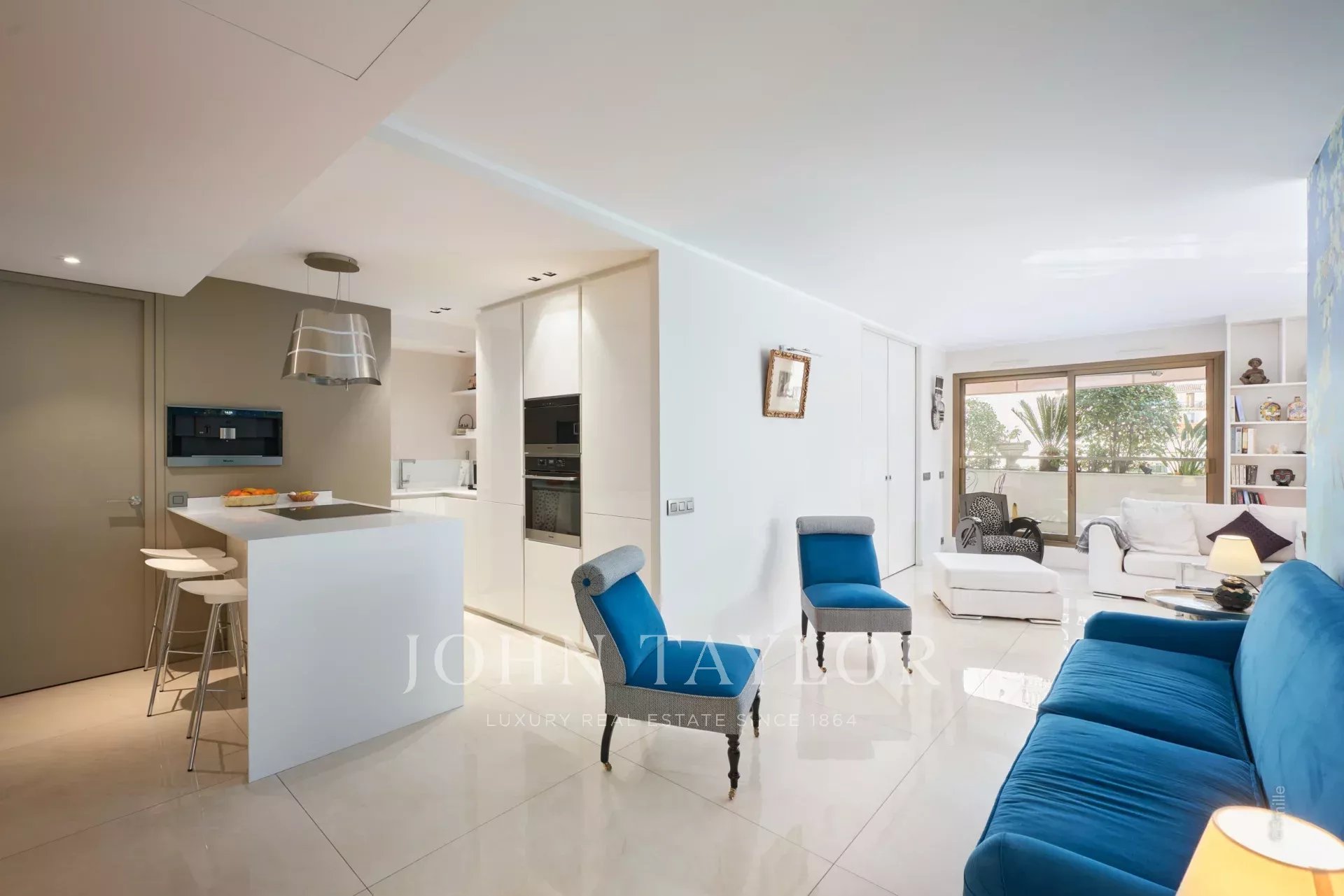 V centru Cannes, v blízkosti Palais des Festivals, luxusní byt o obytné ploše 106 m2, plně zrekonstruovaný a klimatizovaný, s terasou o rozloze 46 m2.