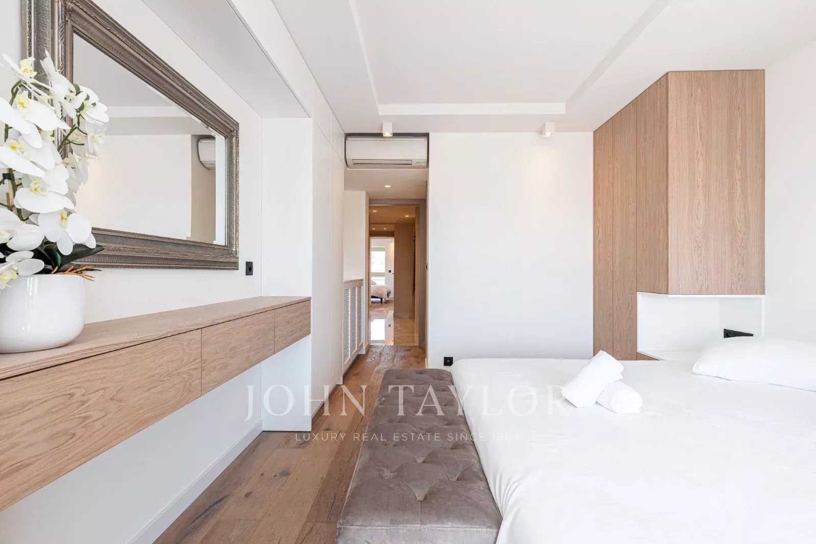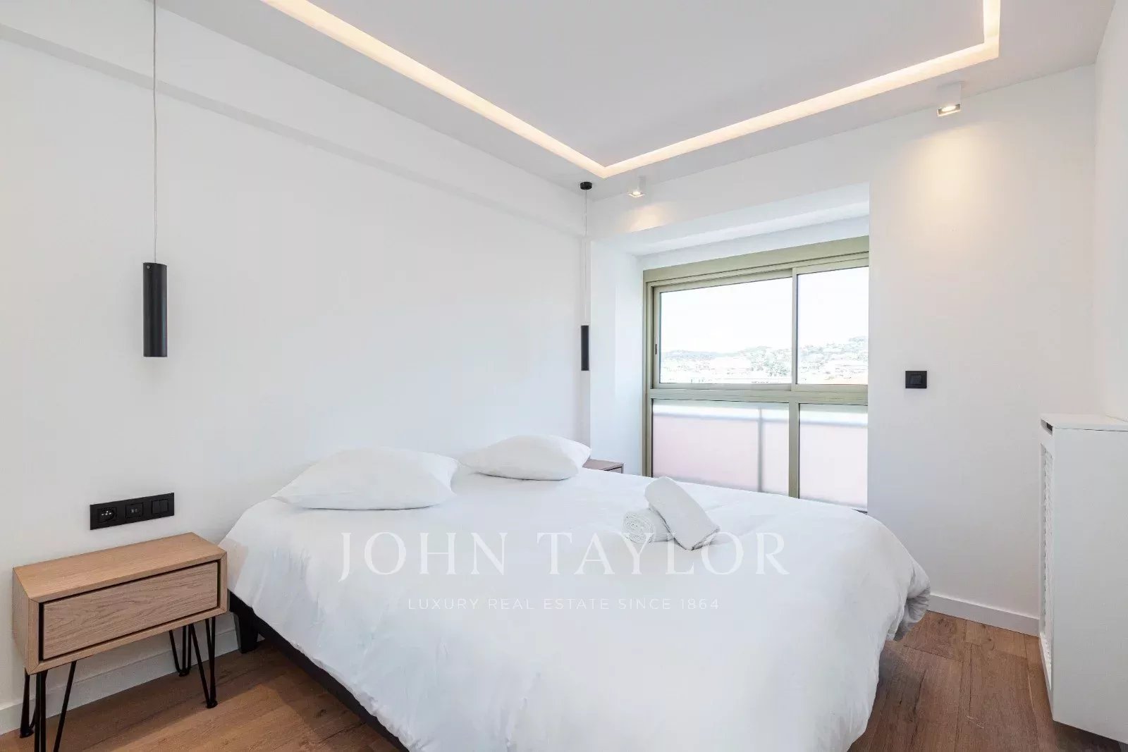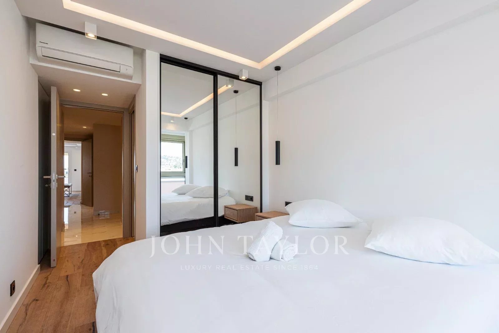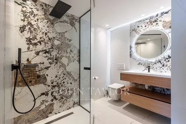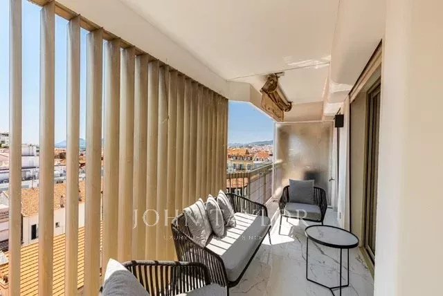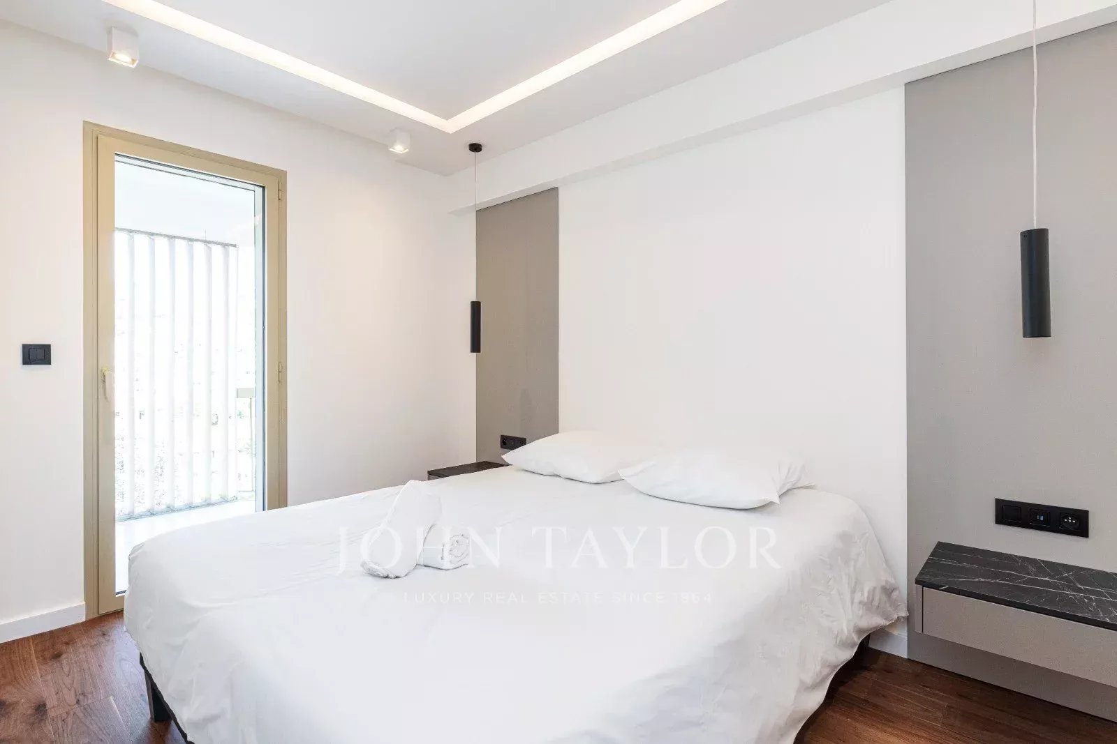 Tento prostorný, moderně zařízený byt se 4 ložnicemi (cca 150 m²), který se nachází v centru Cannes, za ulicí rue de d'Antibes a jen pár kroků od bulváru Croisette, byl kompletně zrekonstruován, zařízen ve vysokém standardu a má terasu.