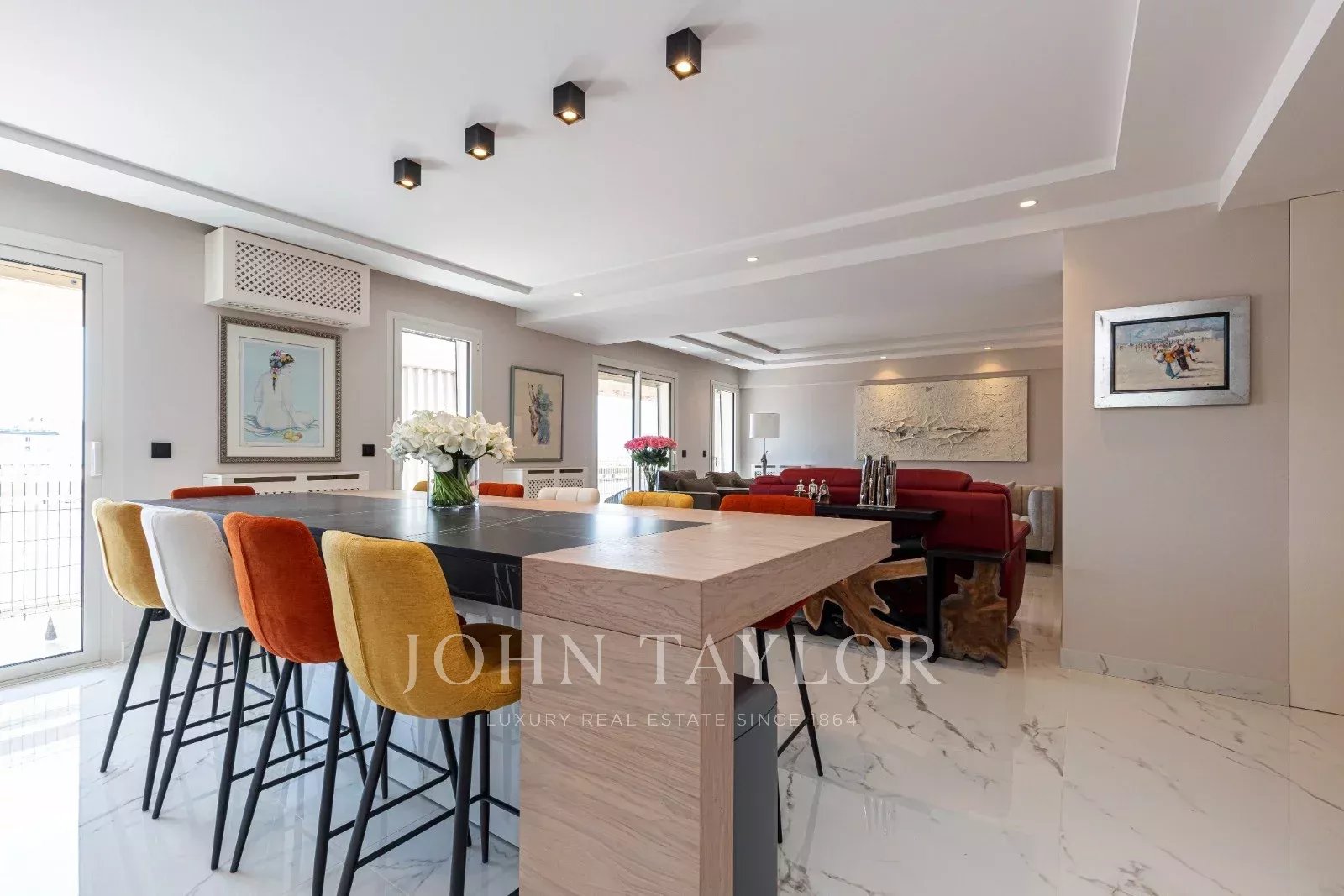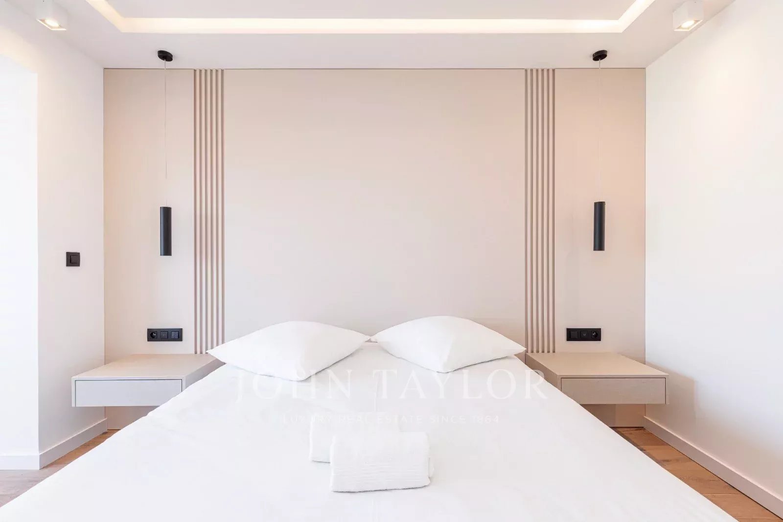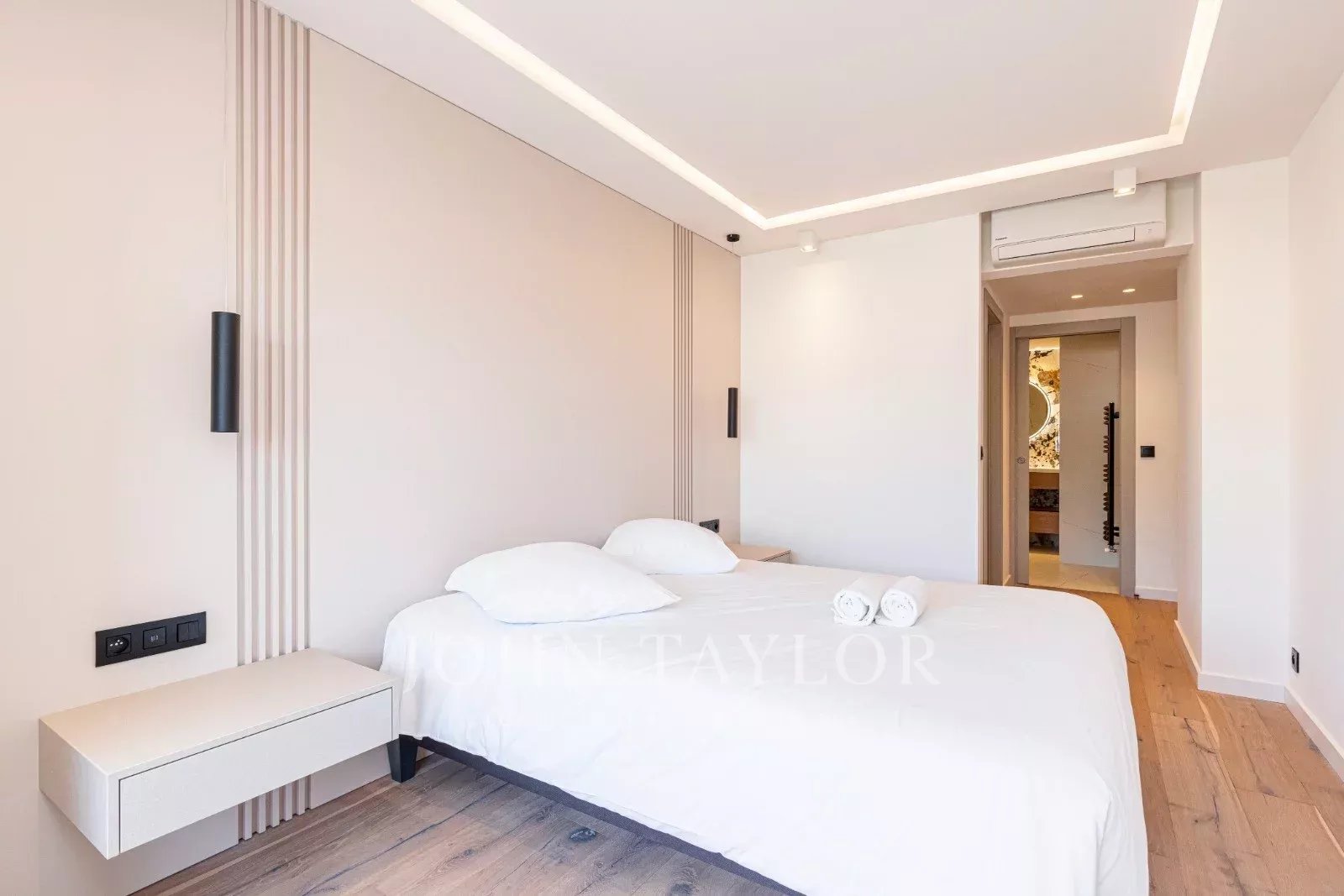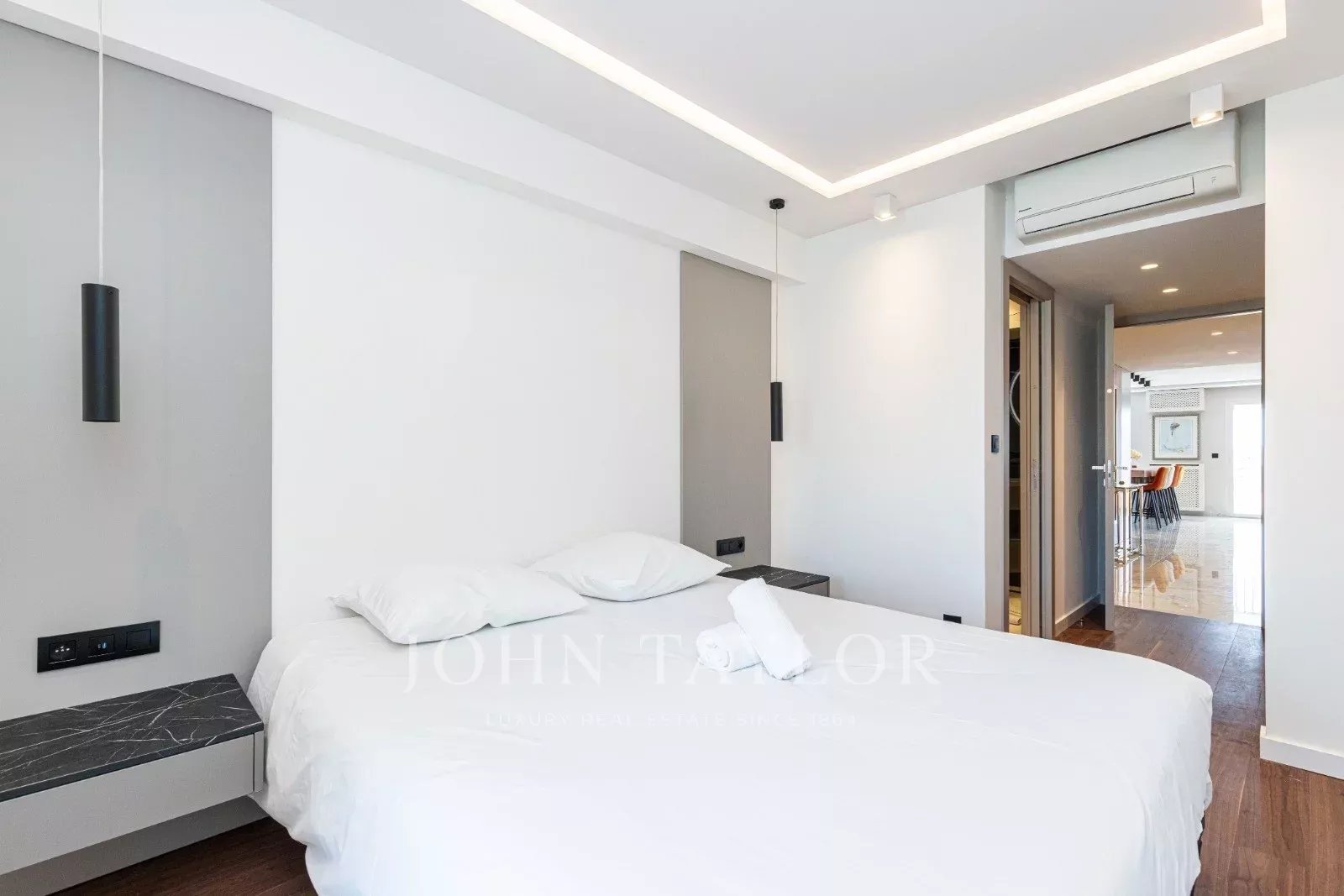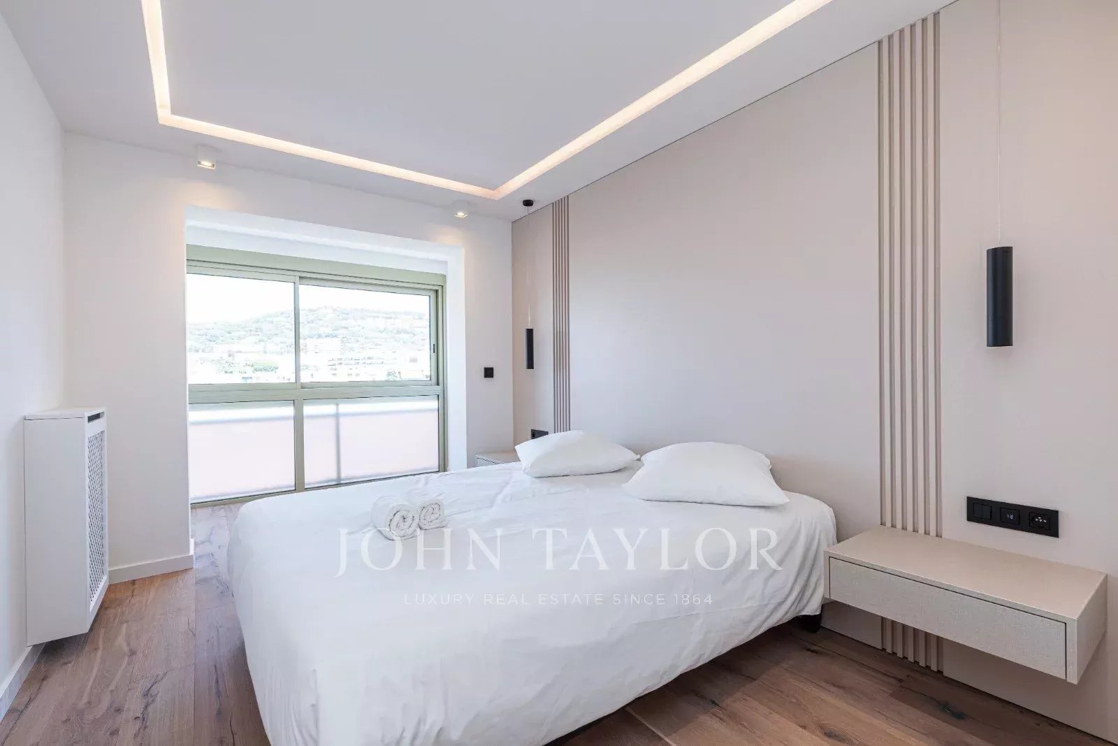 Tento prostorný, moderně zařízený byt se 4 ložnicemi (cca 150 m²), který se nachází v centru Cannes, za ulicí rue de d'Antibes a jen pár kroků od bulváru Croisette, byl kompletně zrekonstruován, zařízen ve vysokém standardu a má terasu.