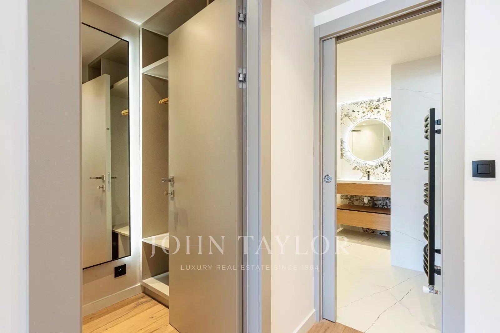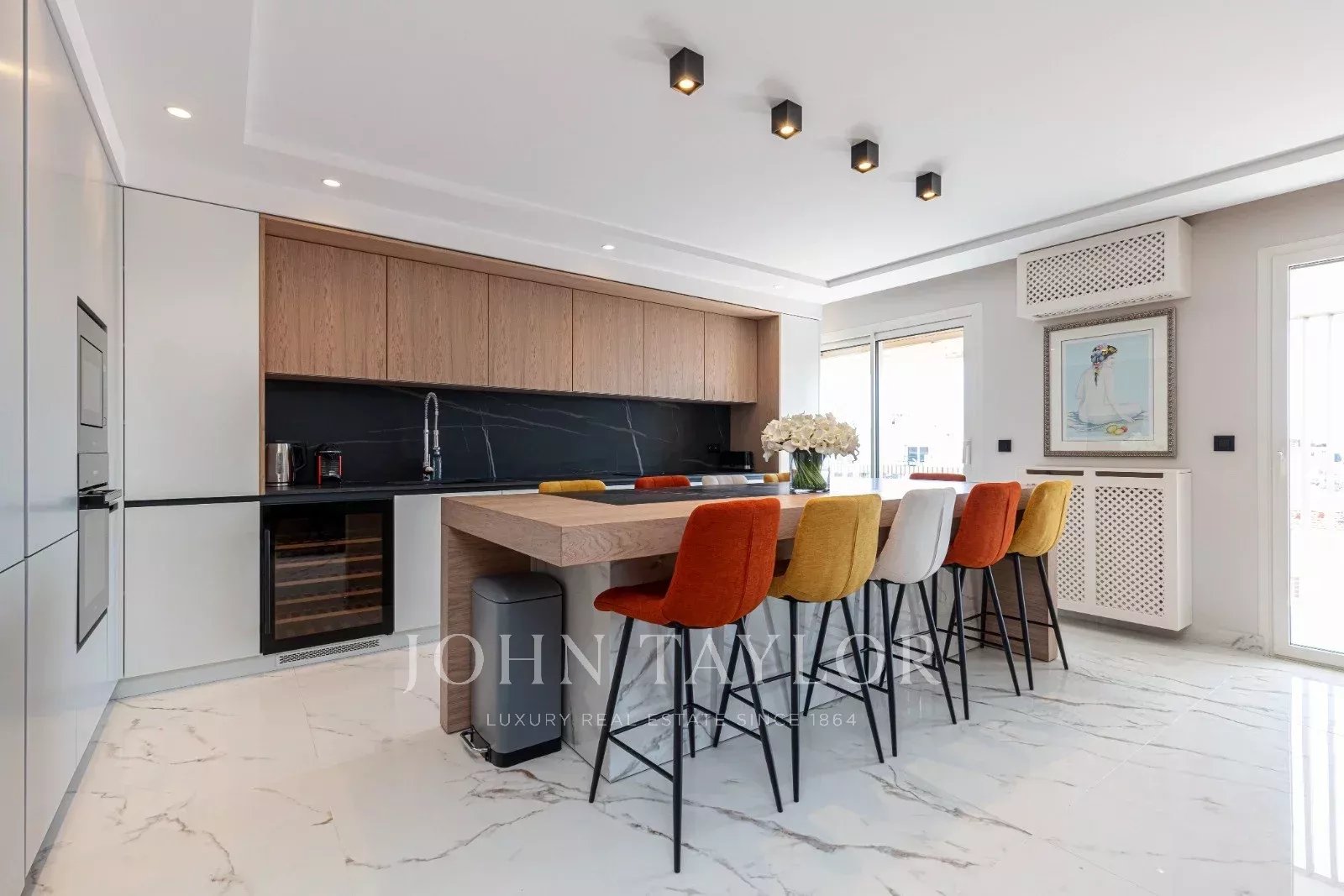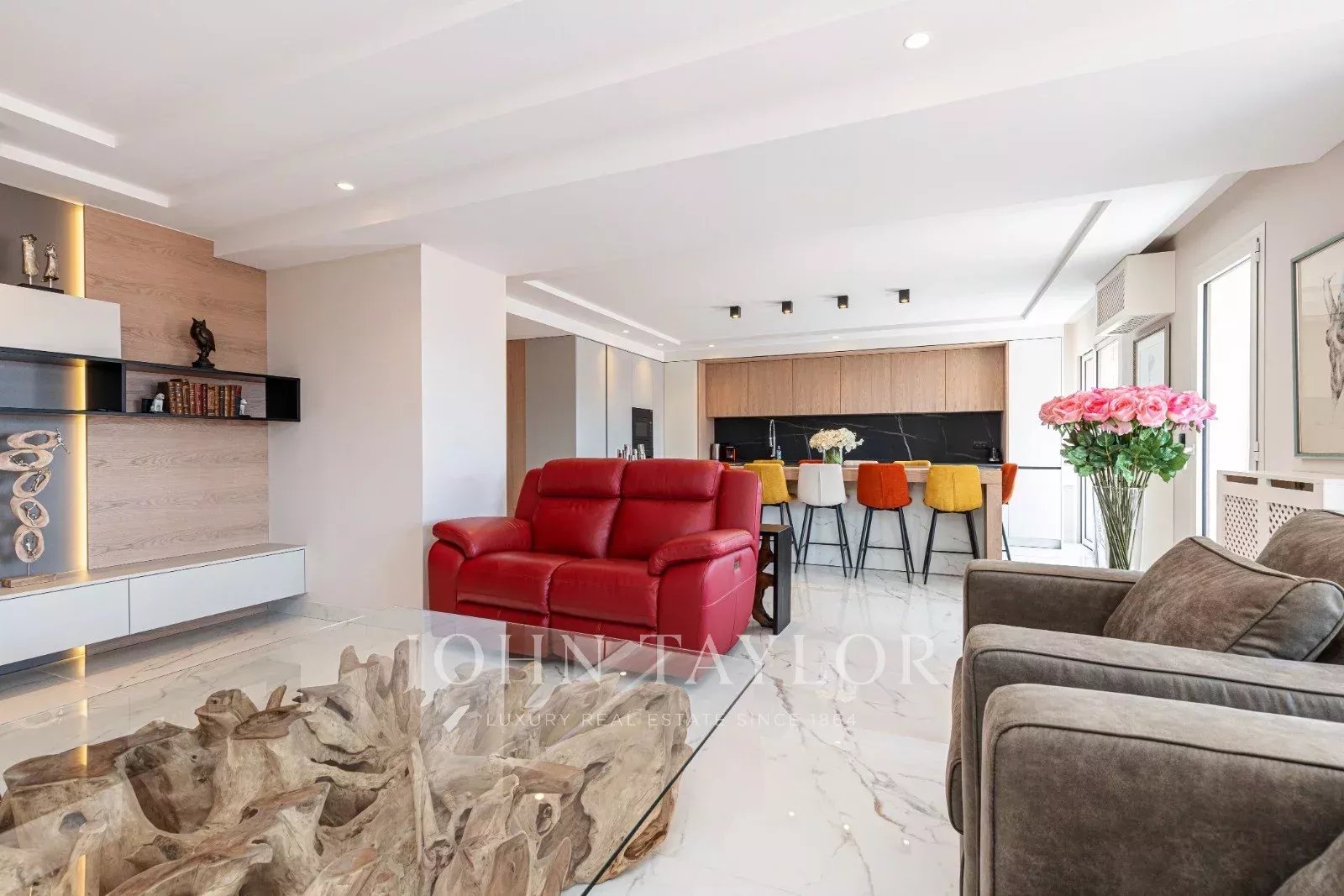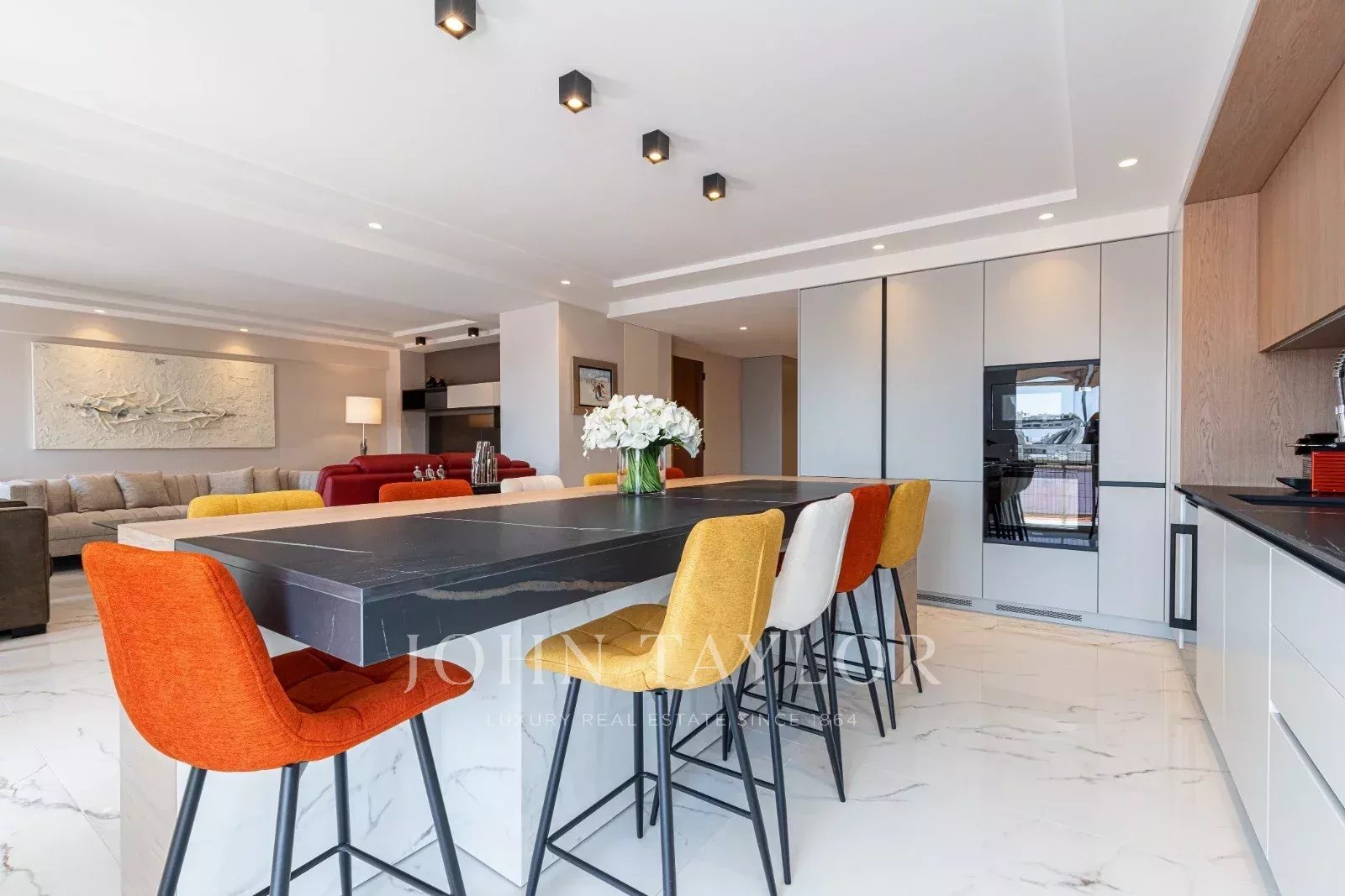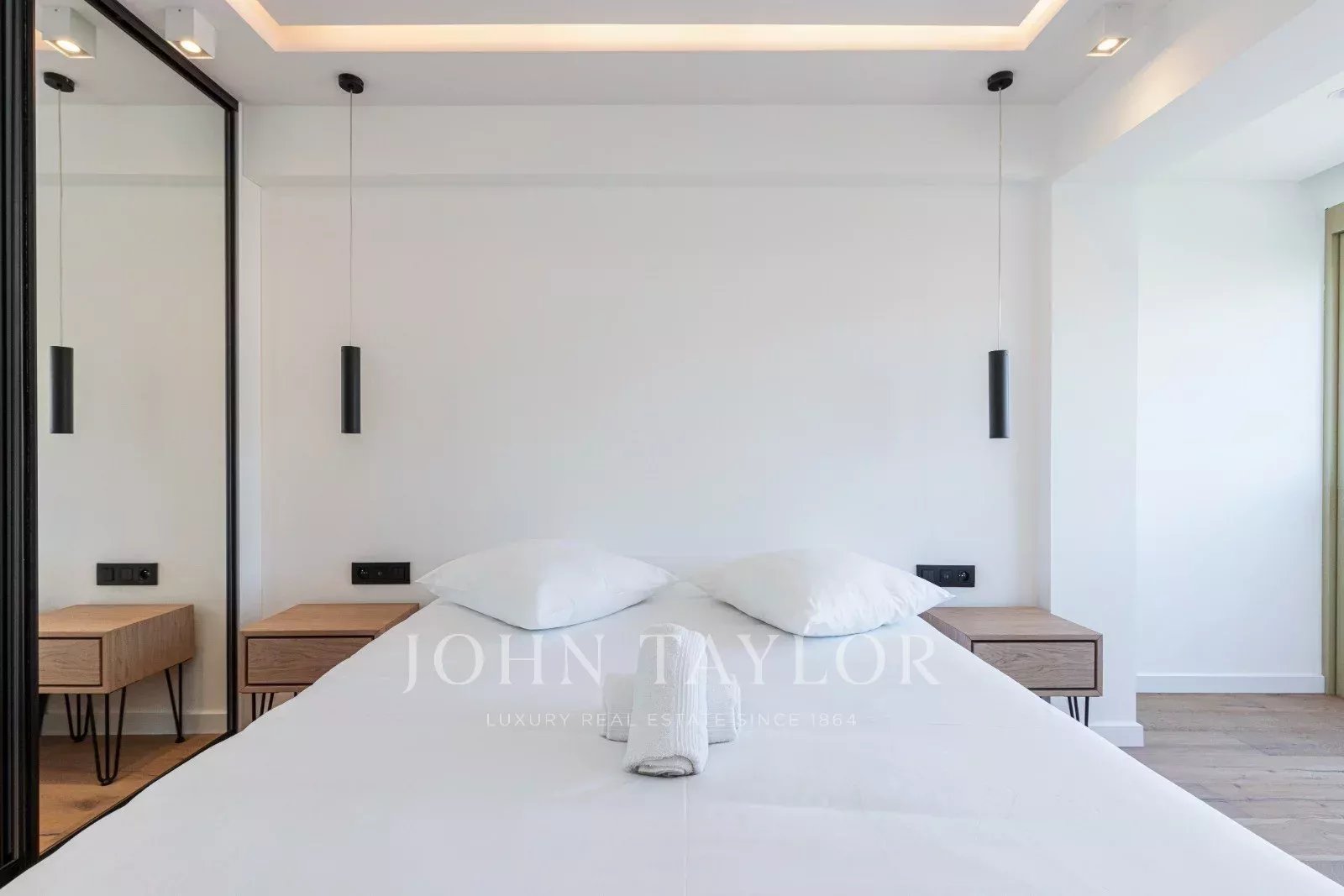 Tento prostorný, moderně zařízený byt se 4 ložnicemi (cca 150 m²), který se nachází v centru Cannes, za ulicí rue de d'Antibes a jen pár kroků od bulváru Croisette, byl kompletně zrekonstruován, zařízen ve vysokém standardu a má terasu.