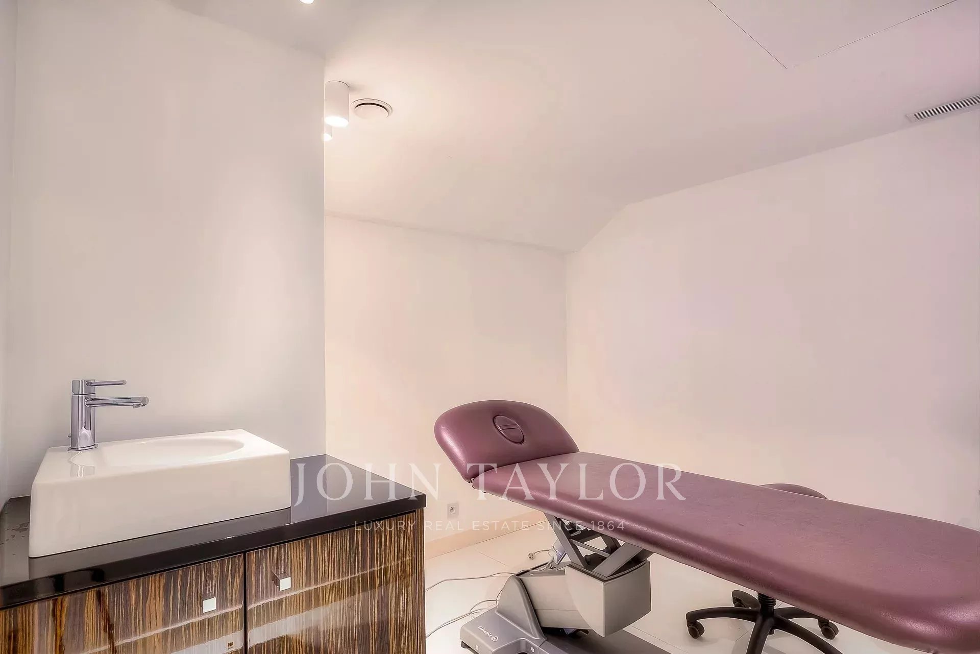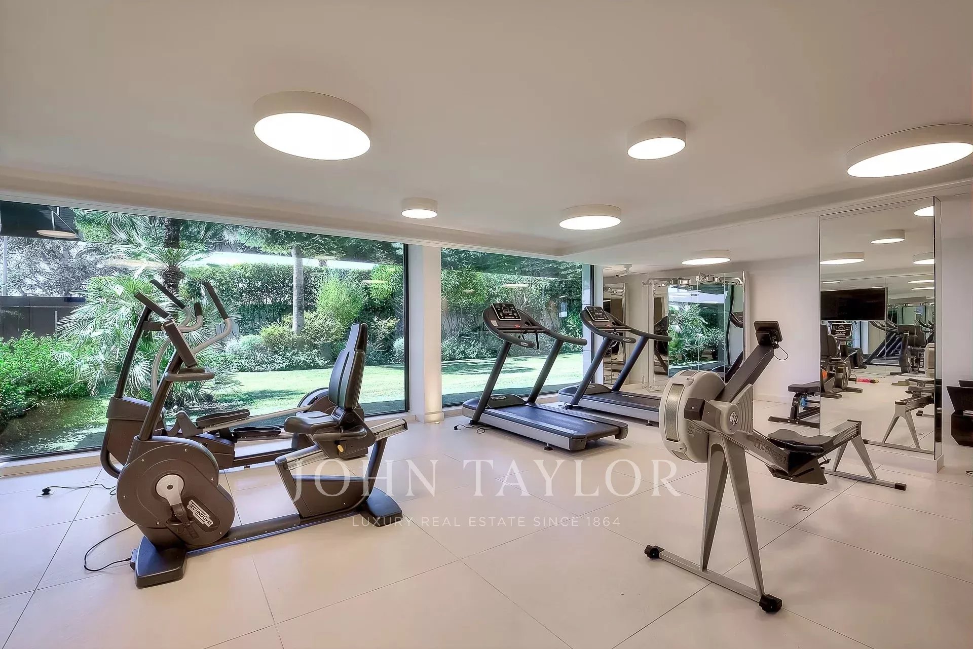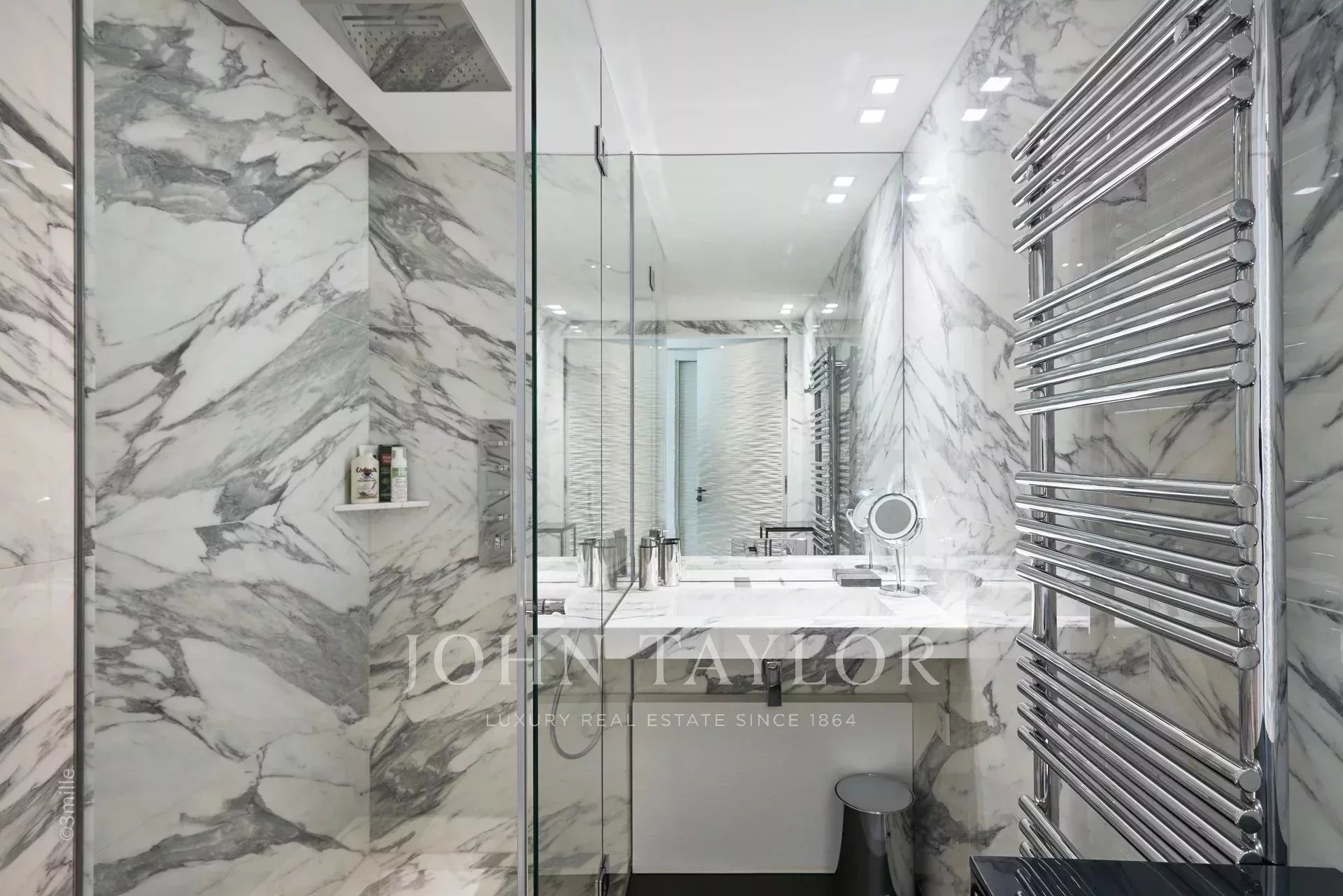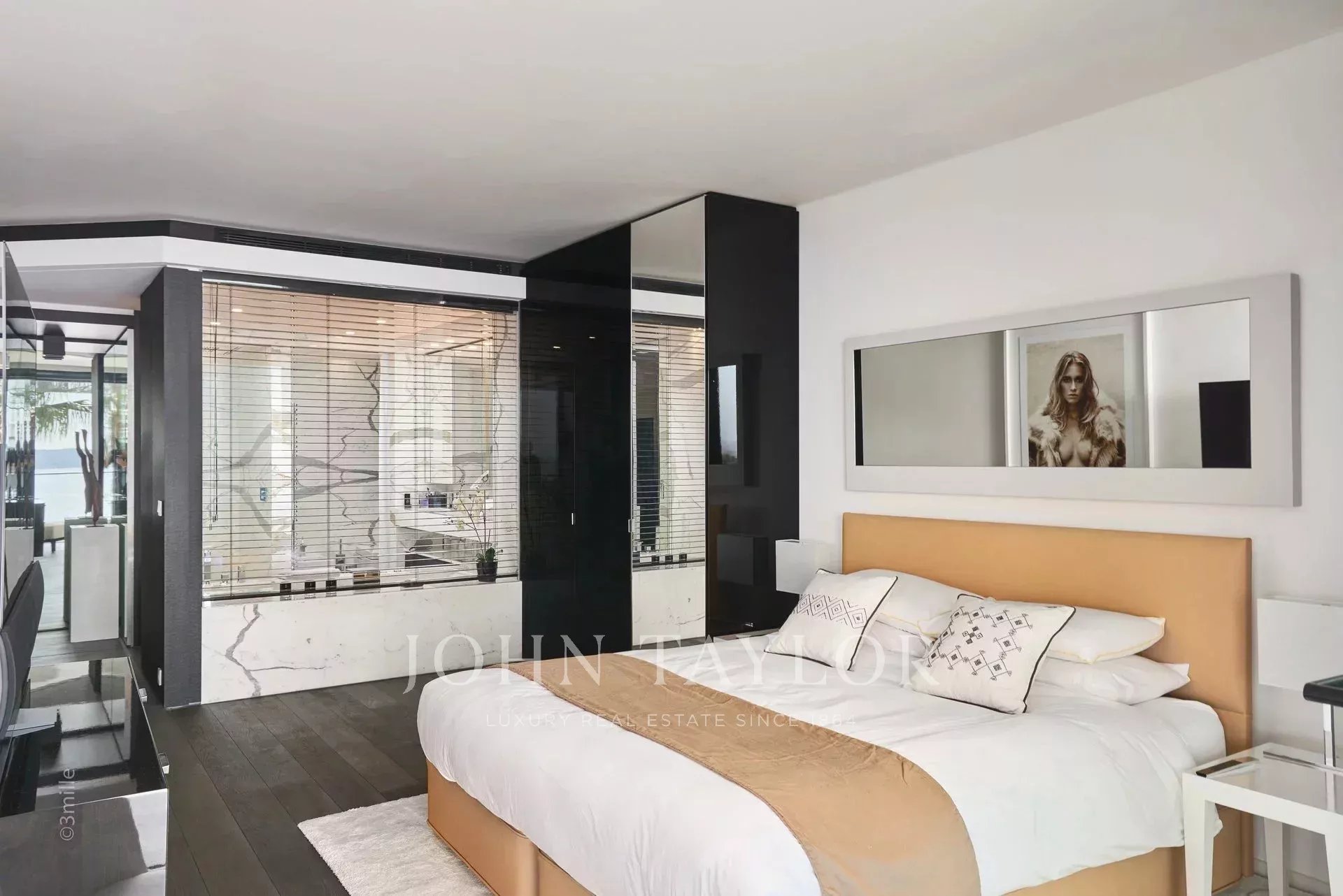 Tento nádherný byt o rozloze 144 m² v nové luxusní rezidenci má velkou a hlubokou terasu o rozloze 54 m². Je orientovaná na jih a nabízí panoramatický výhled na moře a ostrovy Lérins.