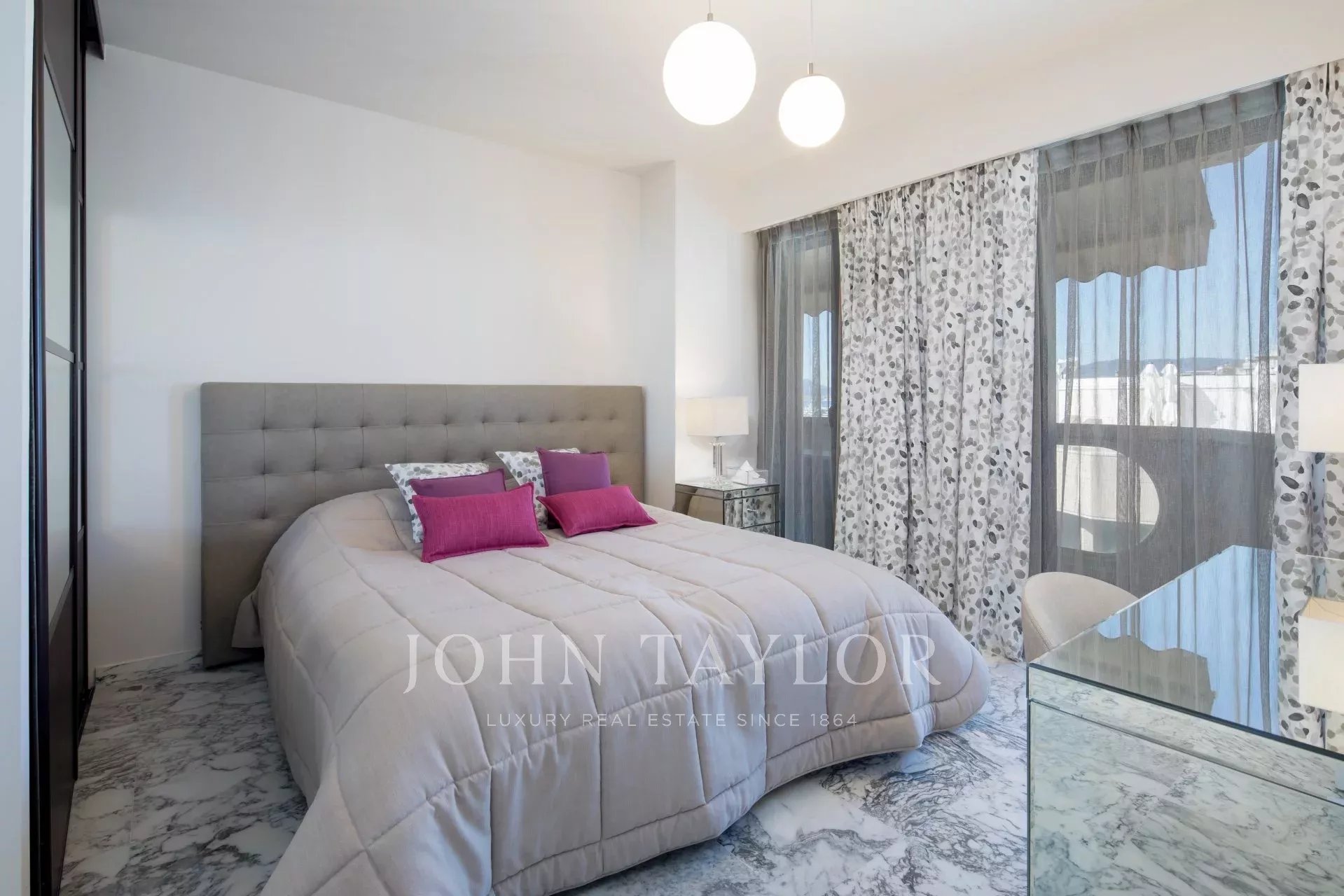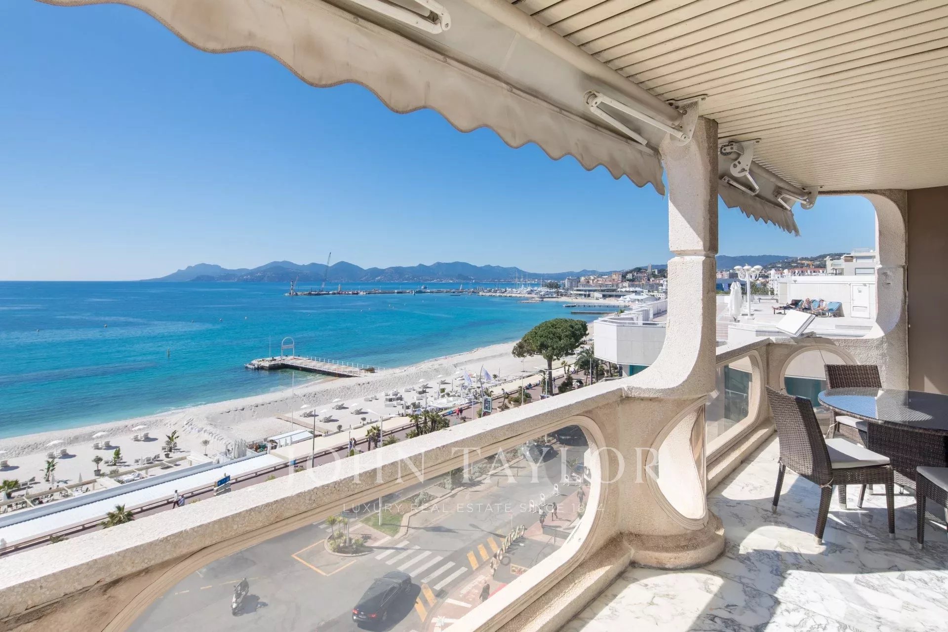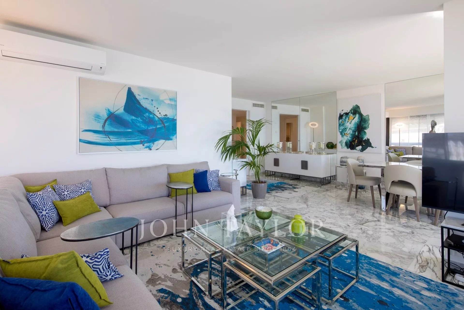 Komfortní 4pokojový byt, kompletně zrekonstruovaný a klimatizovaný, v 6. patře luxusní rezidence na La Croisette mezi hotely Carlton a Marriott. Krásný výhled na moře.