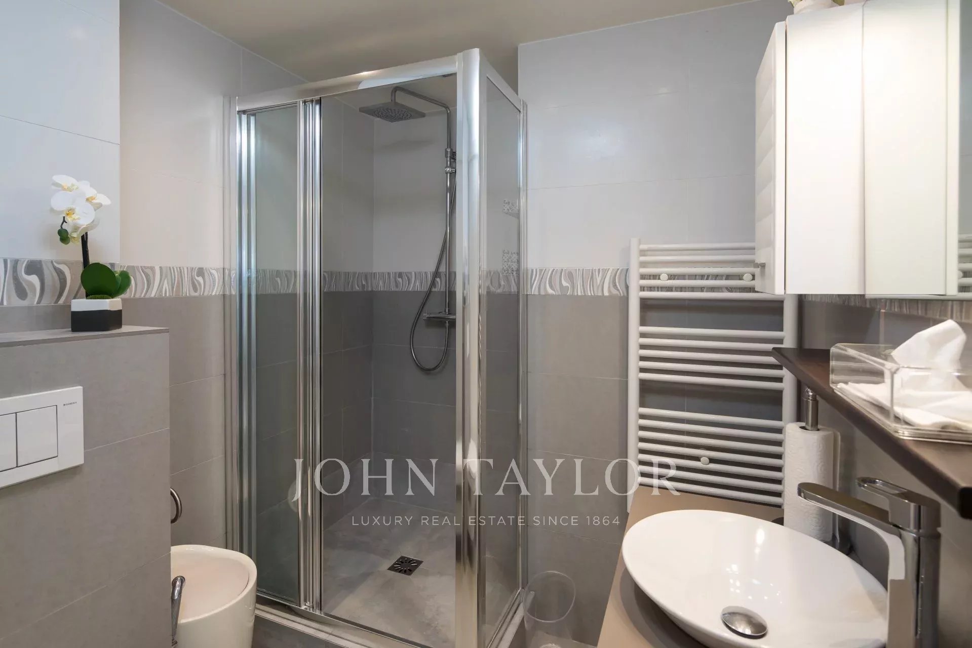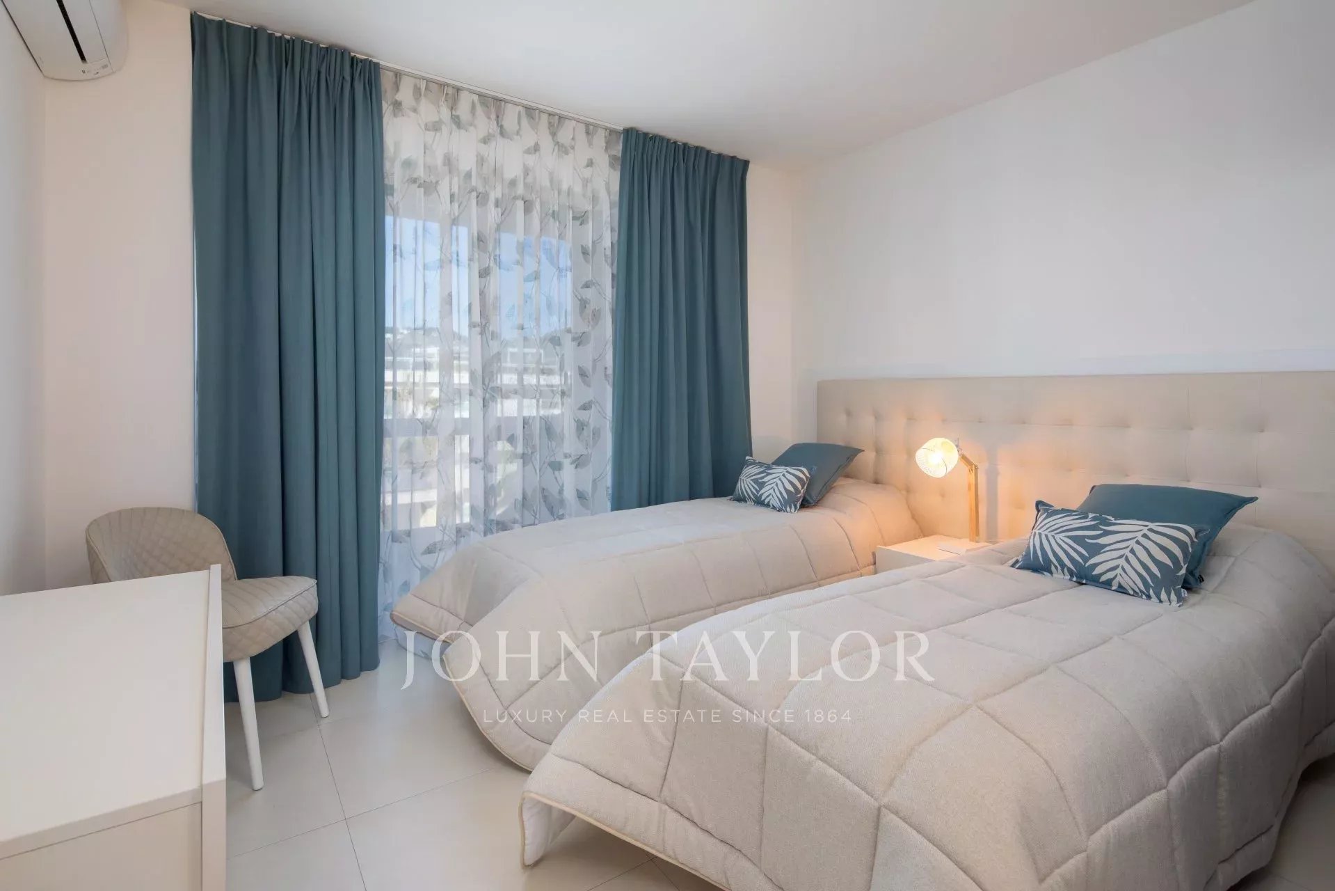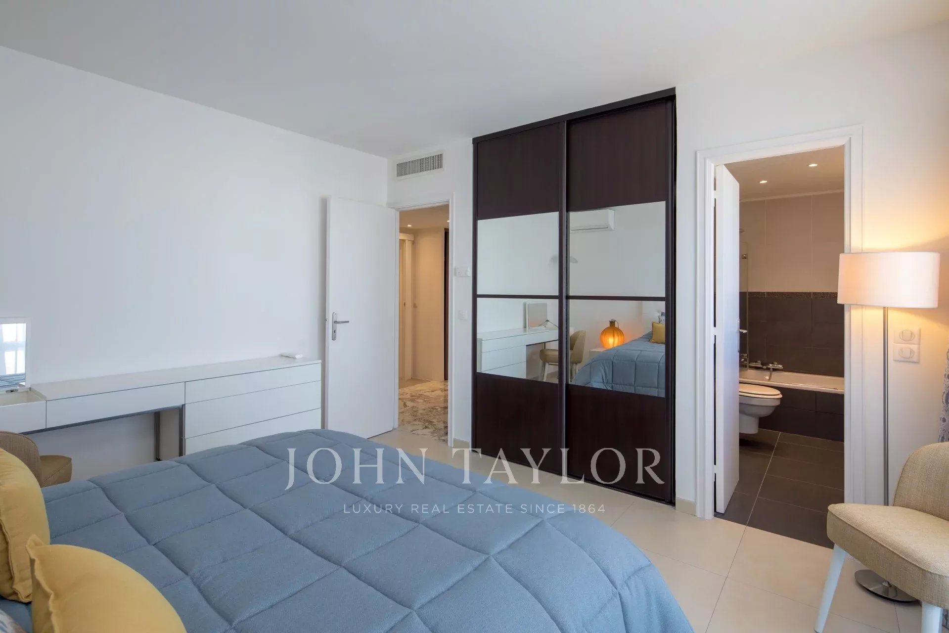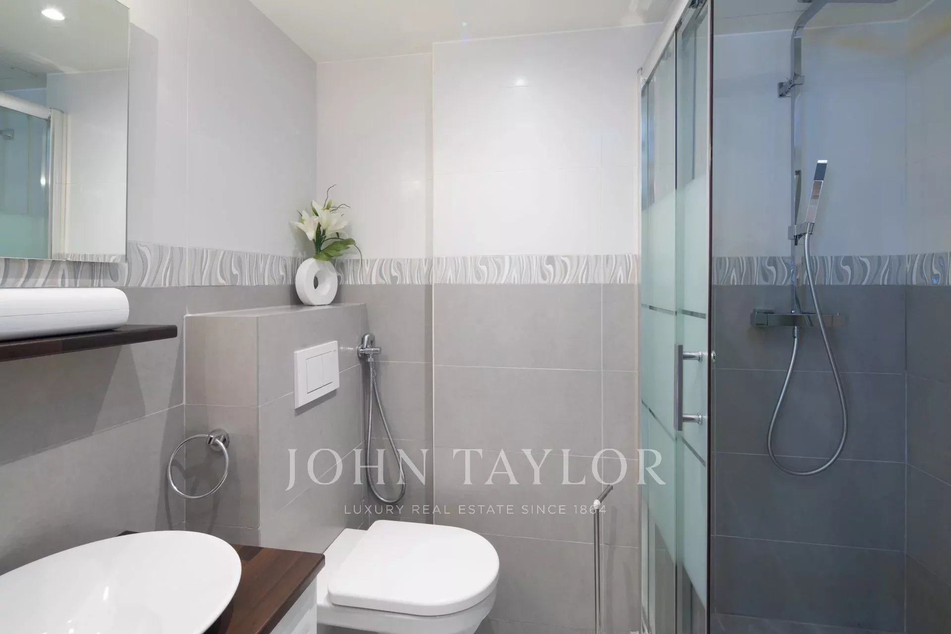 Komfortní 4pokojový byt, kompletně zrekonstruovaný a klimatizovaný, v 6. patře luxusní rezidence na La Croisette mezi hotely Carlton a Marriott. Krásný výhled na moře.