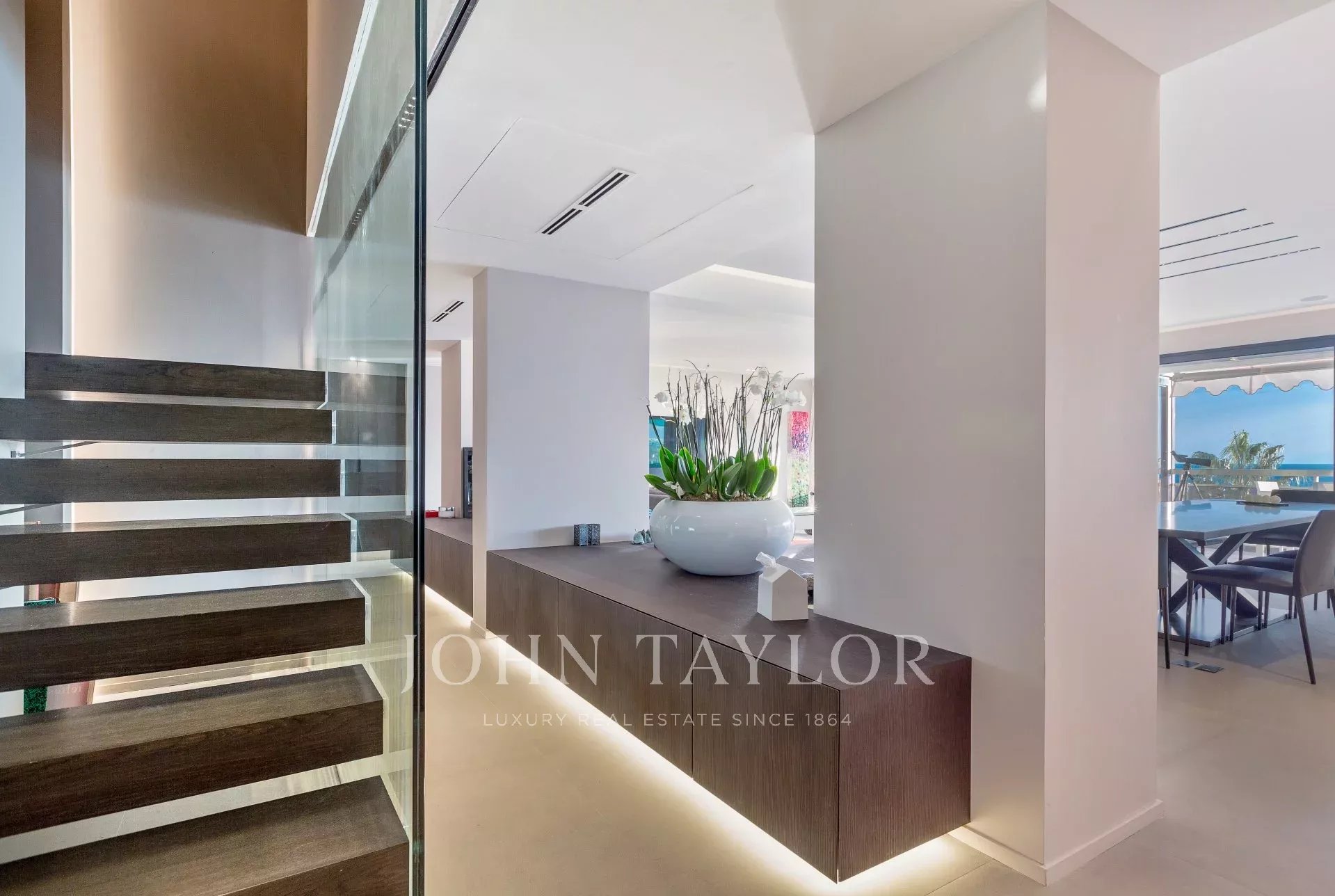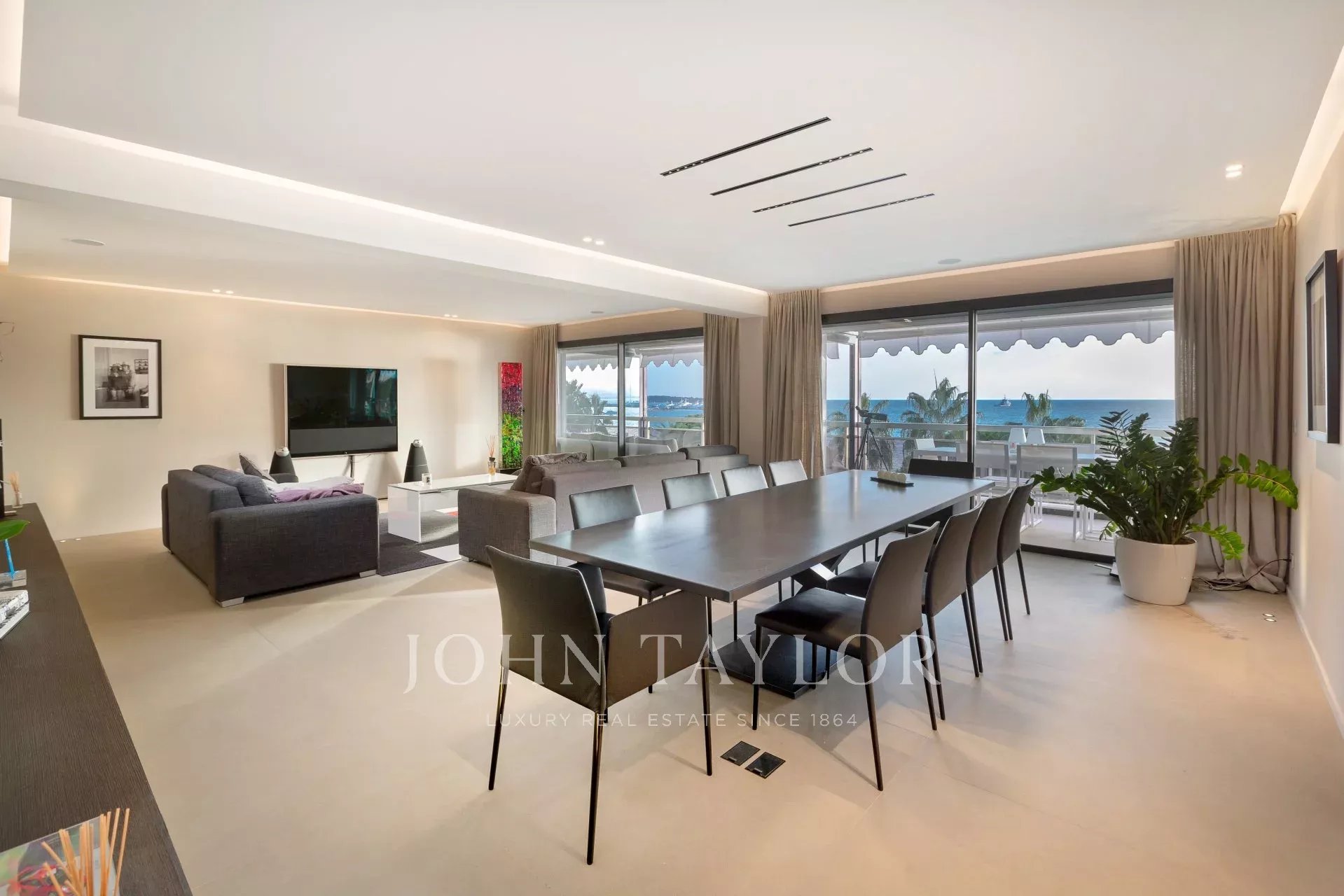 Tento nádherný moderní mezonetový apartmán v jedné z luxusních rezidencí na Croisette s nádherným výhledem na Cannesský záliv nabízí obytnou plochu přibližně 250 m2 v 5. a 6. patře. Kompletně zrekonstruovaný byt se může pochlubit atraktivním interiérem a špičkovými prvky.