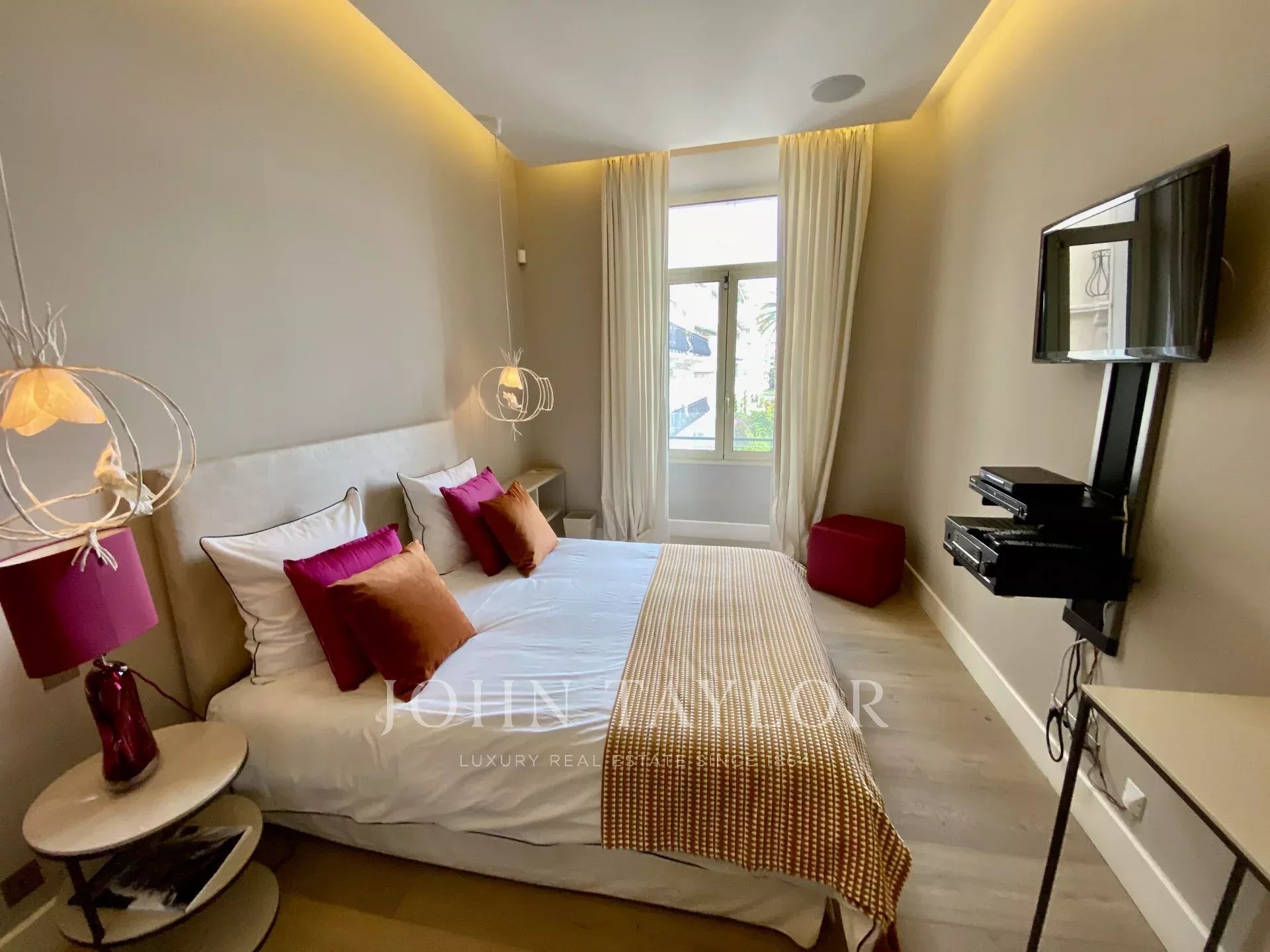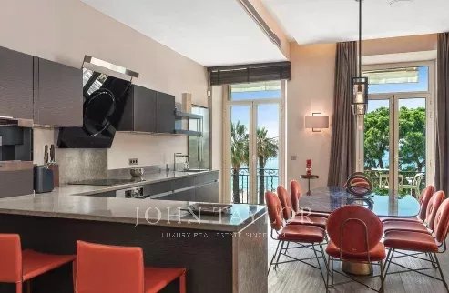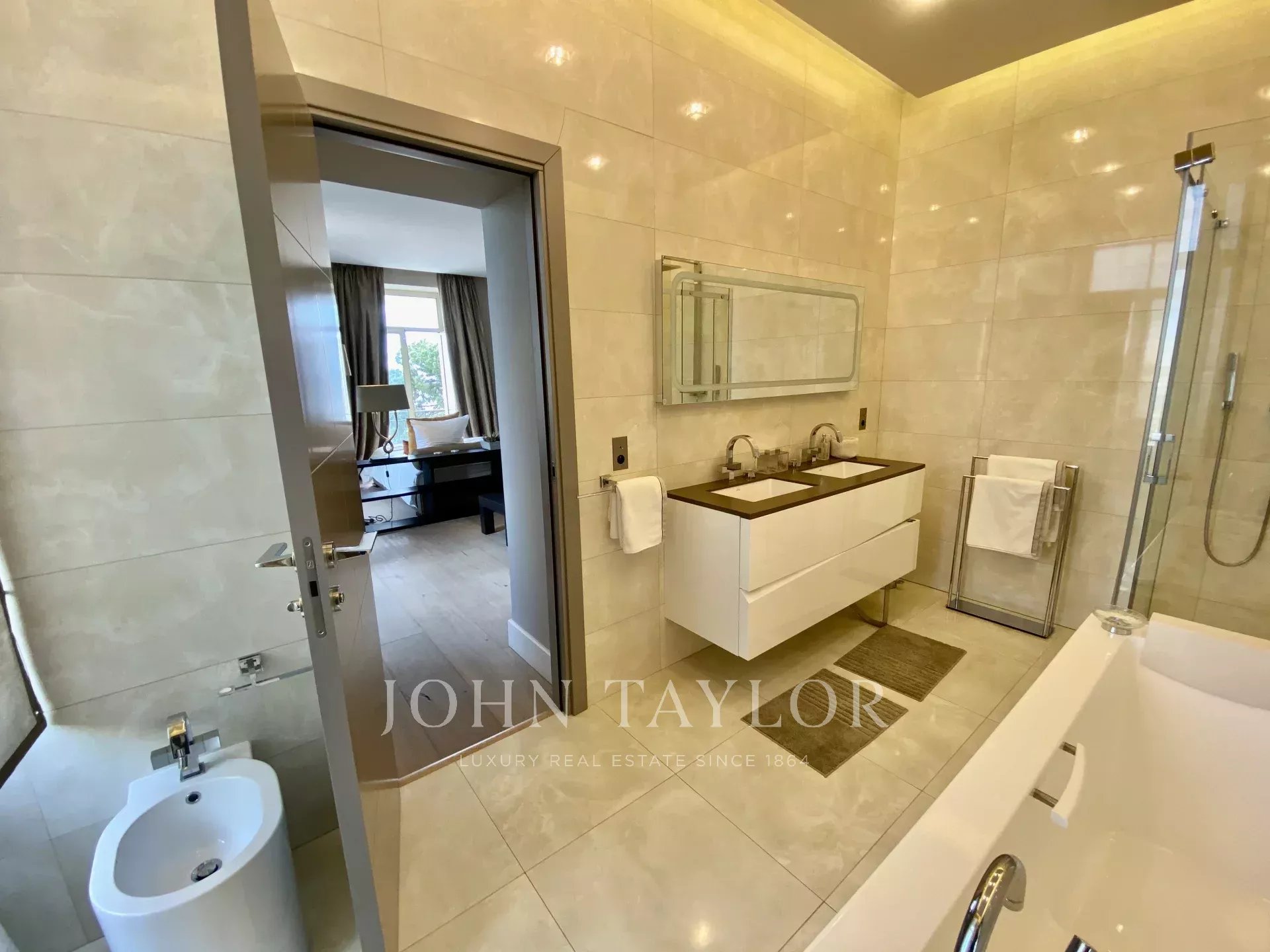 Tento nádherný moderní byt s nádherným výhledem na Canneský záliv a Croisette, jen pár minut chůze od Palais des Festivals, nabízí přibližně 230 m2 obytné plochy a 35 m2 terasy.