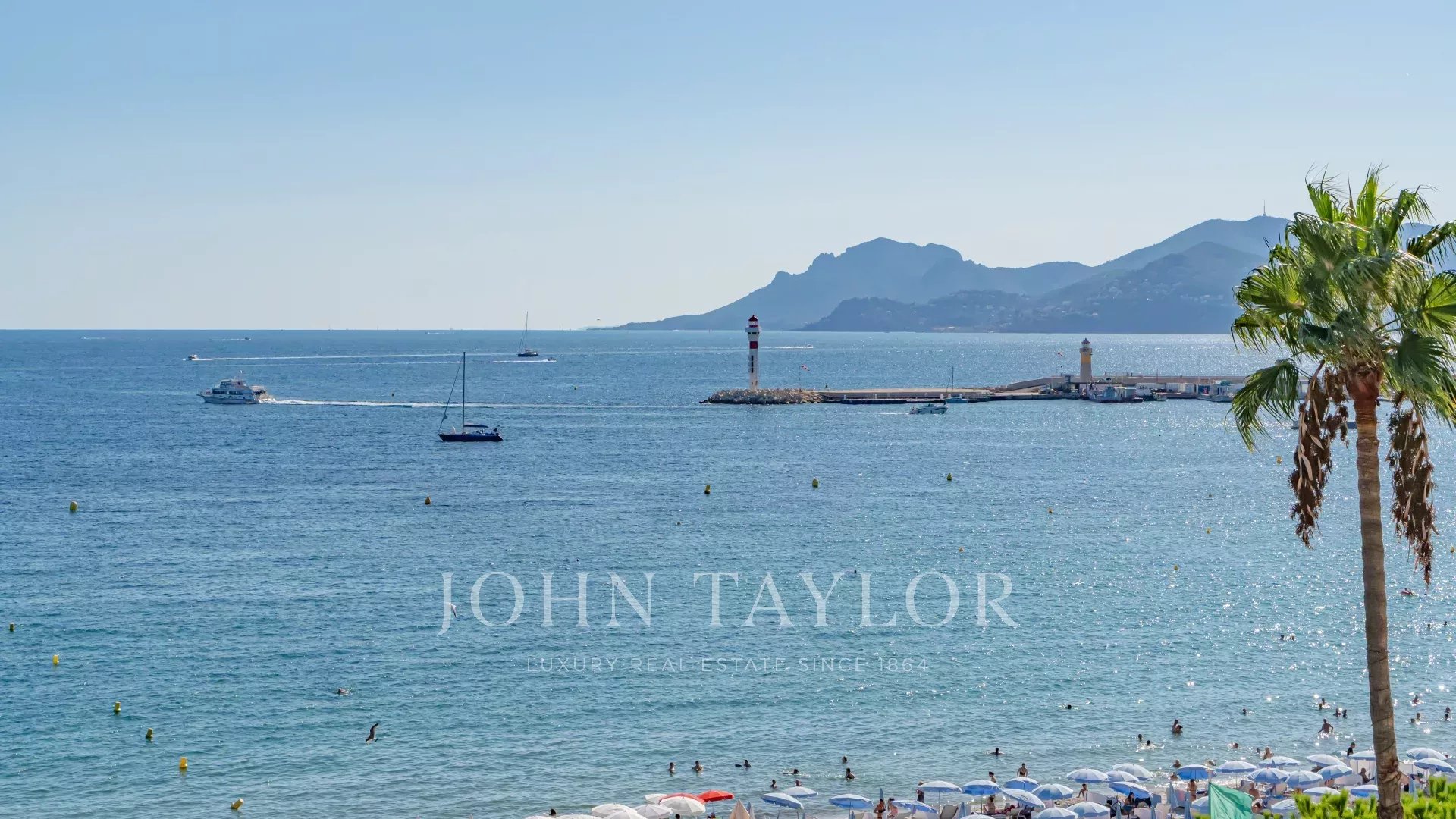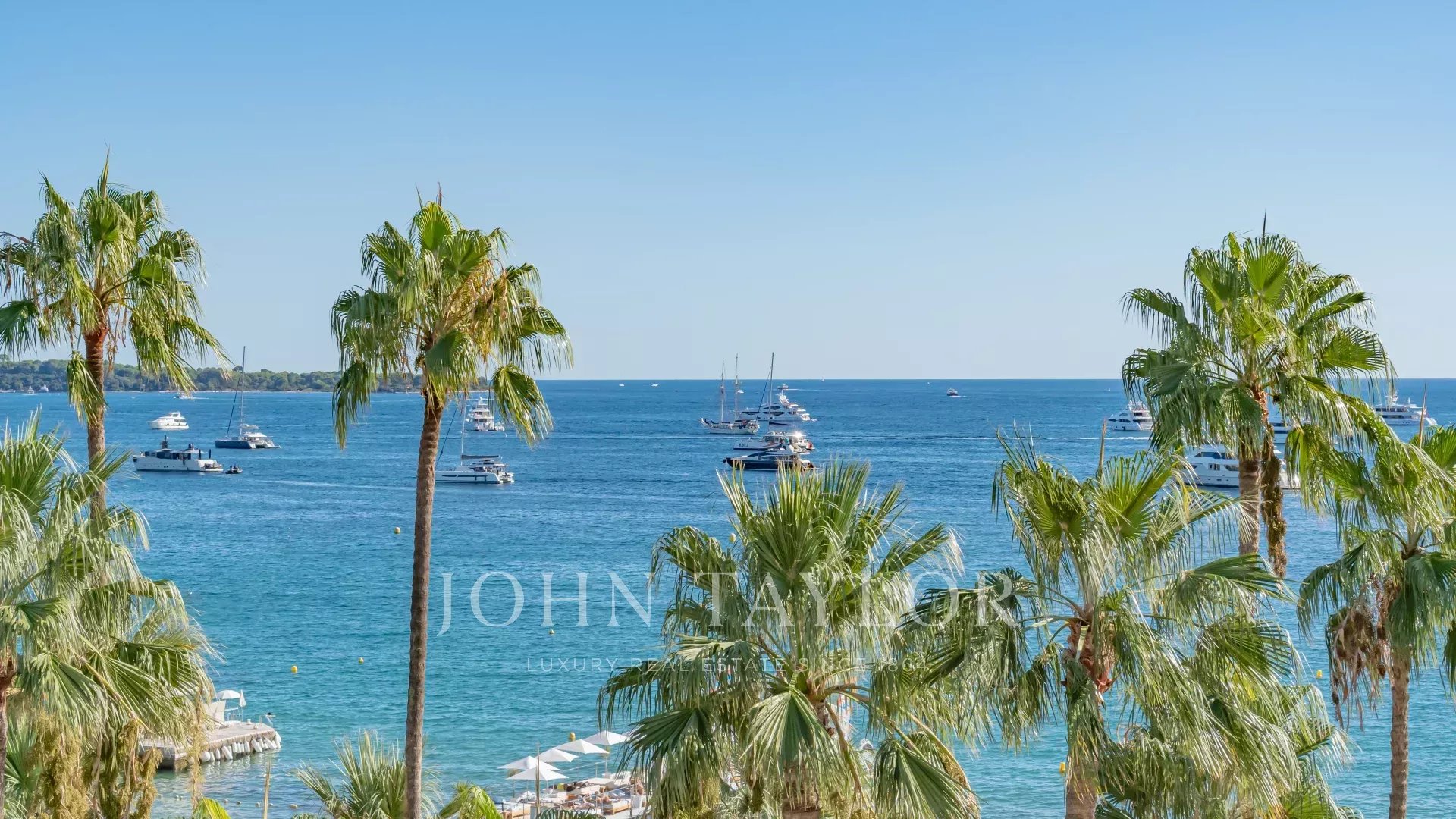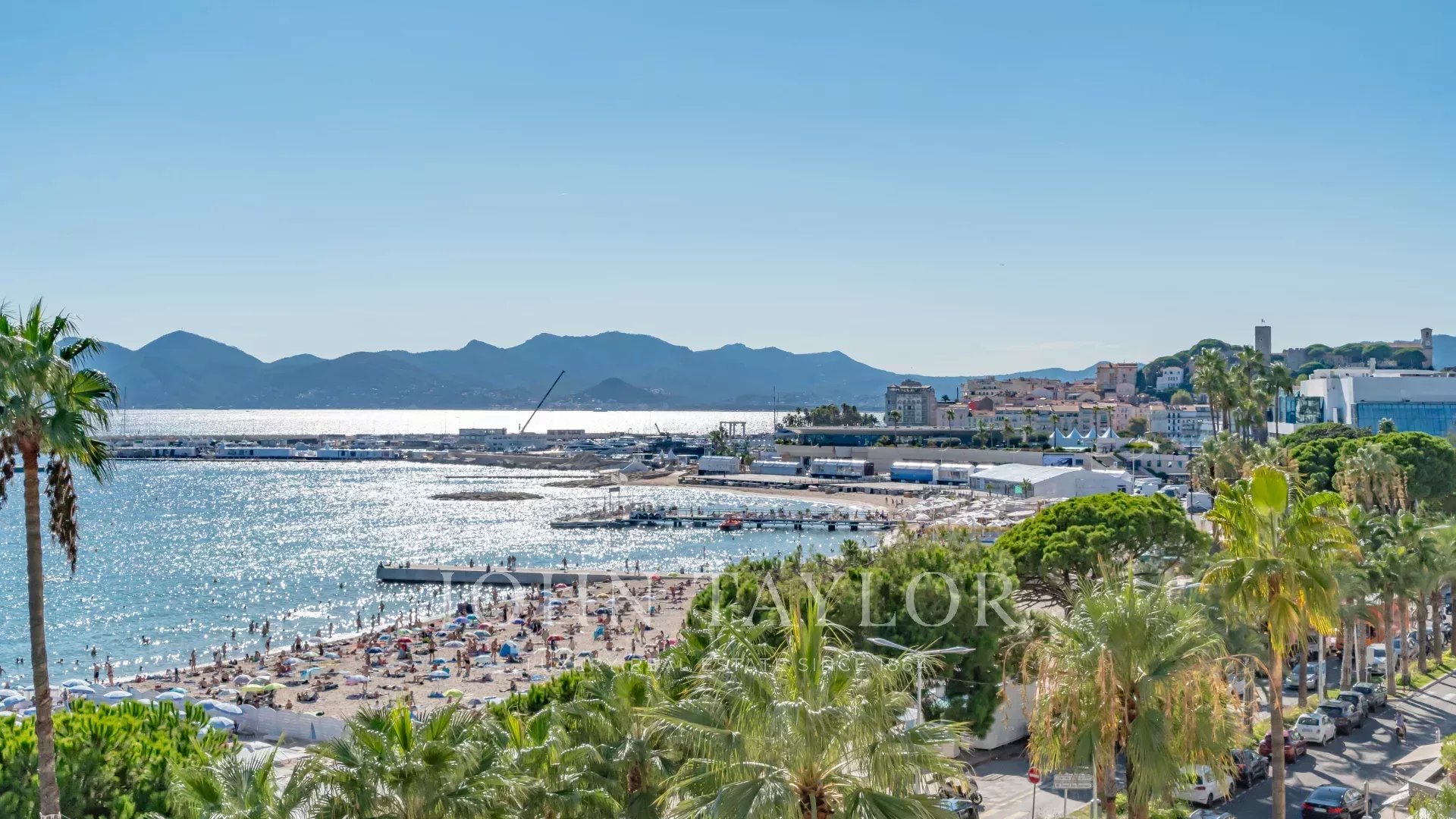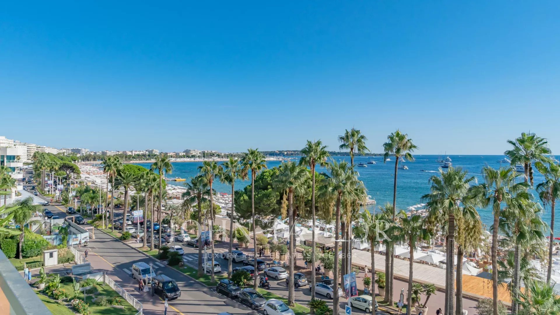 Krásný klimatizovaný byt se nachází v srdci Croisette v 5. patře luxusní rezidence s nádherným panoramatickým výhledem na Canneský záliv, pláže, Festivalový palác a Estérel.