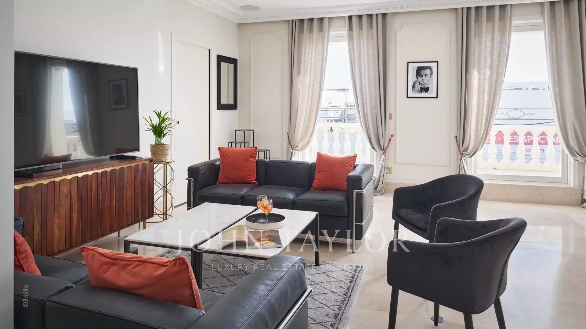 Tento nádherný penthouse o rozloze 240 m2 se nachází naproti Palais des Festivals a nabízí jedinečnou příležitost k sezónnímu pronájmu.