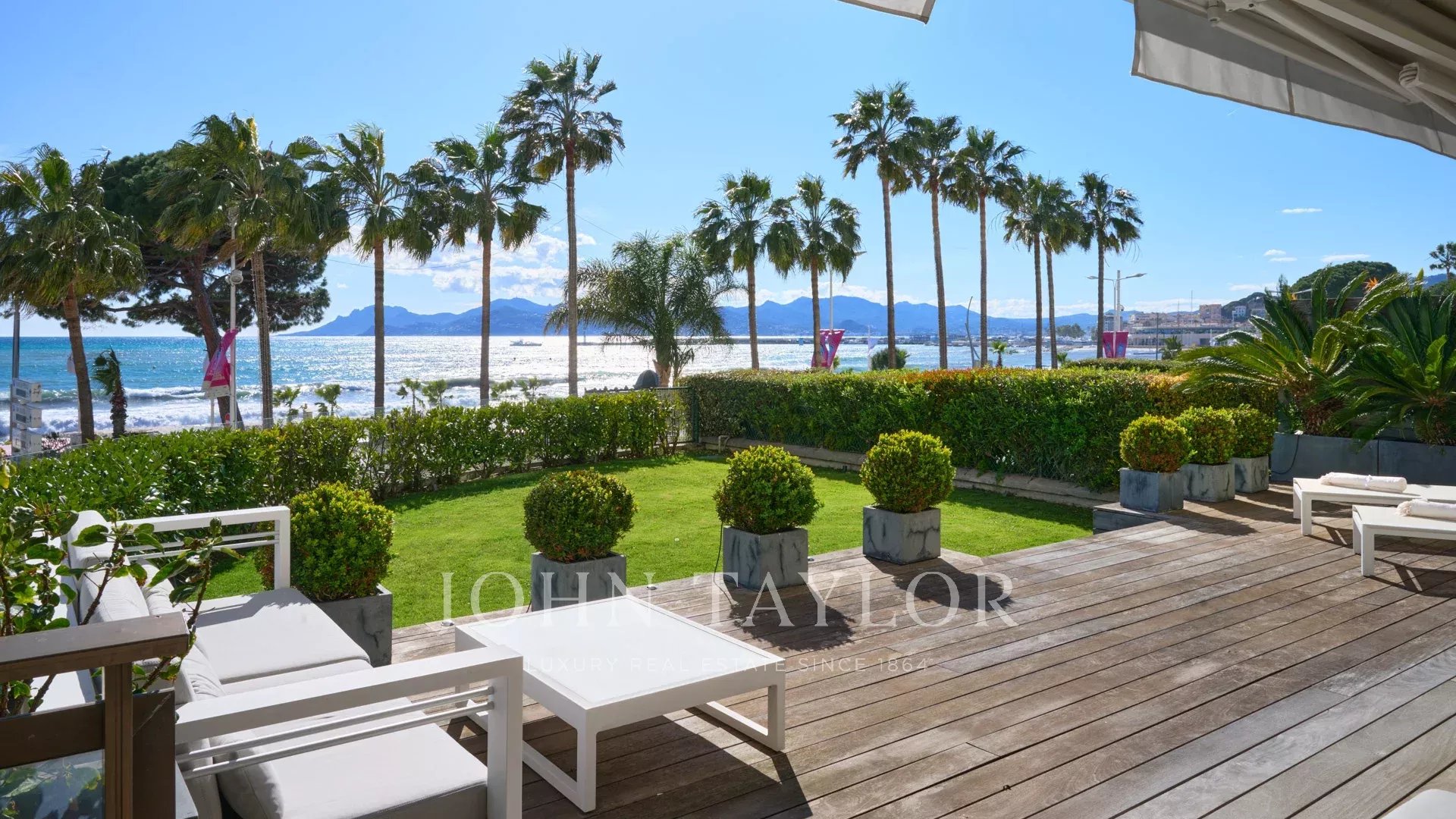 Privilegovaná poloha této střežené rezidence vedle hotelu Carlton nabízí úchvatný výhled na Canneský záliv a Středozemní moře. Využijte tento výjimečný výhled z rozlehlé zahradní terasy o rozloze přibližně 100 m², která je ideálním prostorem pro chvíle odpočinku nebo obchodní jednání.