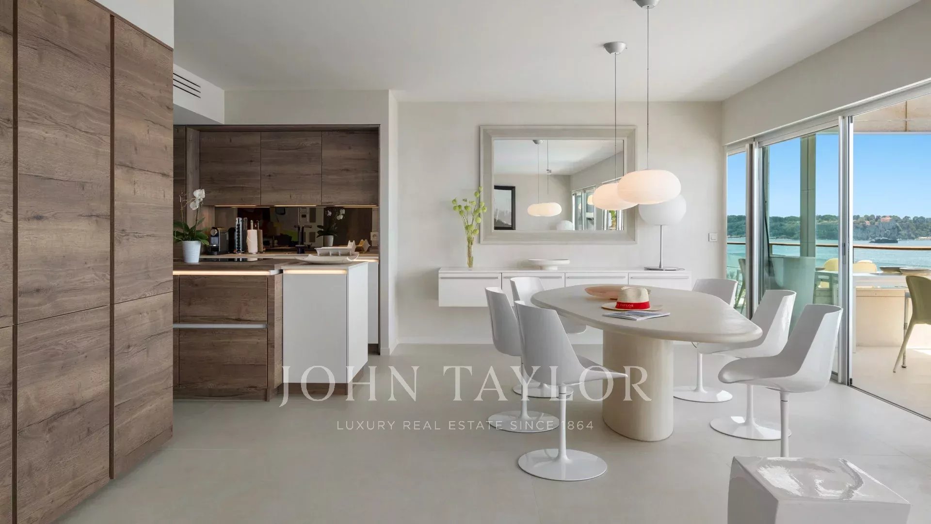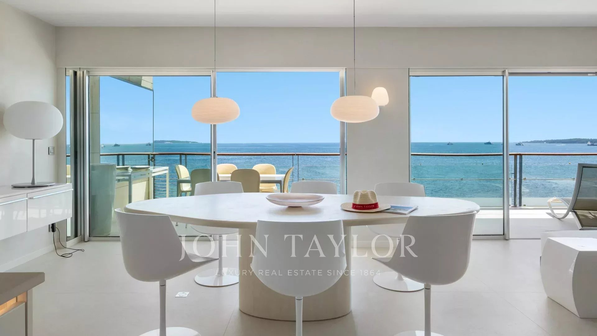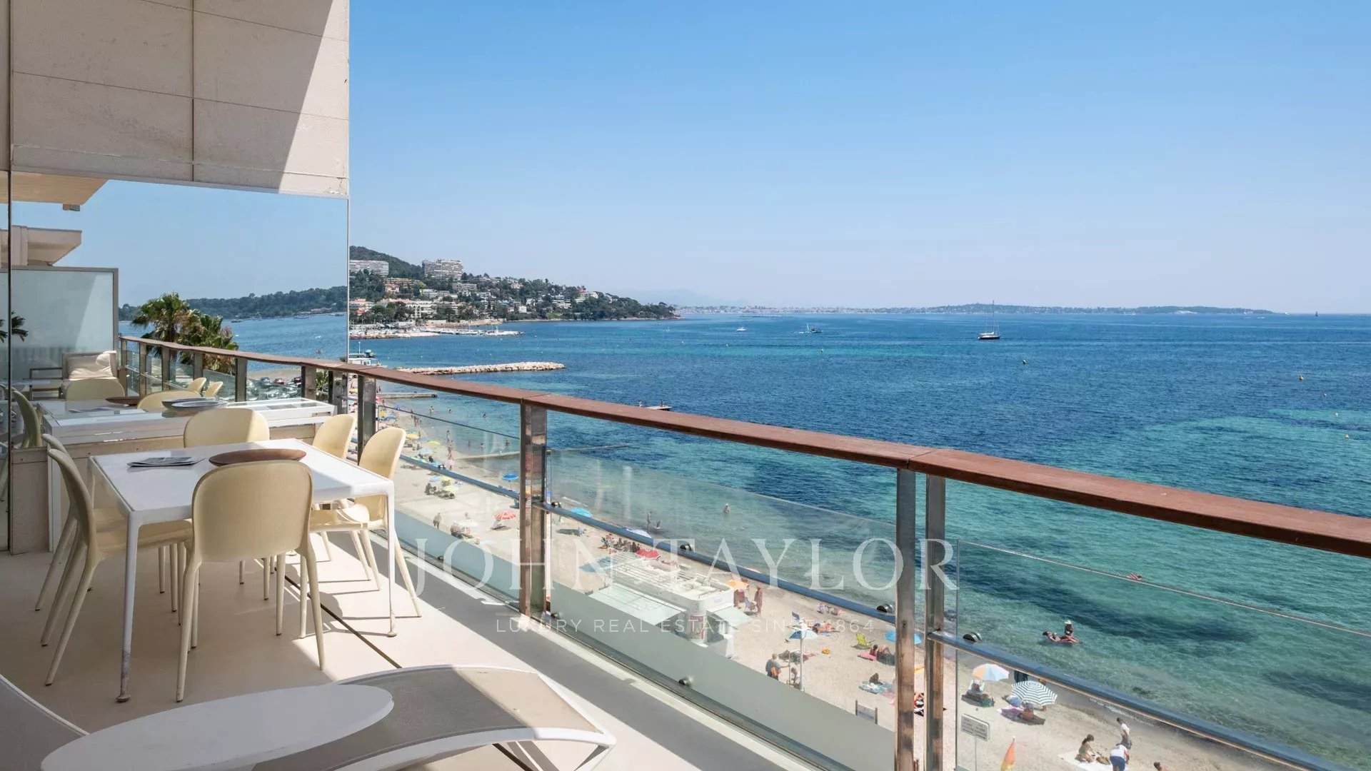 Krásný 4pokojový byt v 5. a posledním patře rezidence na pláži Palm Beach v Cannes s výhledem na Lérinsovy ostrovy a Cap d'Antibes. Nádherný výhled na moře.