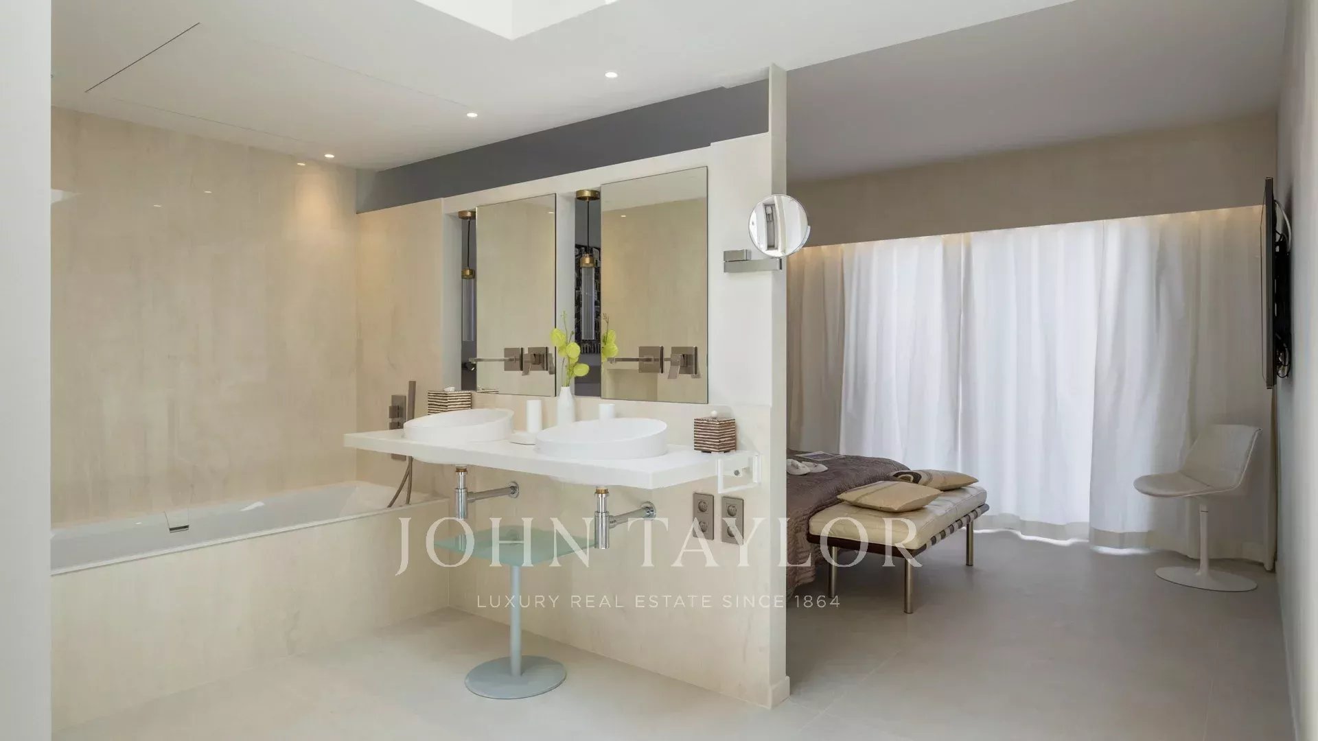 Tento byt, kompletně zrekonstruovaný s pečlivostí a z vysoce kvalitních materiálů, je plně klimatizovaný a využívá špičkové vybavení, jako je centrální hi-fi systém.