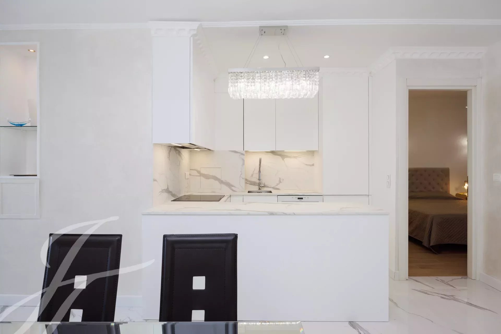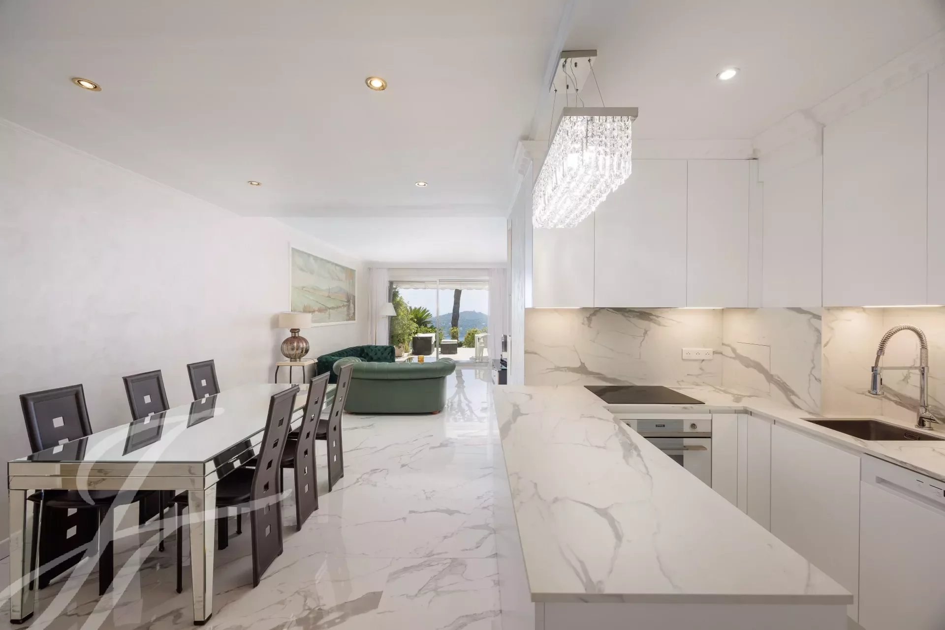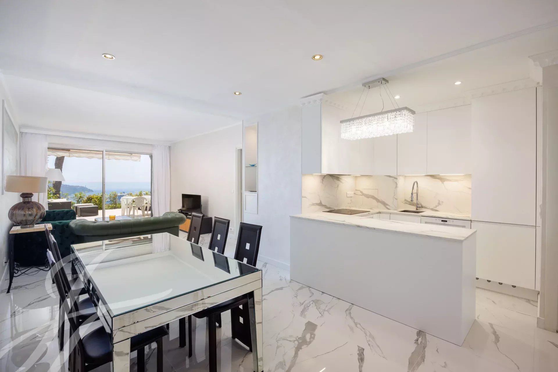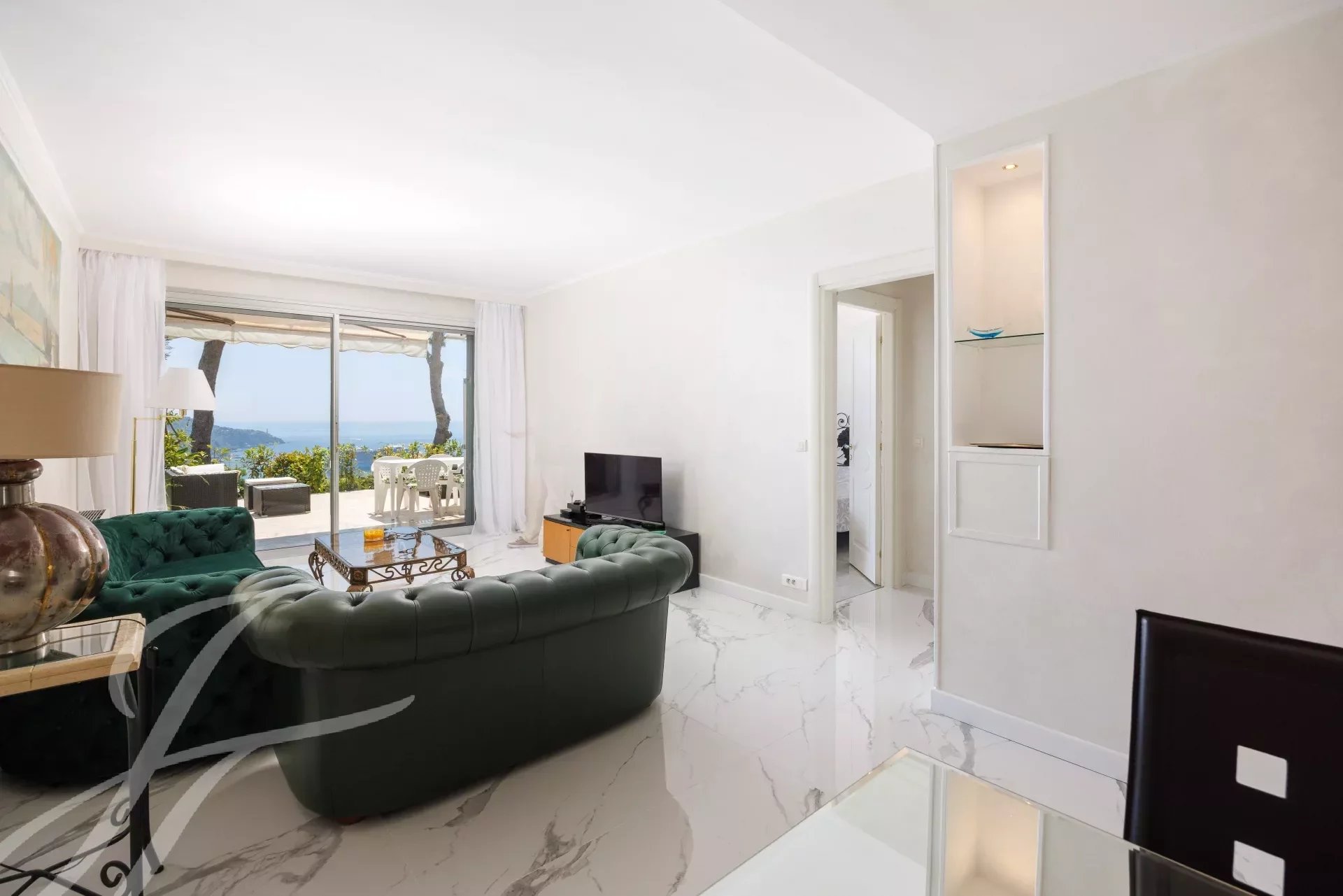 V luxusní rezidenci, příjemný 3pokojový apartmán s terasou o rozloze 37 m² s nádherným výhledem na moře a Cap Ferrat, v blízkosti veškeré občanské vybavenosti.
