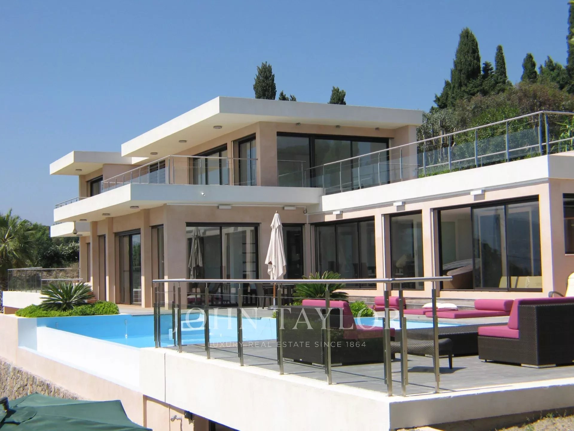 Tato krásná moderní vila s jihozápadní orientací ve čtvrti Croix des Gardes je plně klimatizovaná a má krásný výhled na moře.