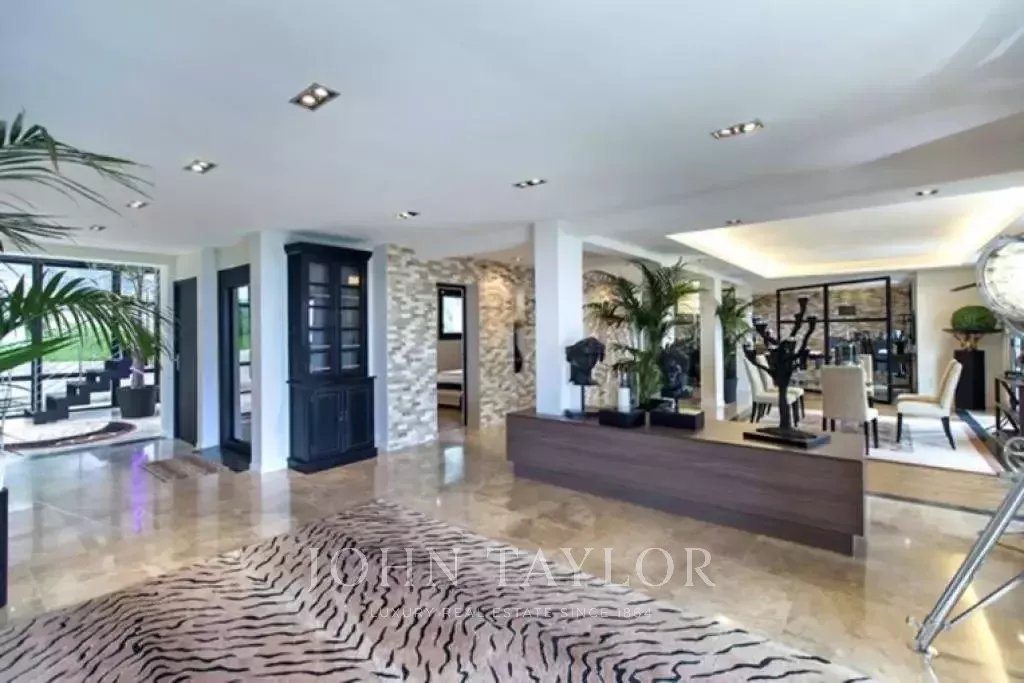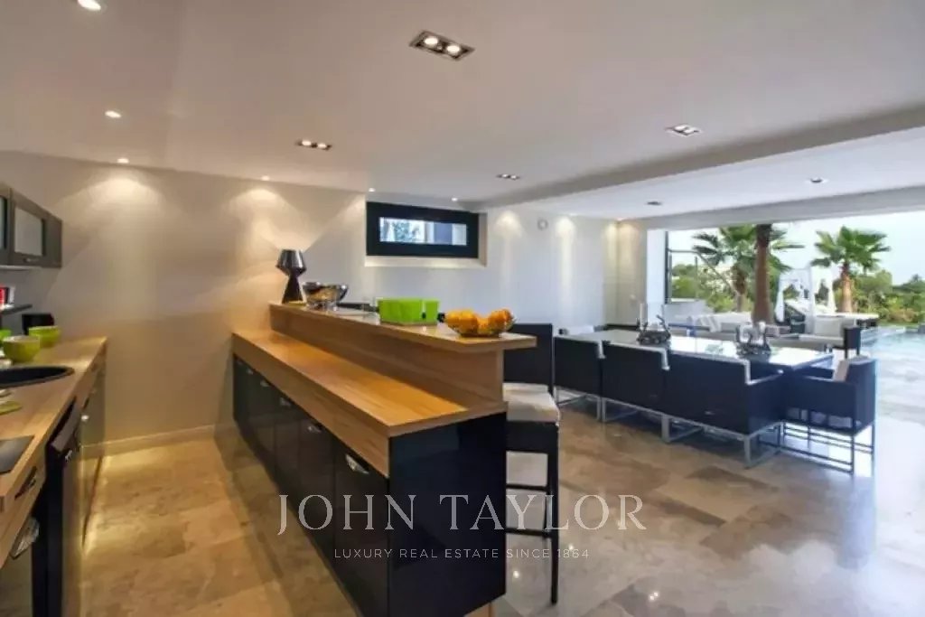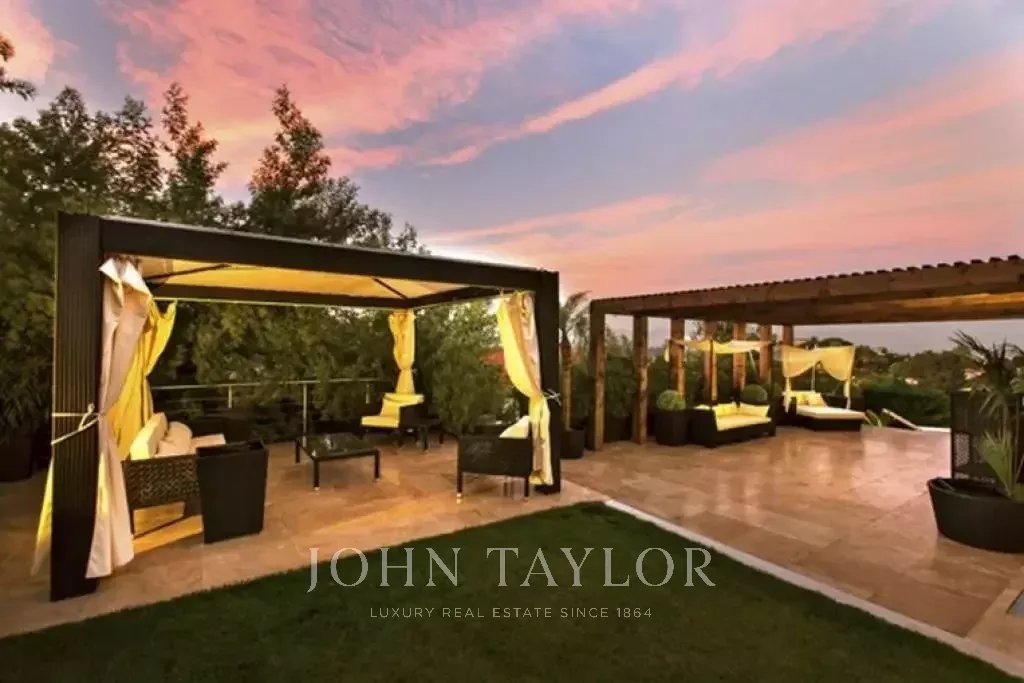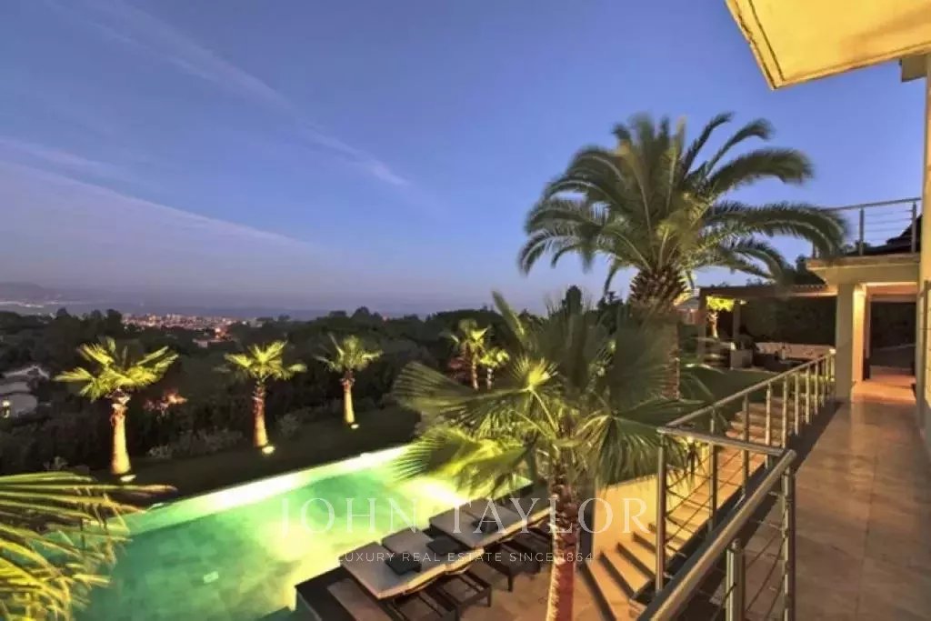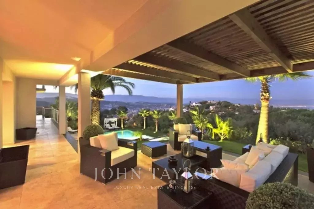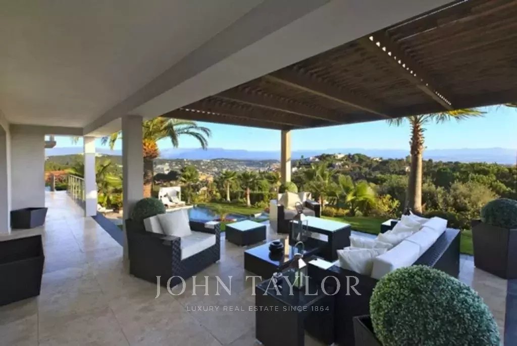 Nádherná vila v kopcích nad Cannes, pouhých deset minut jízdy autem od centra města. Tato kompletně zrekonstruovaná vila uprostřed zahrady o rozloze 2 200 m2 kombinuje nejkvalitnější moderní výzdobu s nádherným panoramatickým výhledem na moře a celý záliv.