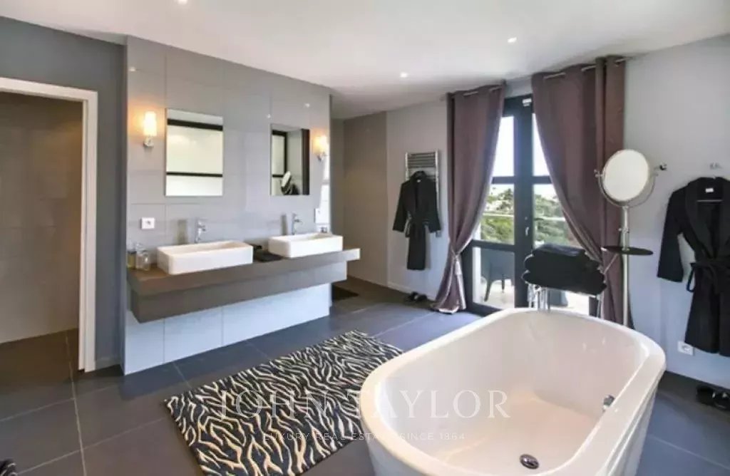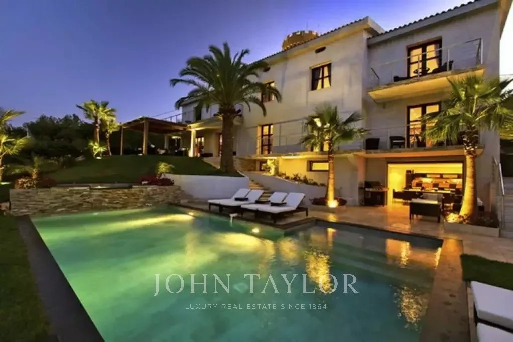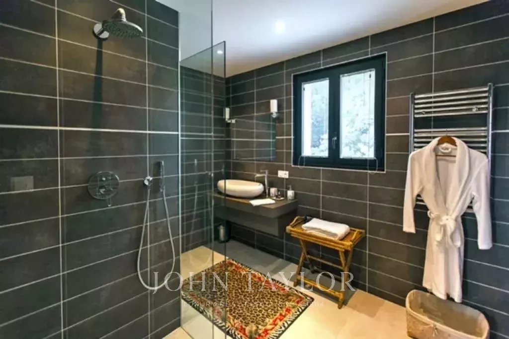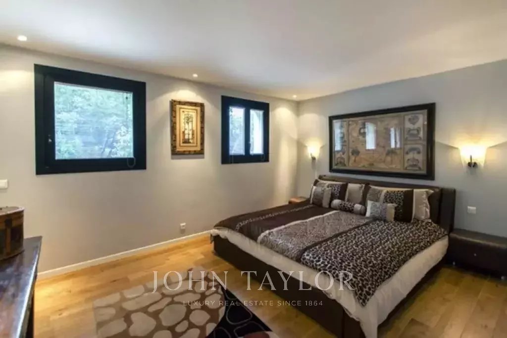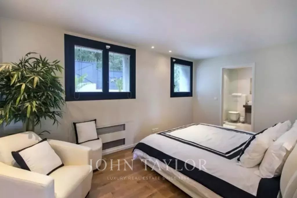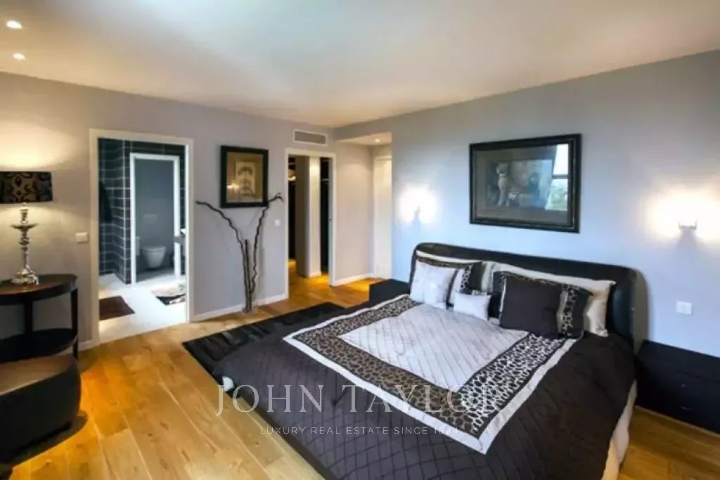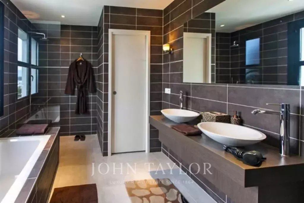 Nádherná vila v kopcích nad Cannes, pouhých deset minut jízdy autem od centra města. Tato kompletně zrekonstruovaná vila uprostřed zahrady o rozloze 2 200 m2 kombinuje nejkvalitnější moderní výzdobu s nádherným panoramatickým výhledem na moře a celý záliv.