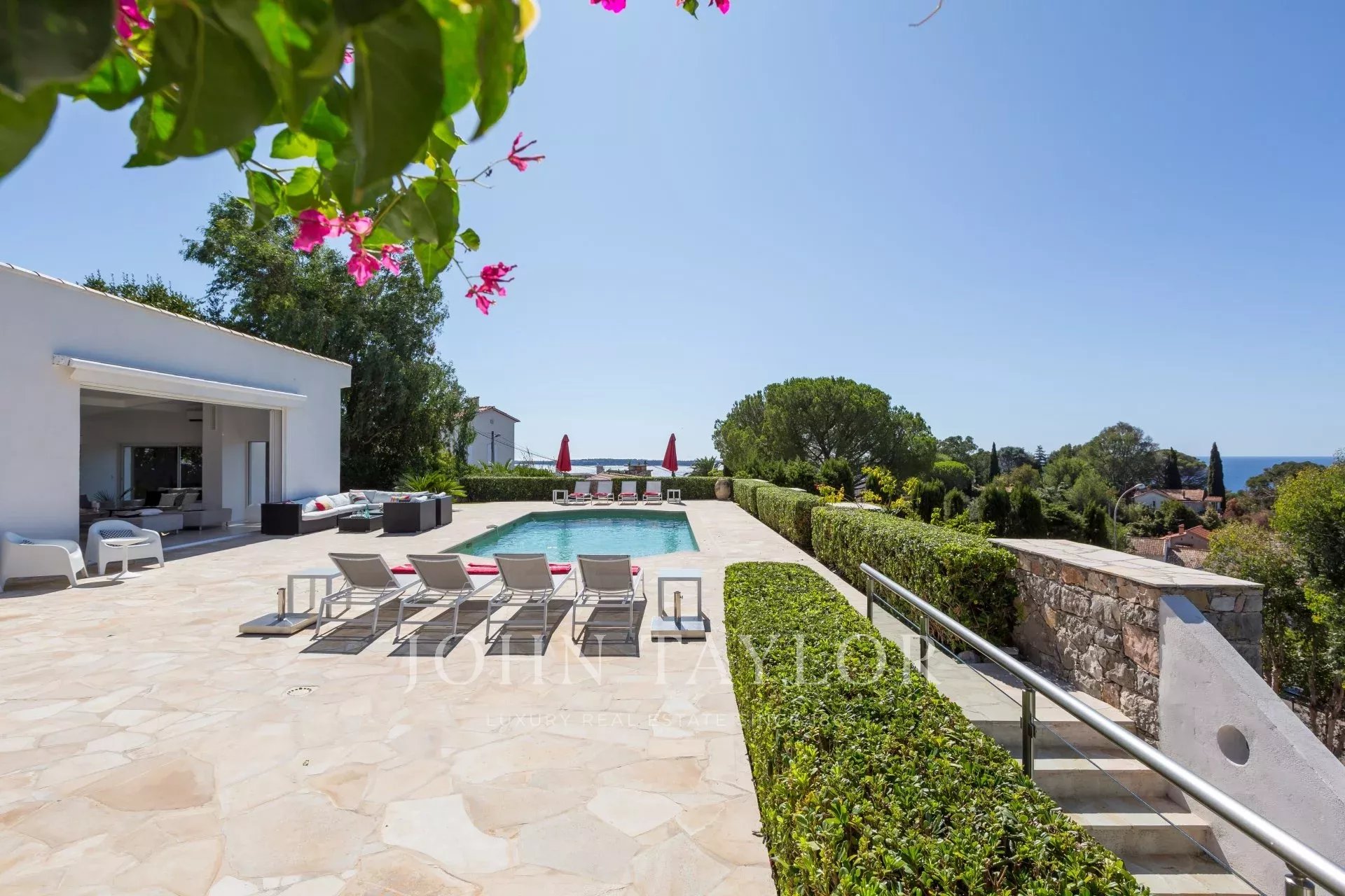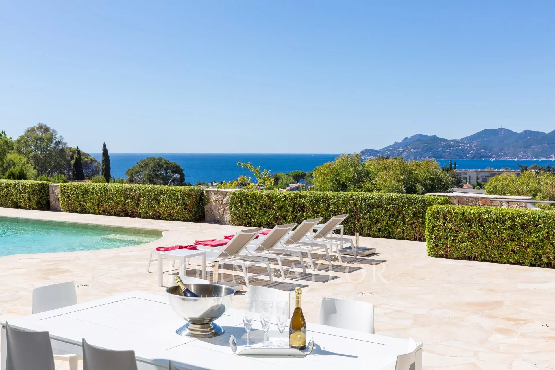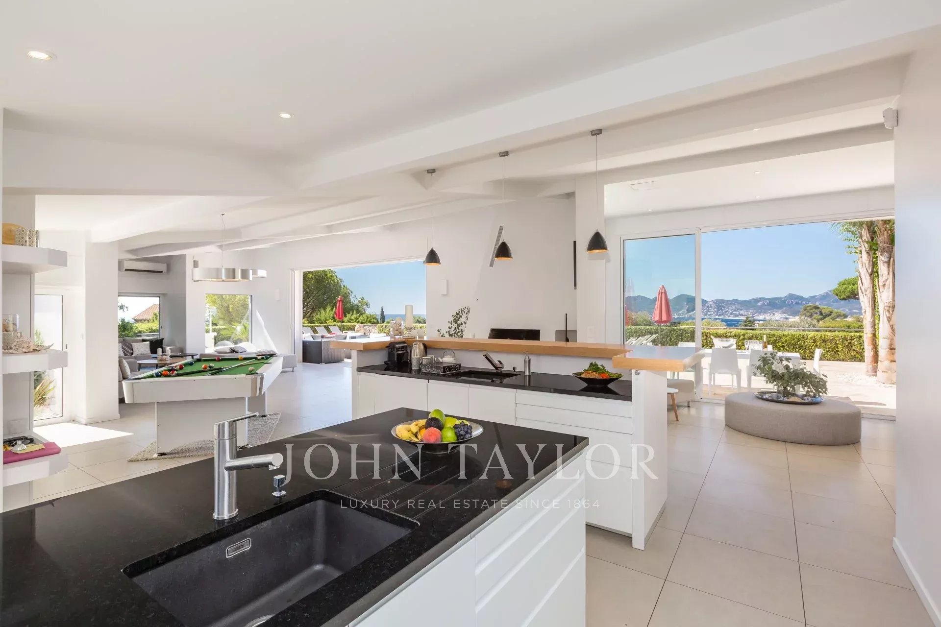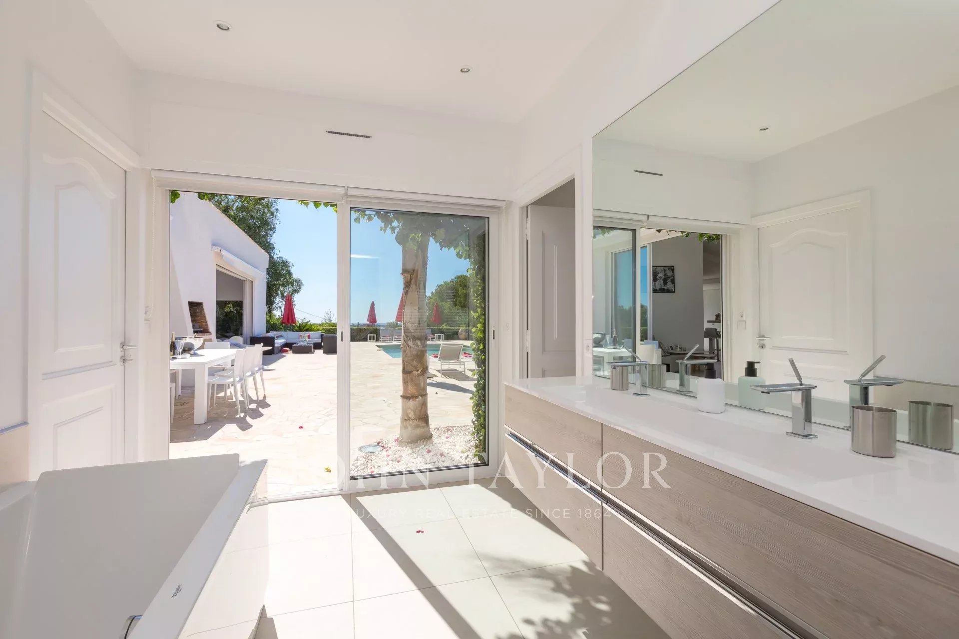 Tato moderní, kompletně zrekonstruovaná nemovitost ve čtvrti Croix des Gardes, jen několik minut od centra města a jeho pláží, nabízí 300 m² obytné plochy na pozemku o rozloze 2 000 m² s krásným výhledem na moře.