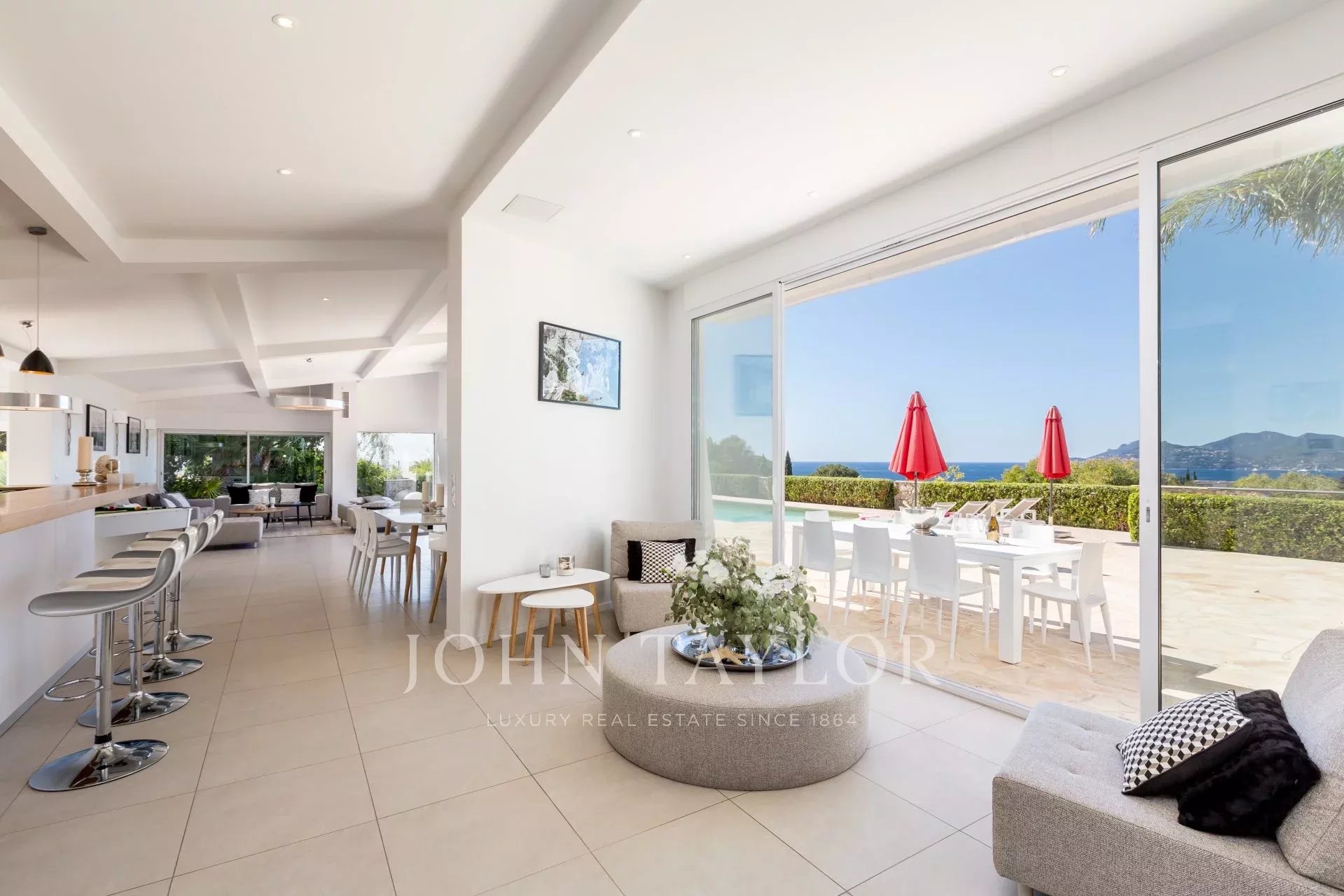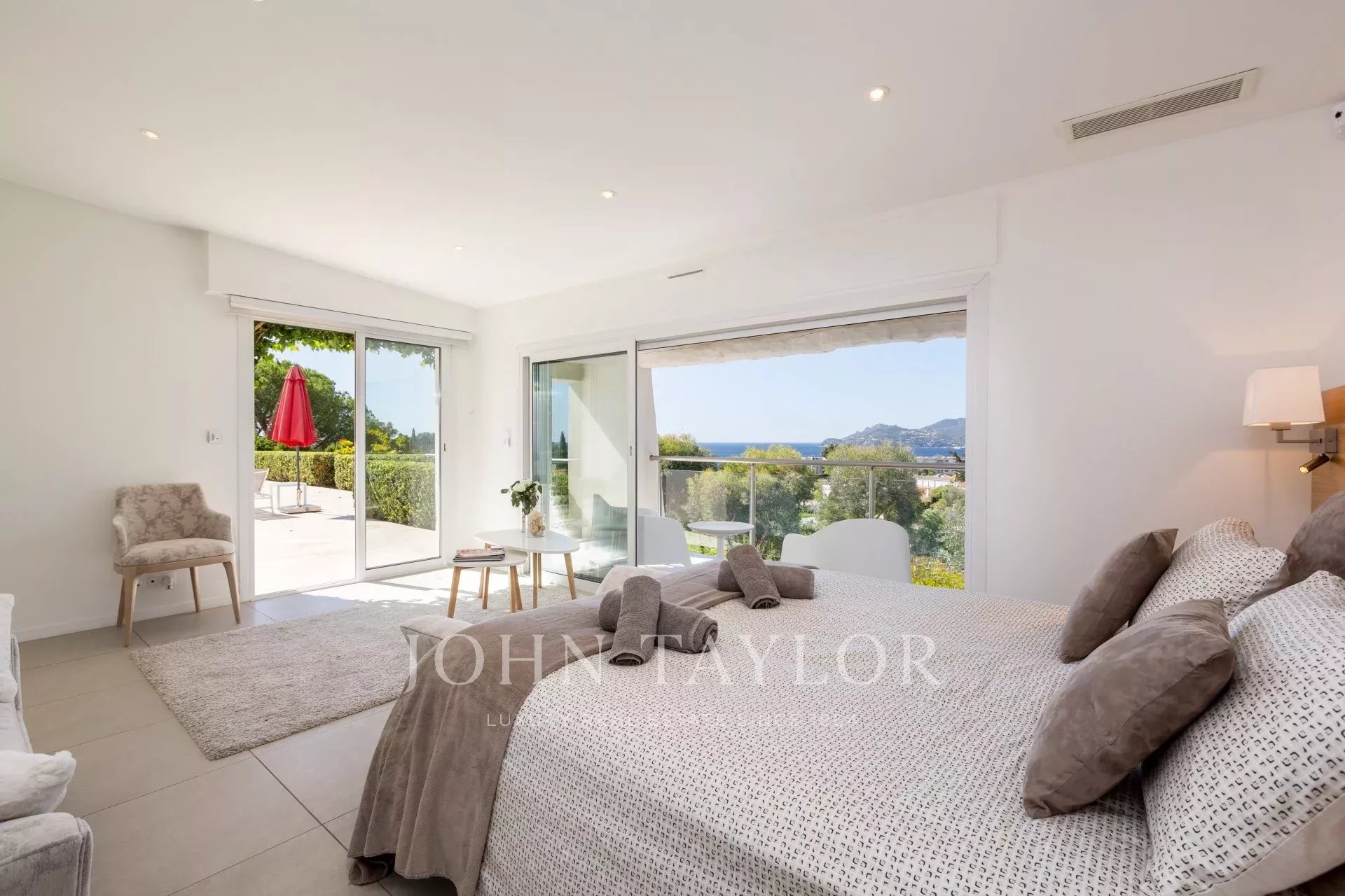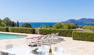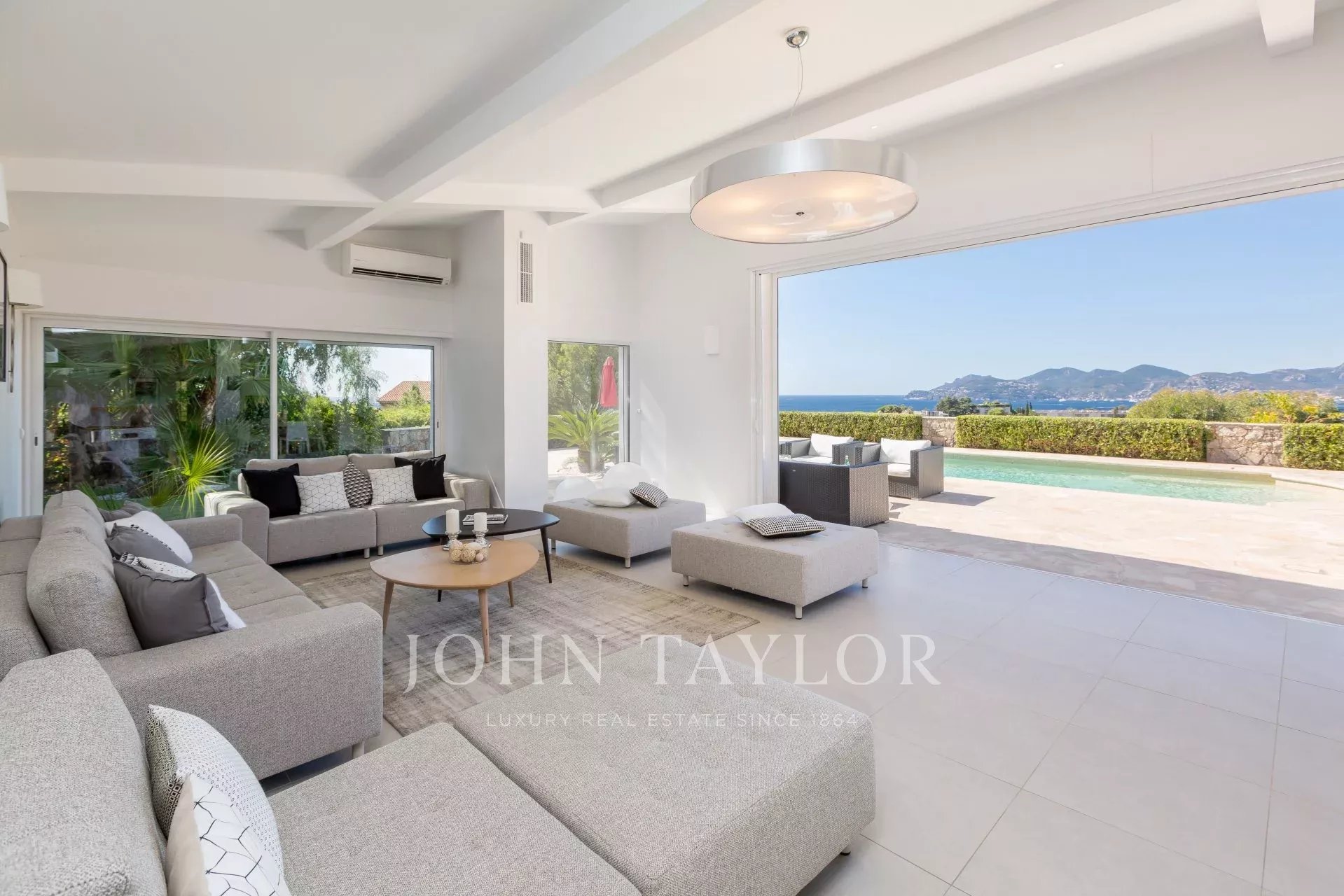 Tato moderní, kompletně zrekonstruovaná nemovitost ve čtvrti Croix des Gardes, jen několik minut od centra města a jeho pláží, nabízí 300 m² obytné plochy na pozemku o rozloze 2 000 m² s krásným výhledem na moře.