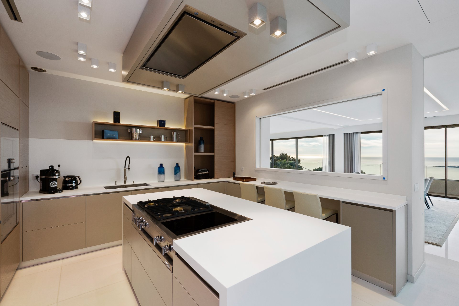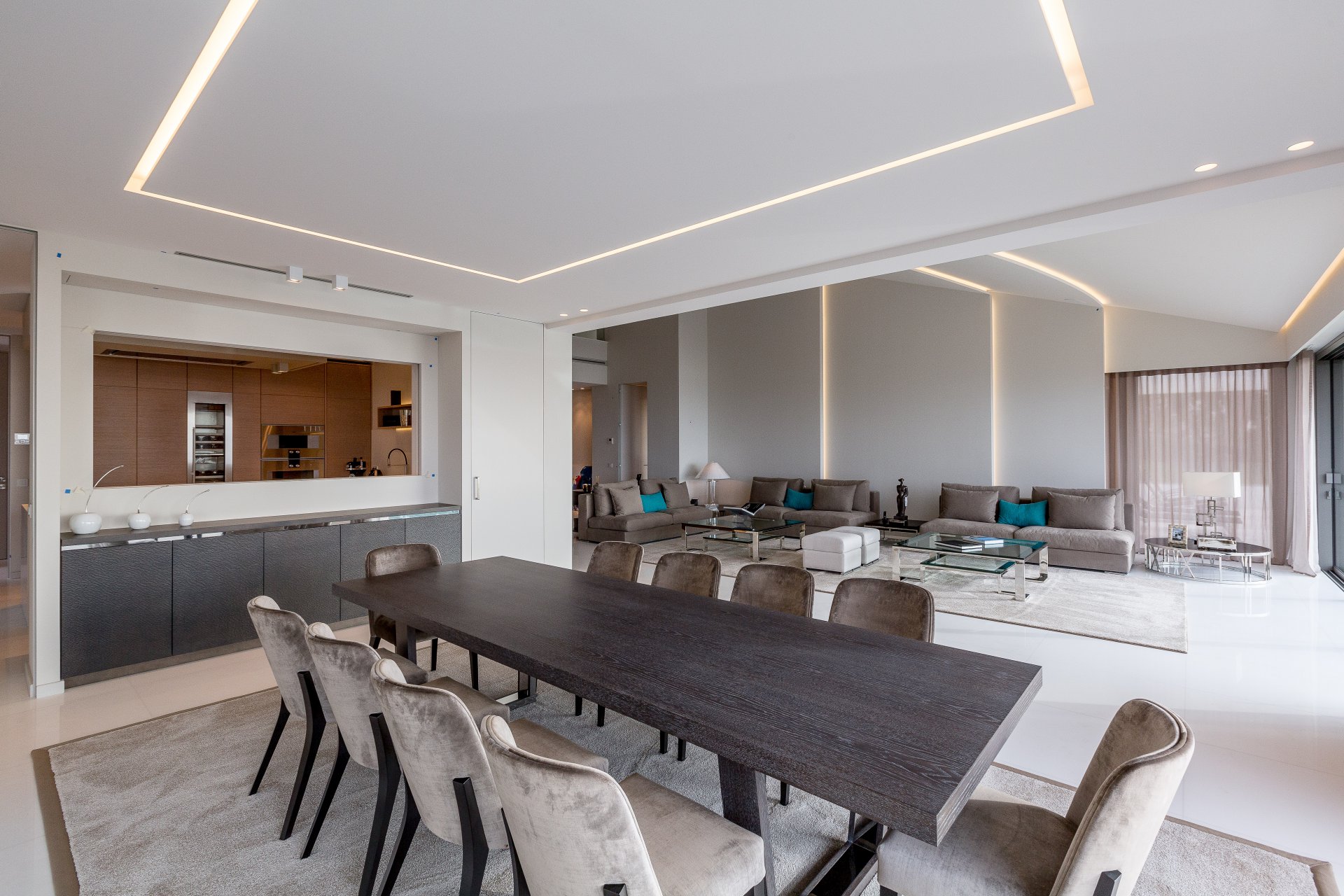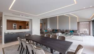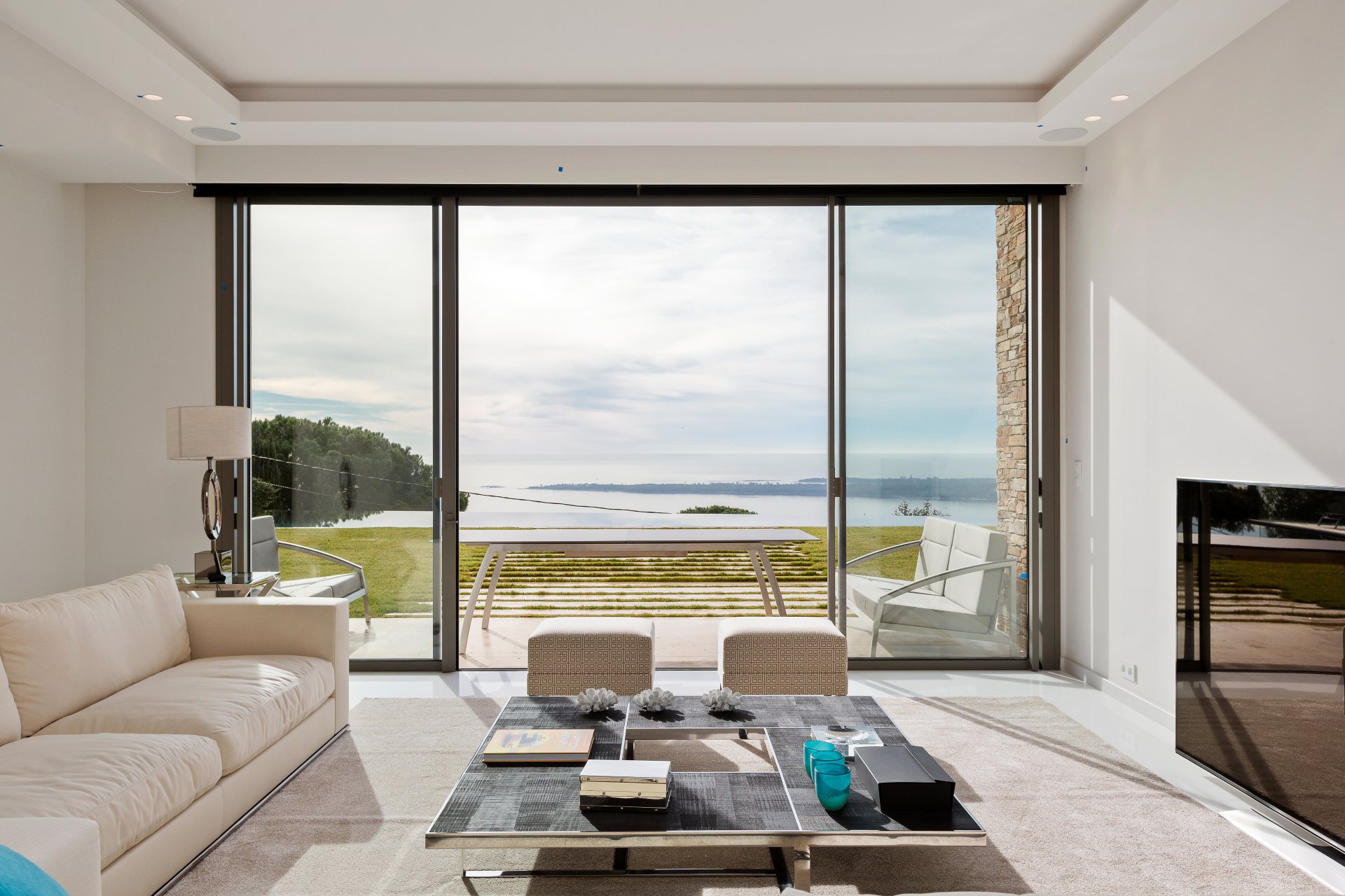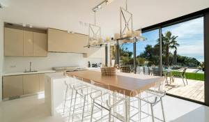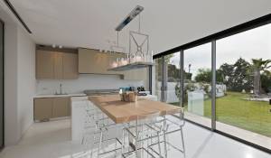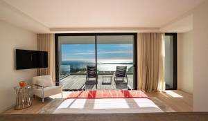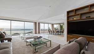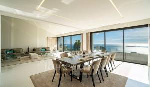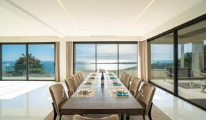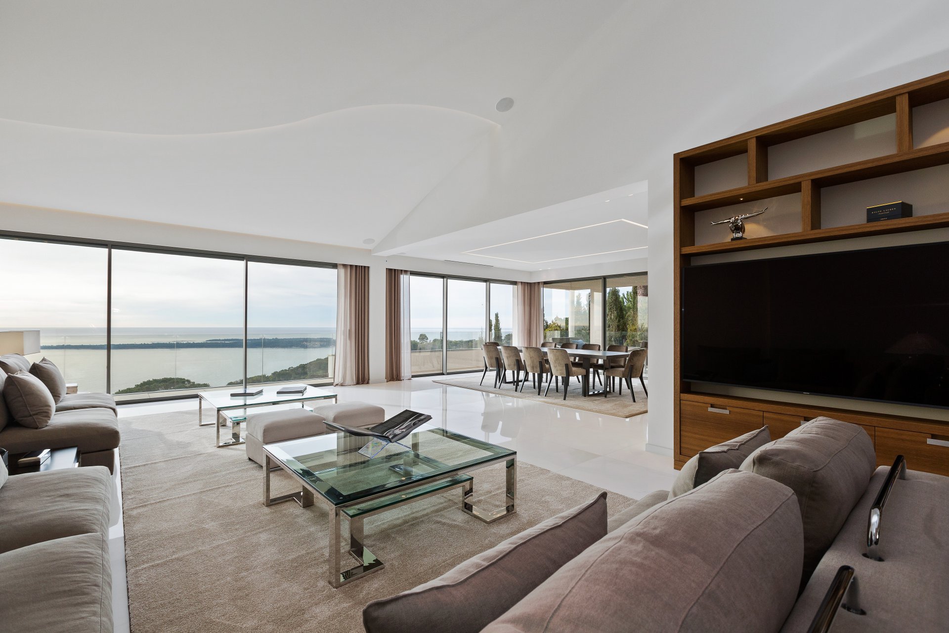 Velká atraktivní přijímací místnost s vybavenou kuchyní, jídelnou a velkým obývacím pokojem, ze kterého se vychází na velké terasy s výhledem na moře.