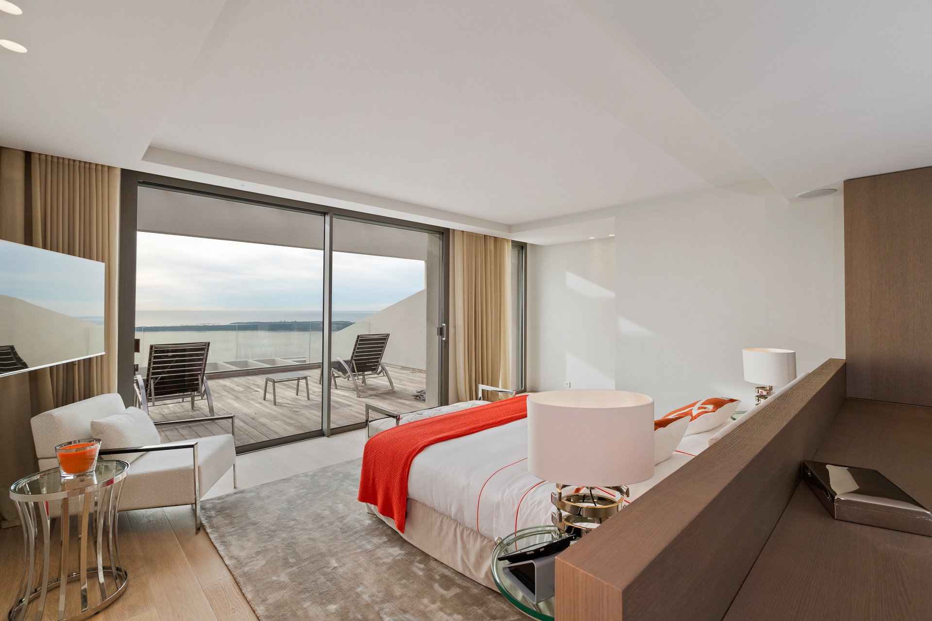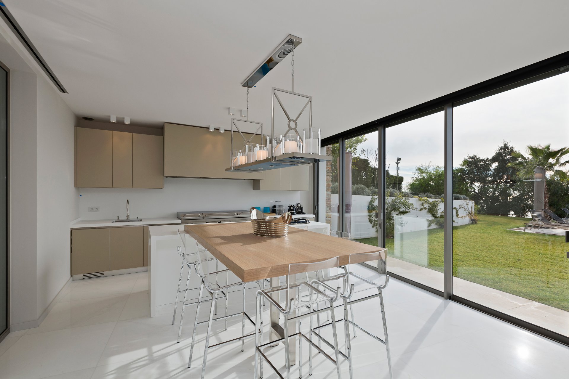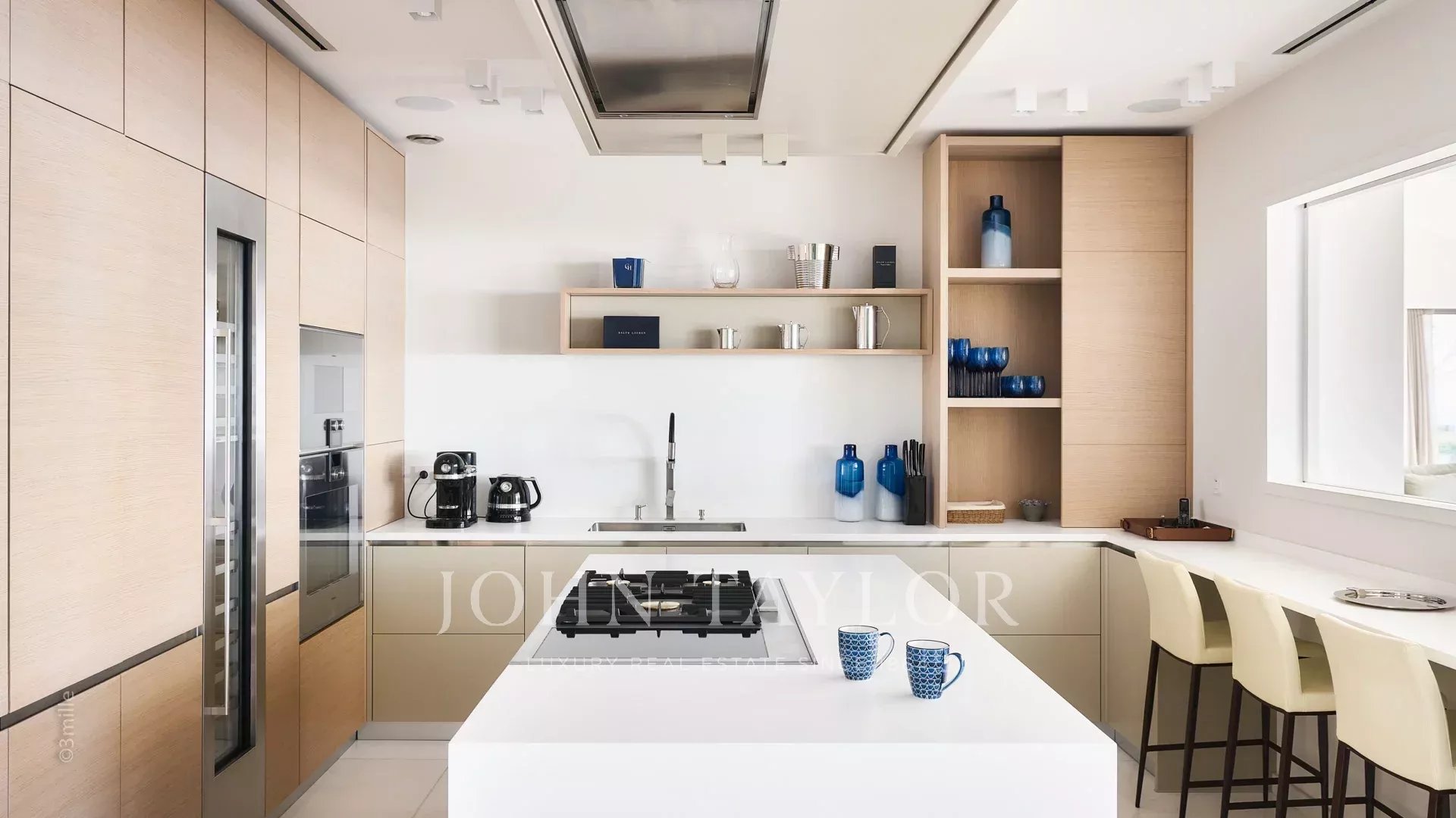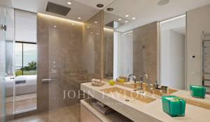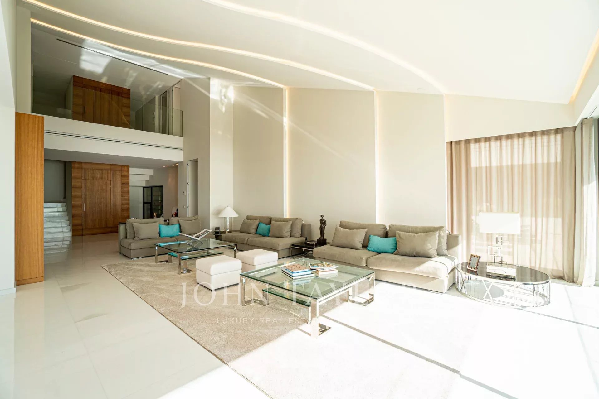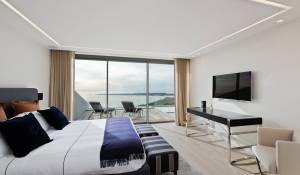 Velká atraktivní přijímací místnost s vybavenou kuchyní, jídelnou a velkým obývacím pokojem, ze kterého se vychází na velké terasy s výhledem na moře.