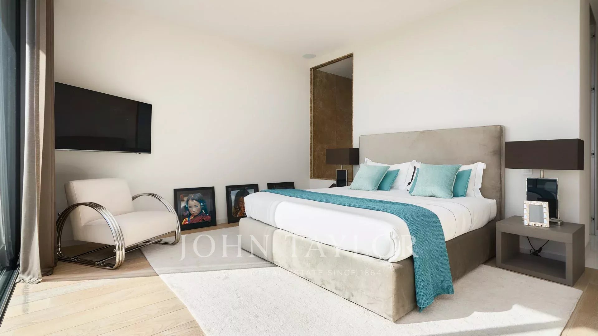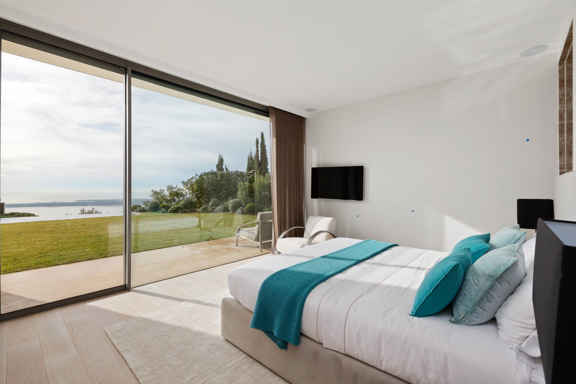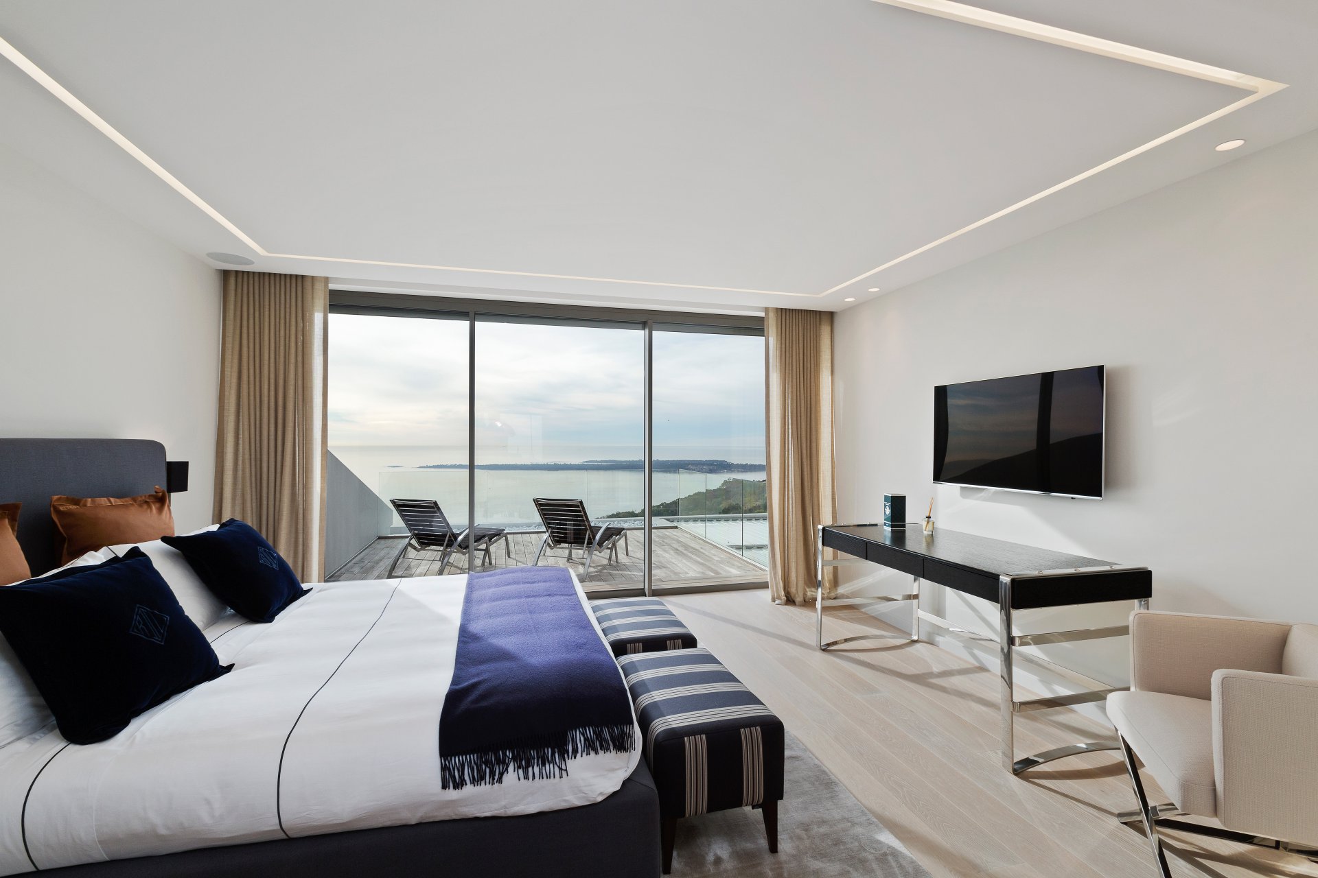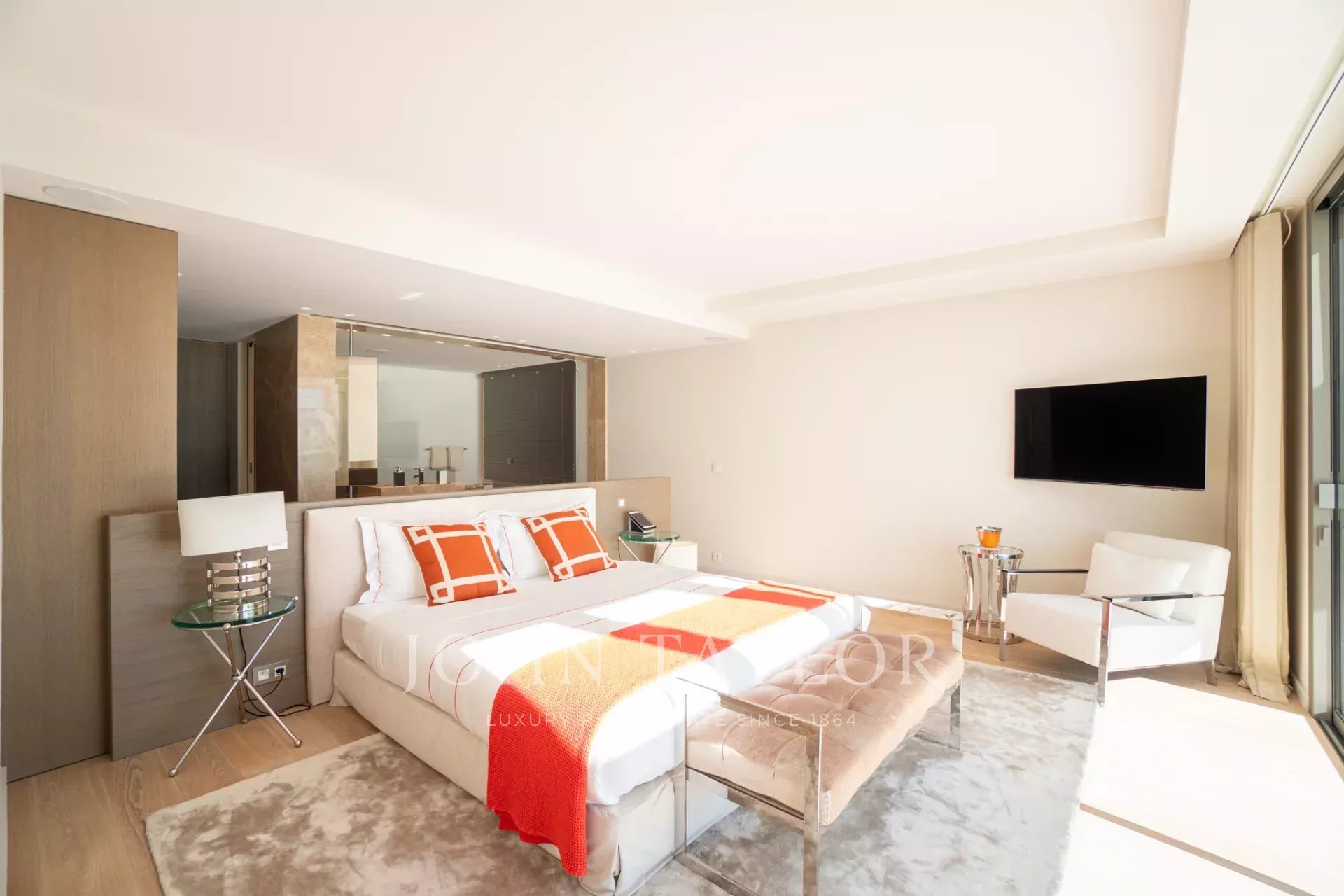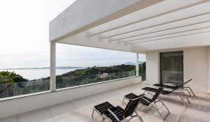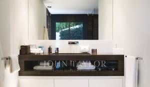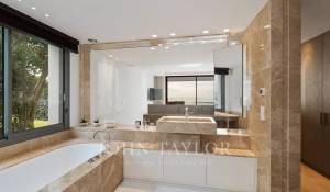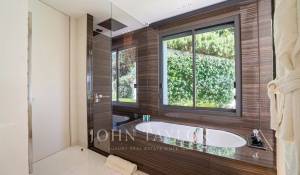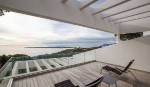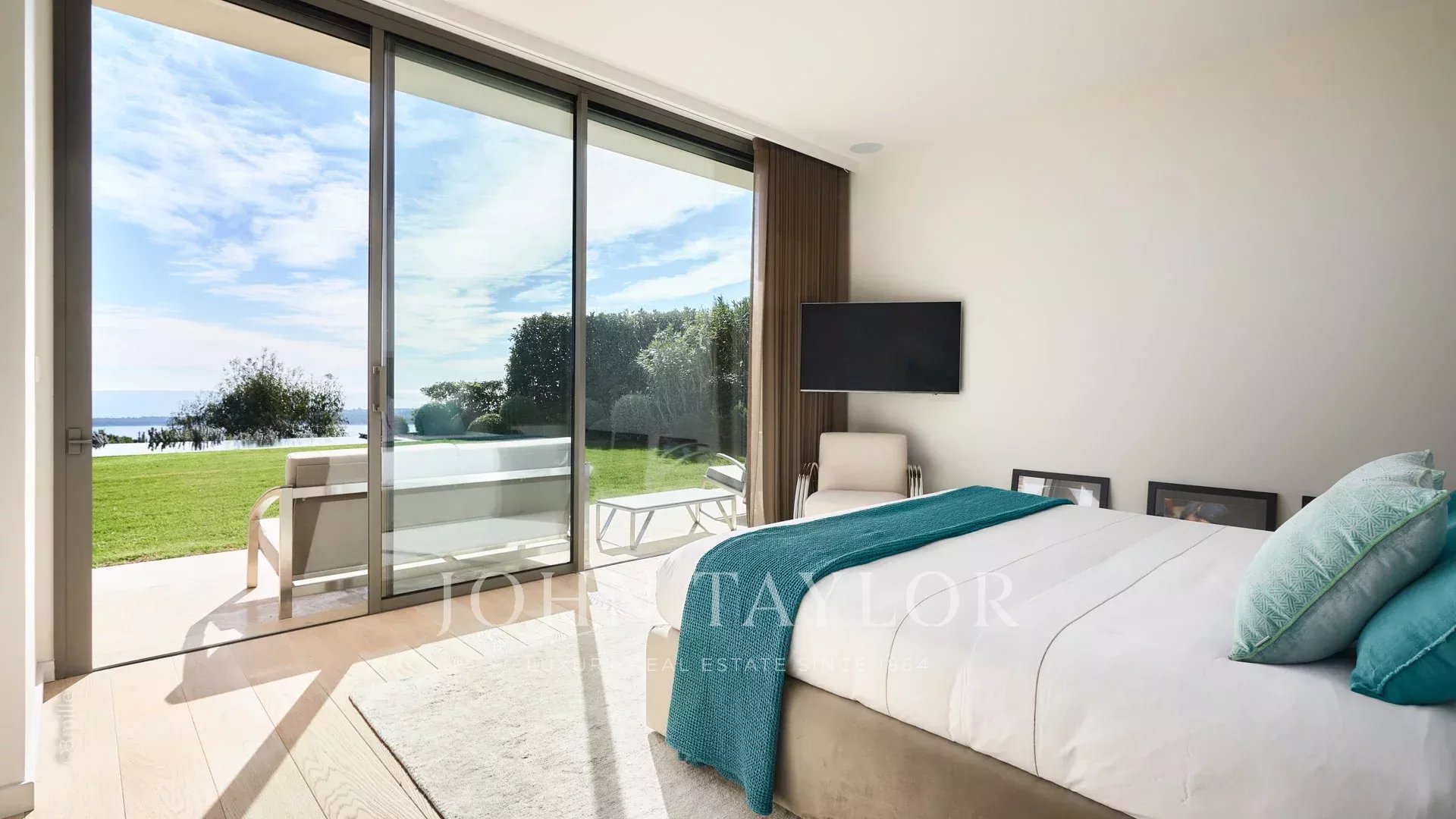 Na výšinách Cannes, v dominantní poloze s panoramatickým výhledem na moře, ostrovy Lérins, Cap d'Antibes a masiv Estérel, krásná nová klimatizovaná vila v moderním stylu s vysoce kvalitními prvky, která nabízí přibližně 630 m² obytné plochy na krásném pozemku o rozloze 2 000 m².