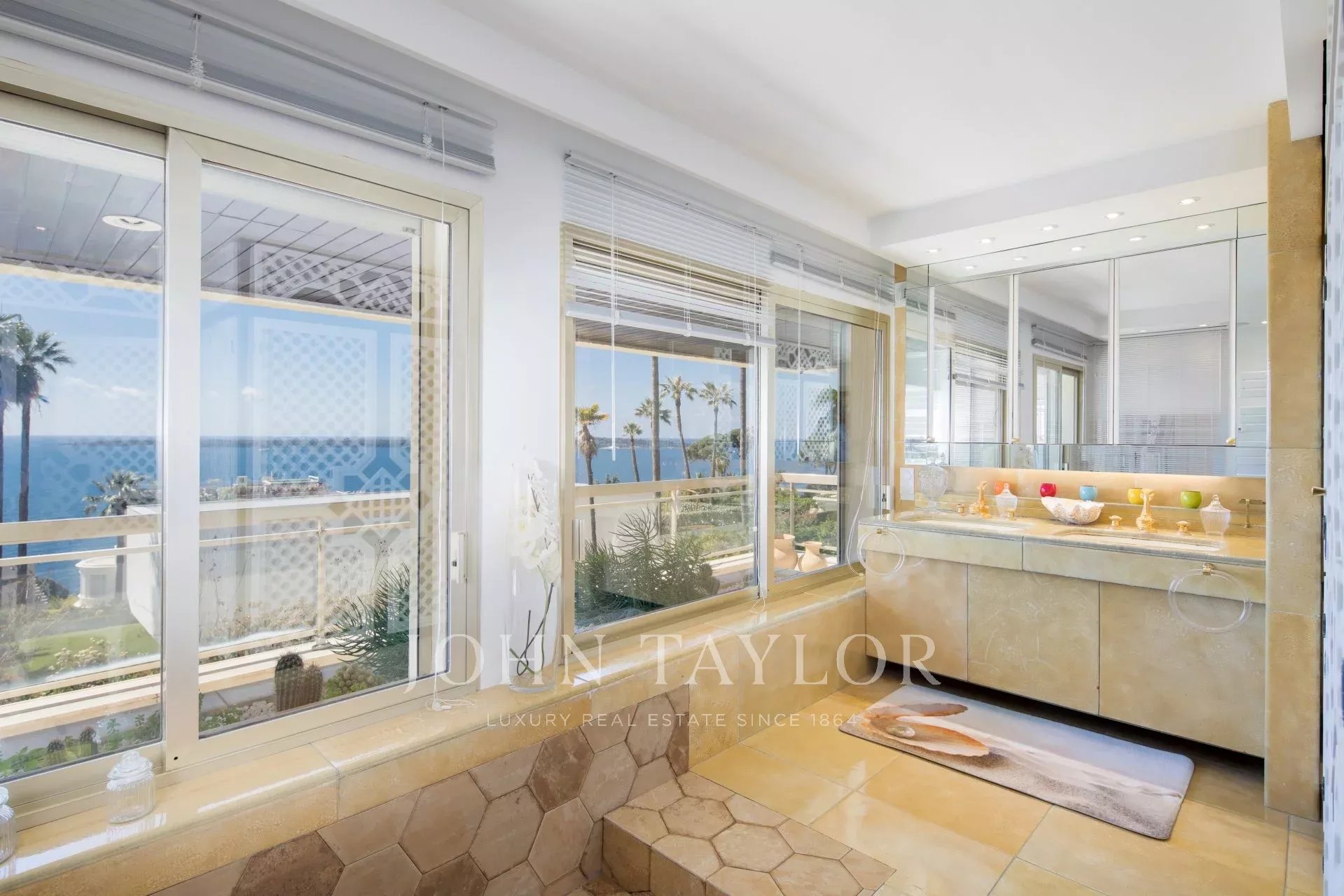 Velká vila o rozloze 700 m2 na pozemku o rozloze přibližně 3 000 m2 s panoramatickým výhledem na moře a ostrovy Iles de Lérins.