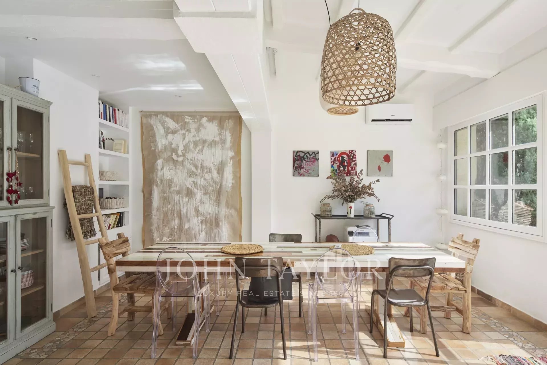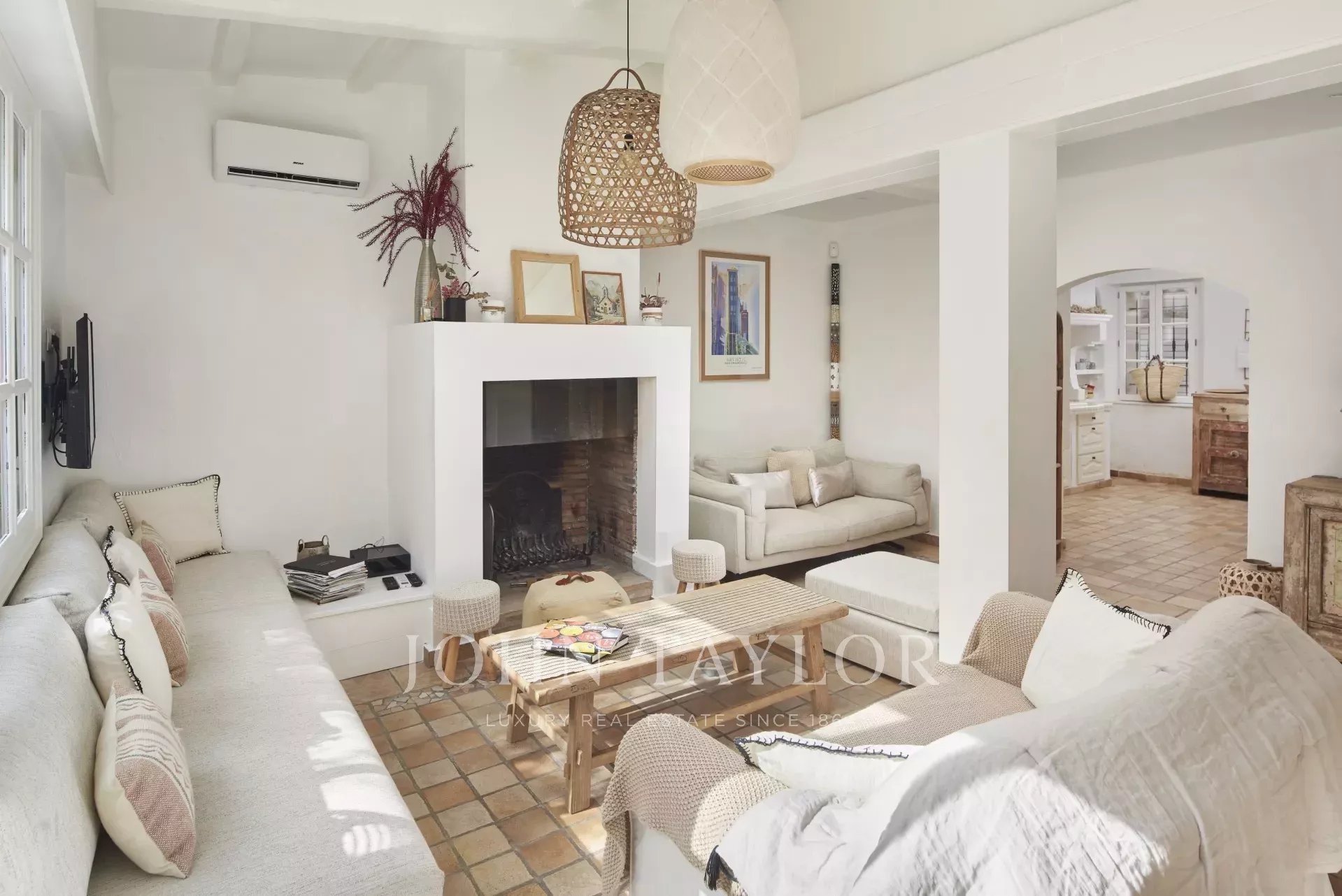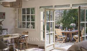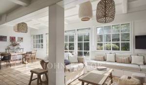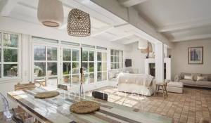 Velká, plně vybavená kuchyň, ze které se vchází do klimatizované přijímací místnosti s obývacím pokojem s krbem a jídelním koutem, ze které se vchází do zahrady a na terasu (letní jídelna).