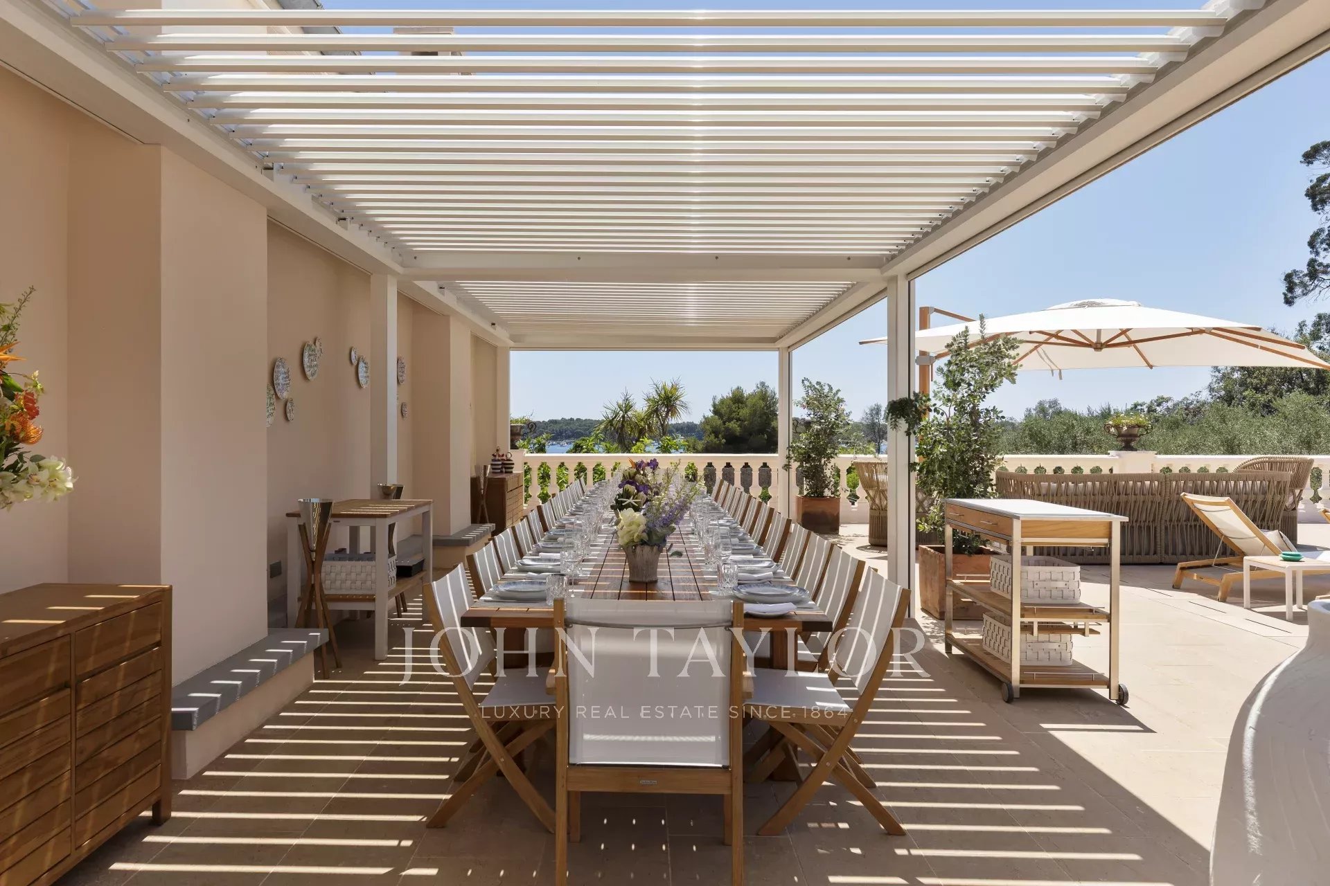 Stolovat můžete pod širým nebem na dlouhých stolech ozdobených růžemi a kosatci natrhanými v zahradách nebo si vychutnávat citronové koktejly ve venkovním baru zalitém sluncem.